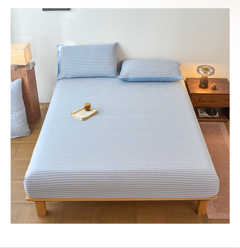 春皖家纺 2026春夏新款全棉纯棉水洗棉单品系列床笠单件床笠单品-A版单床笠 素雅-蓝条