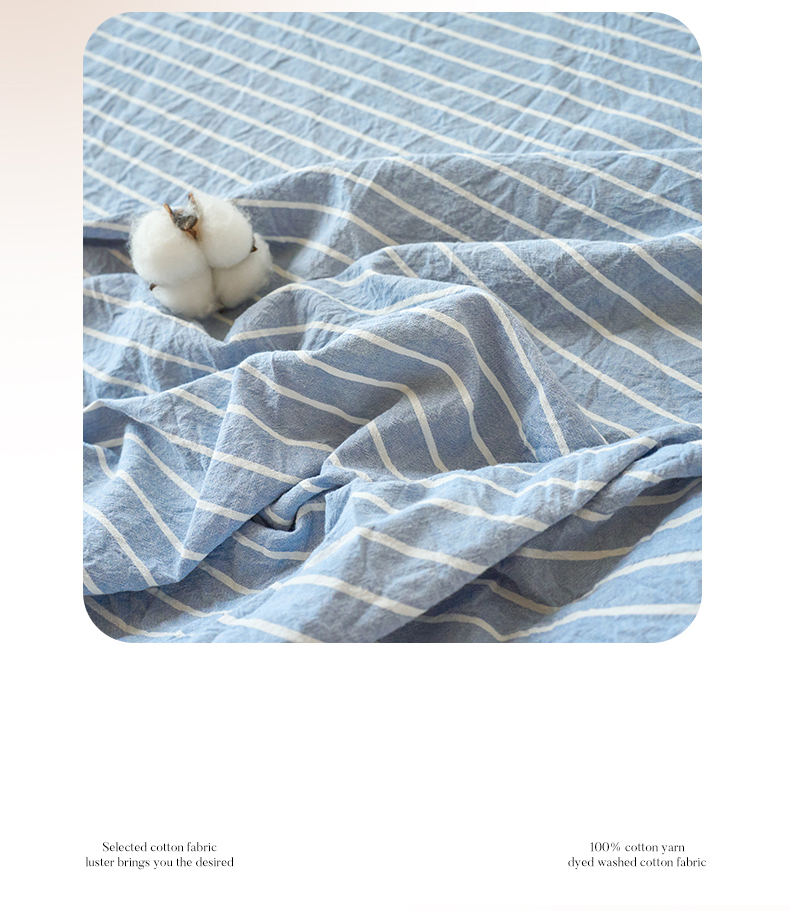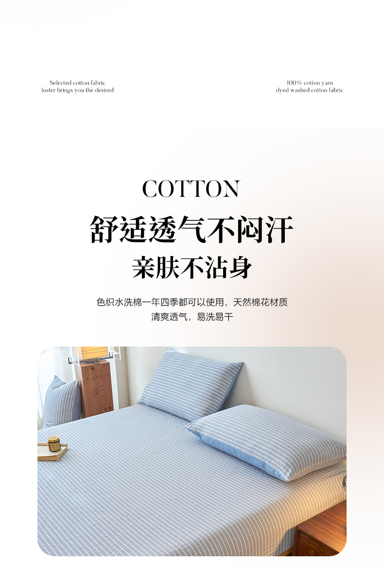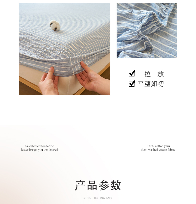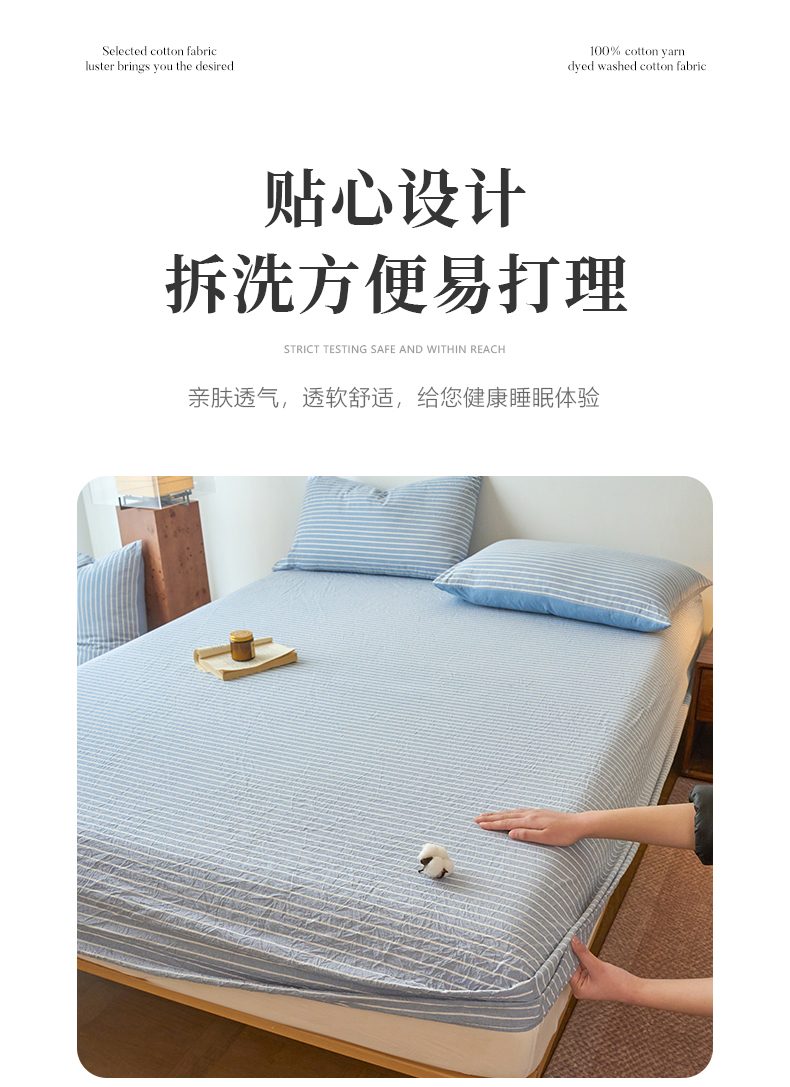 商品名称:春皖家纺 2026春夏新款全棉纯棉水洗棉单品系列床笠单件床笠单品-A版单床笠 素雅-蓝条