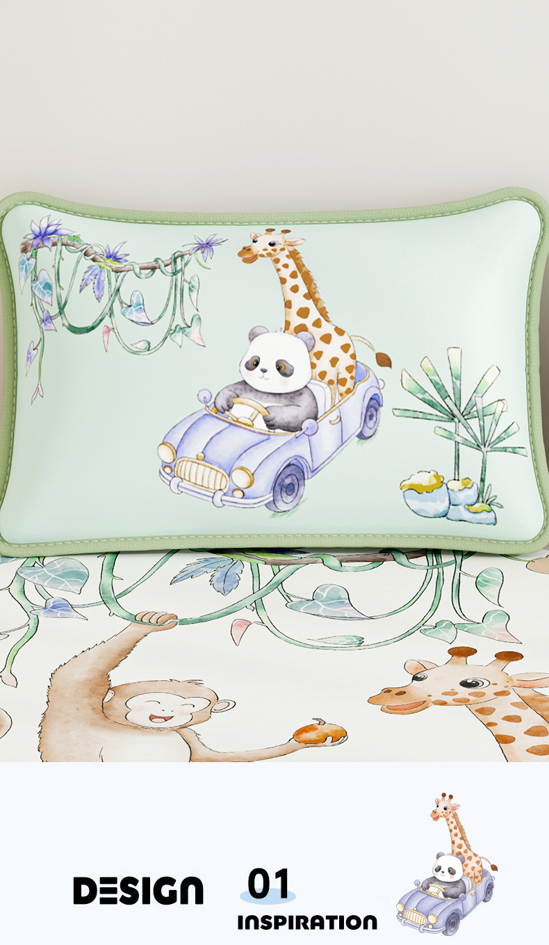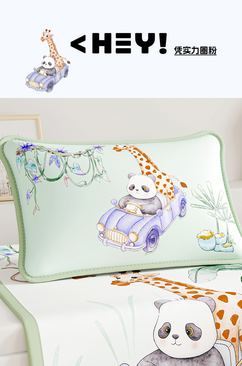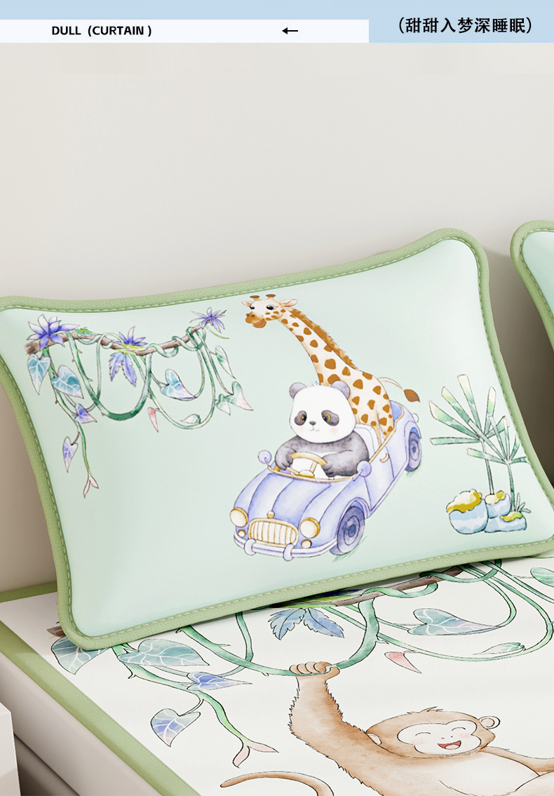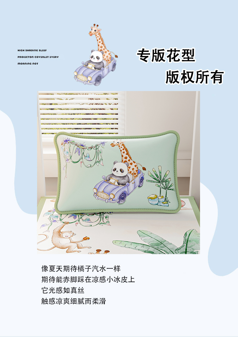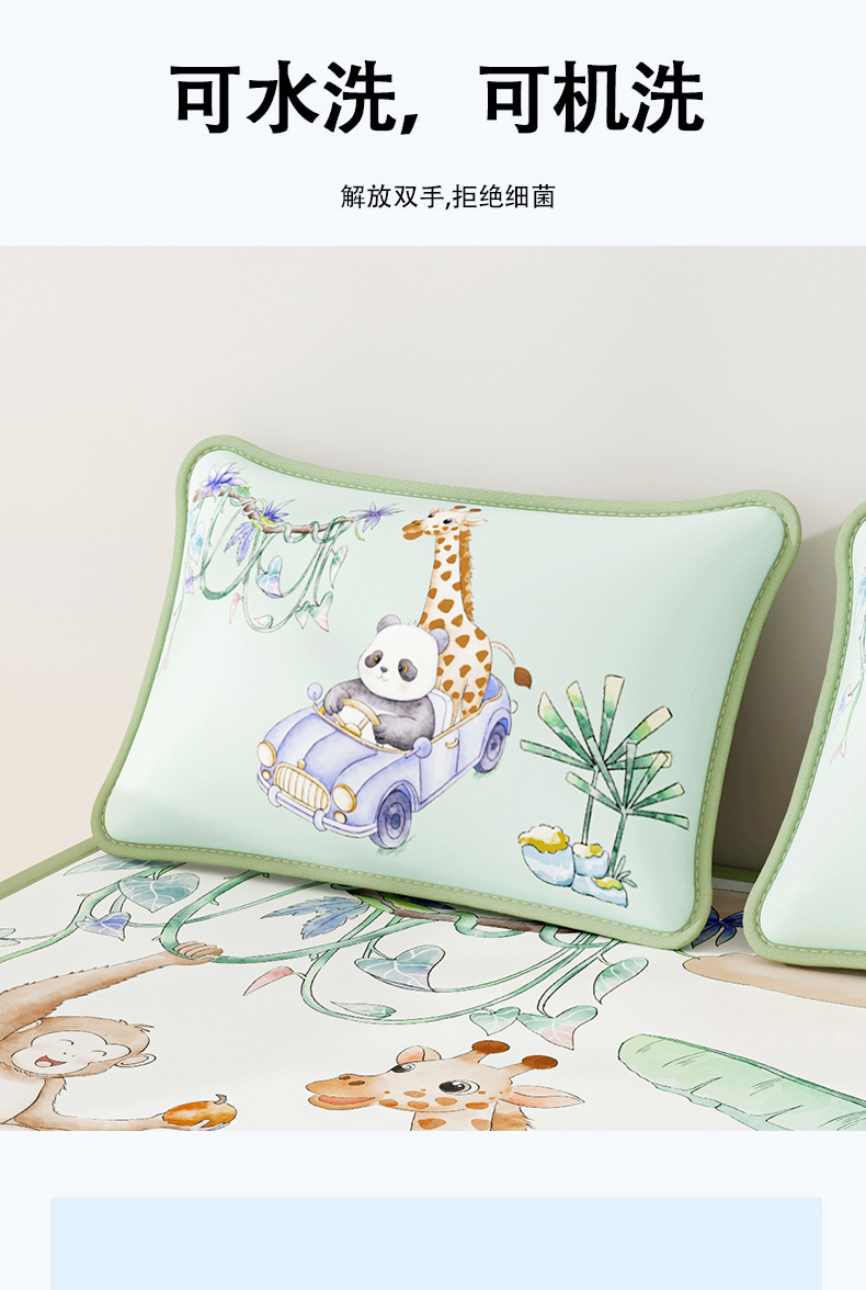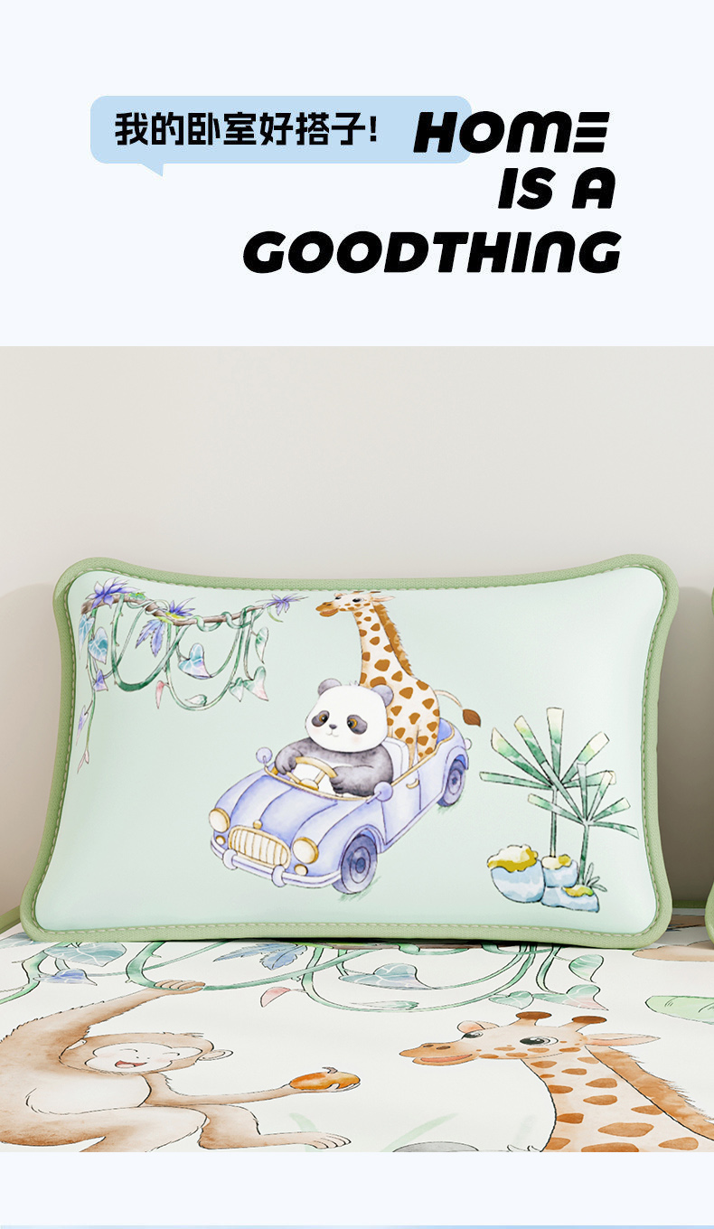 商品名称:奇丝雅 2026夏季A类数码印花卡通冰丝凉席枕套凉感家用儿童可机洗单人学生宿舍48×74 动物乐园