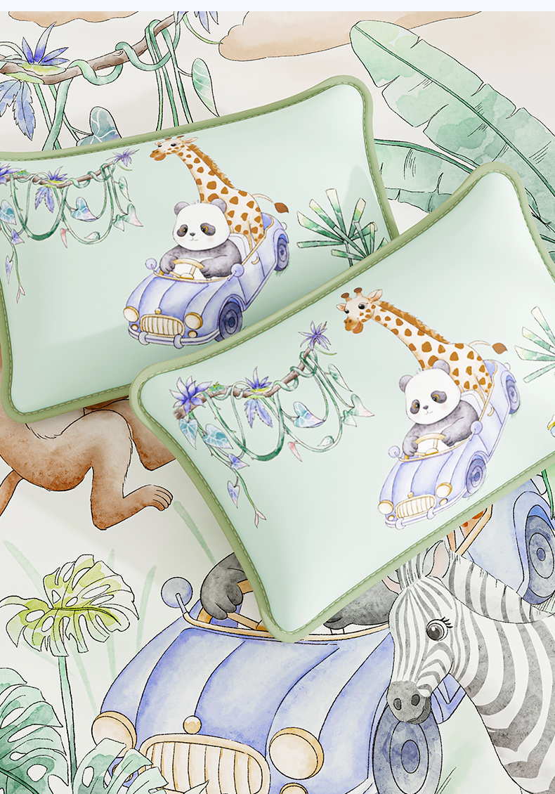 奇丝雅 2026夏季A类数码印花卡通冰丝凉席枕套凉感家用儿童可机洗单人学生宿舍48×74 动物乐园