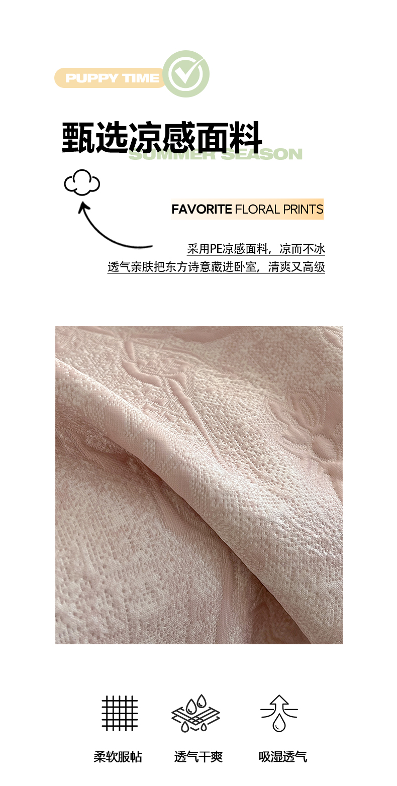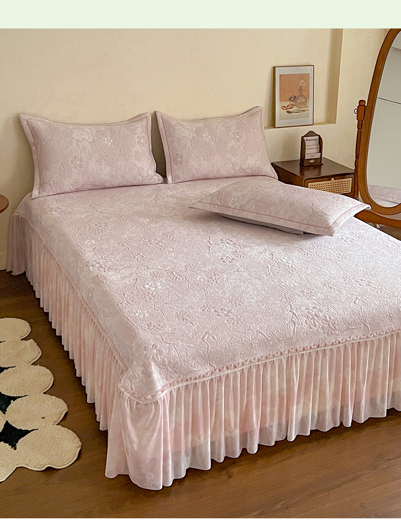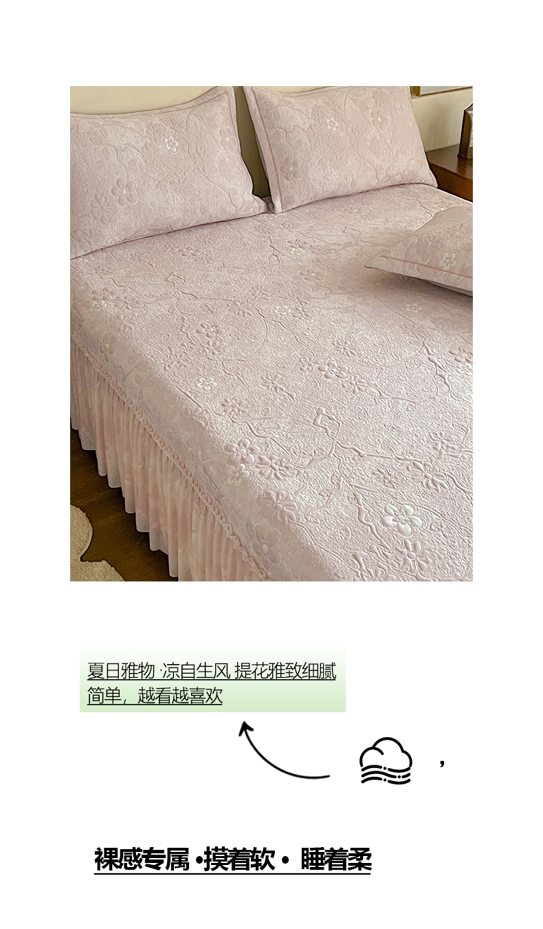(总)宅家居 2026春夏新款PE高分子复合软凉席豆豆席大床裙三件套-小花系列,小花-粉色,小花-灰色,小花-卡其,小花-绿色,小花-天蓝,小花-紫色