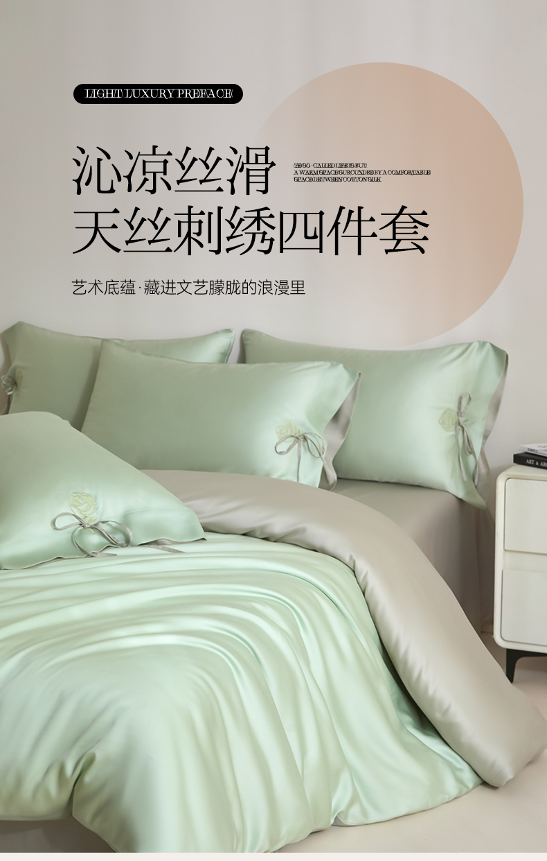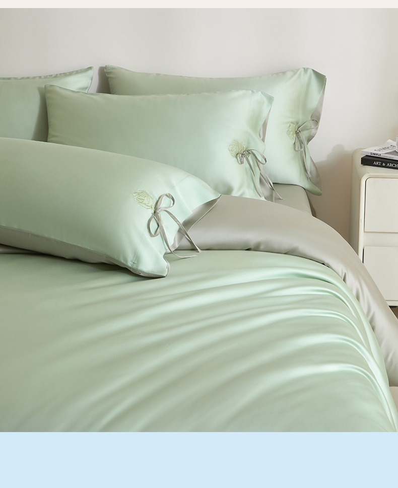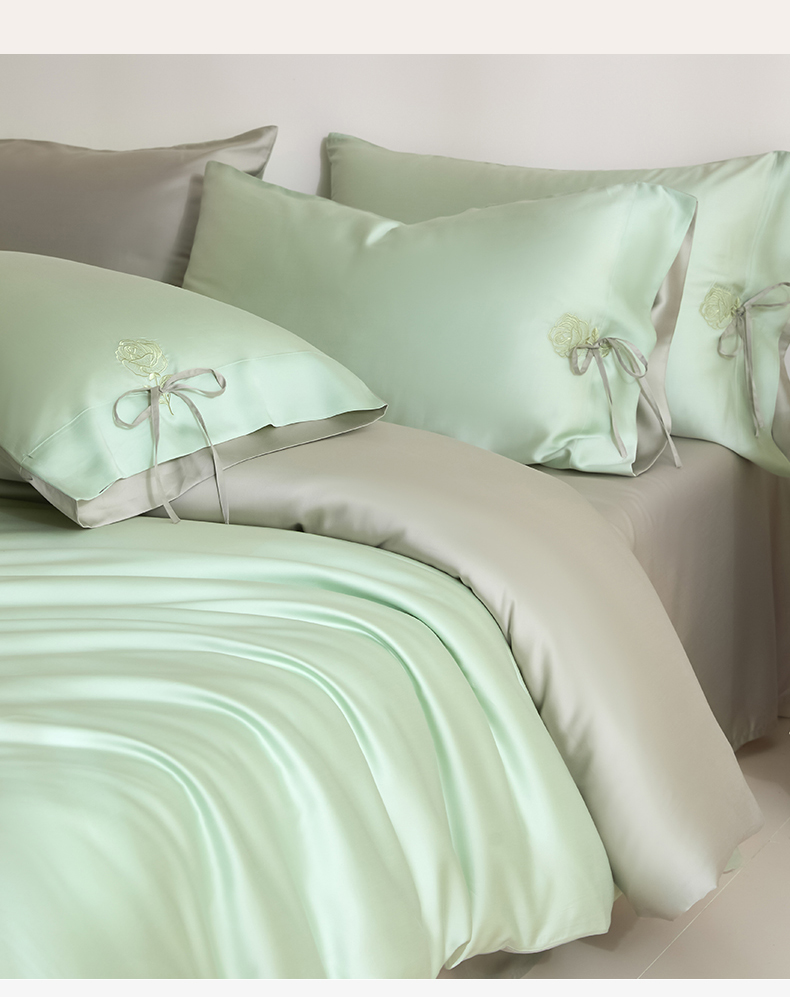 当前位置: 91家纺网 > 商品网购 > 床品套件 > 四件套 > 莱赛尔四件套 > DC 2026新款天丝玫瑰压线抽绳四件套--日落玫瑰系列 日落玫瑰-亚丁绿+冰川灰