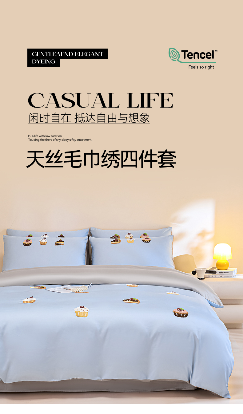 当前位置: 91家纺网 > 商品网购 > 床品套件 > 四件套 > 莱赛尔四件套 > DC 2026新款天丝立体毛巾绣四件套 毛巾绣-婴儿蓝+冰川灰(丝绒蛋糕)