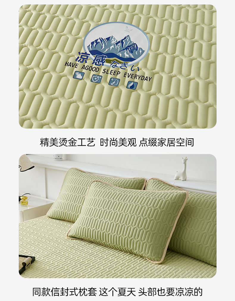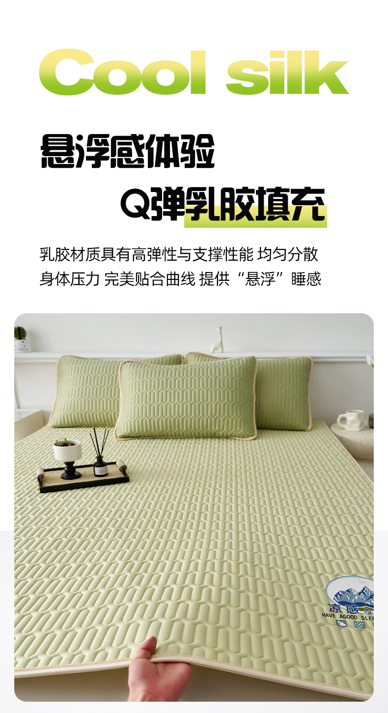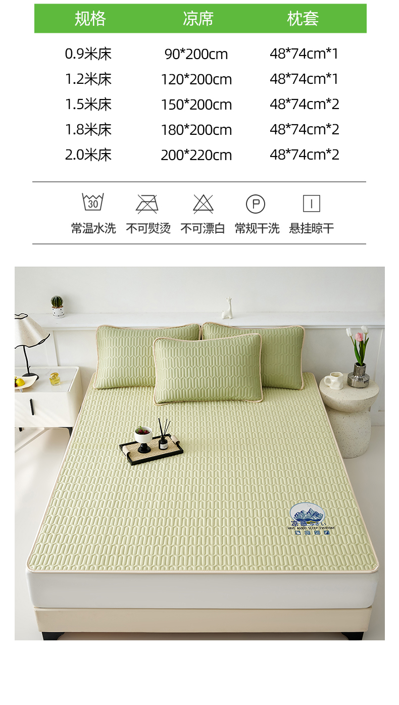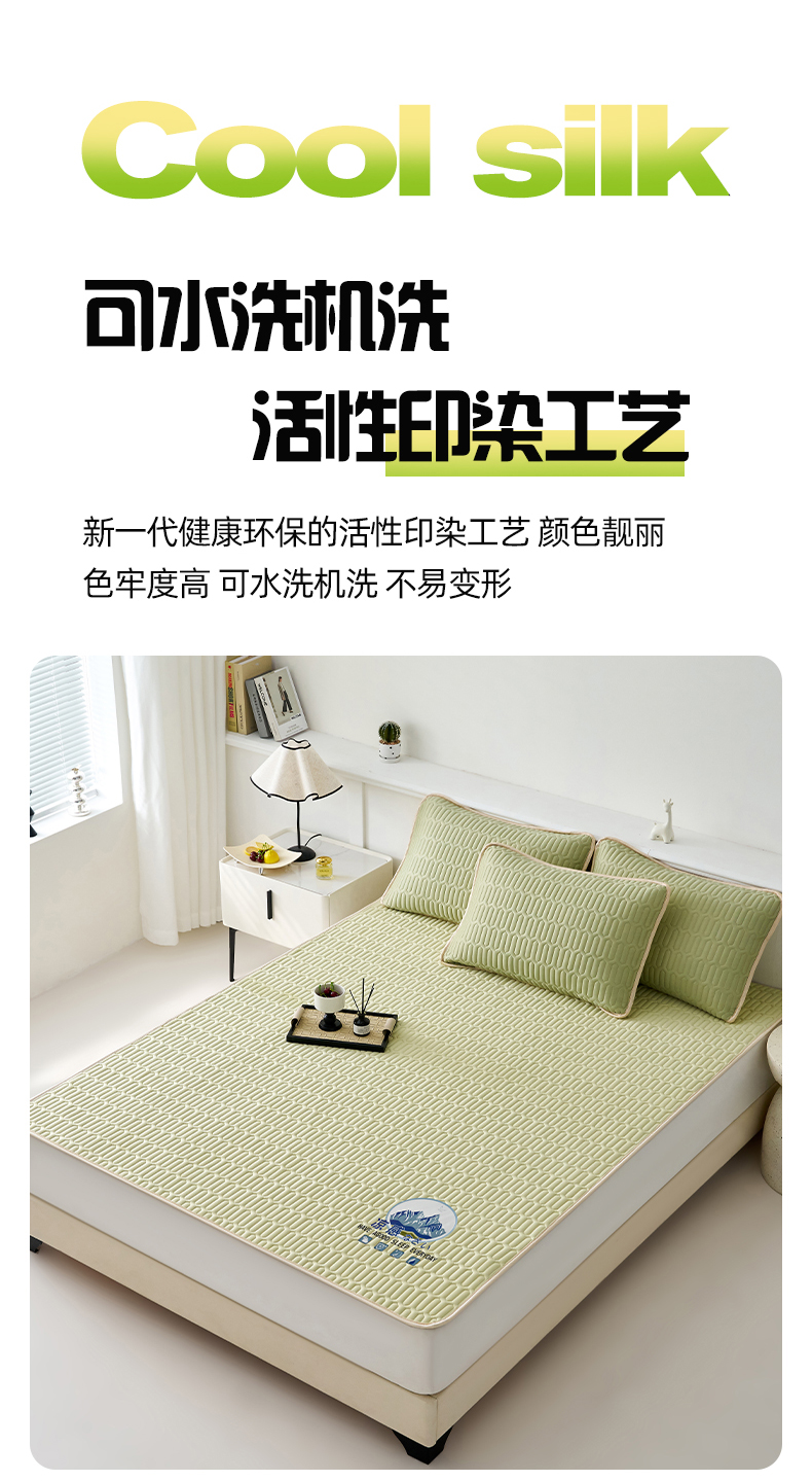 商品名称:奇丝雅 2026夏季A类纯色乳胶凉席冰丝席家用双人冰丝凉席可机洗夏天空调席三件套-场景二 富士山-果绿