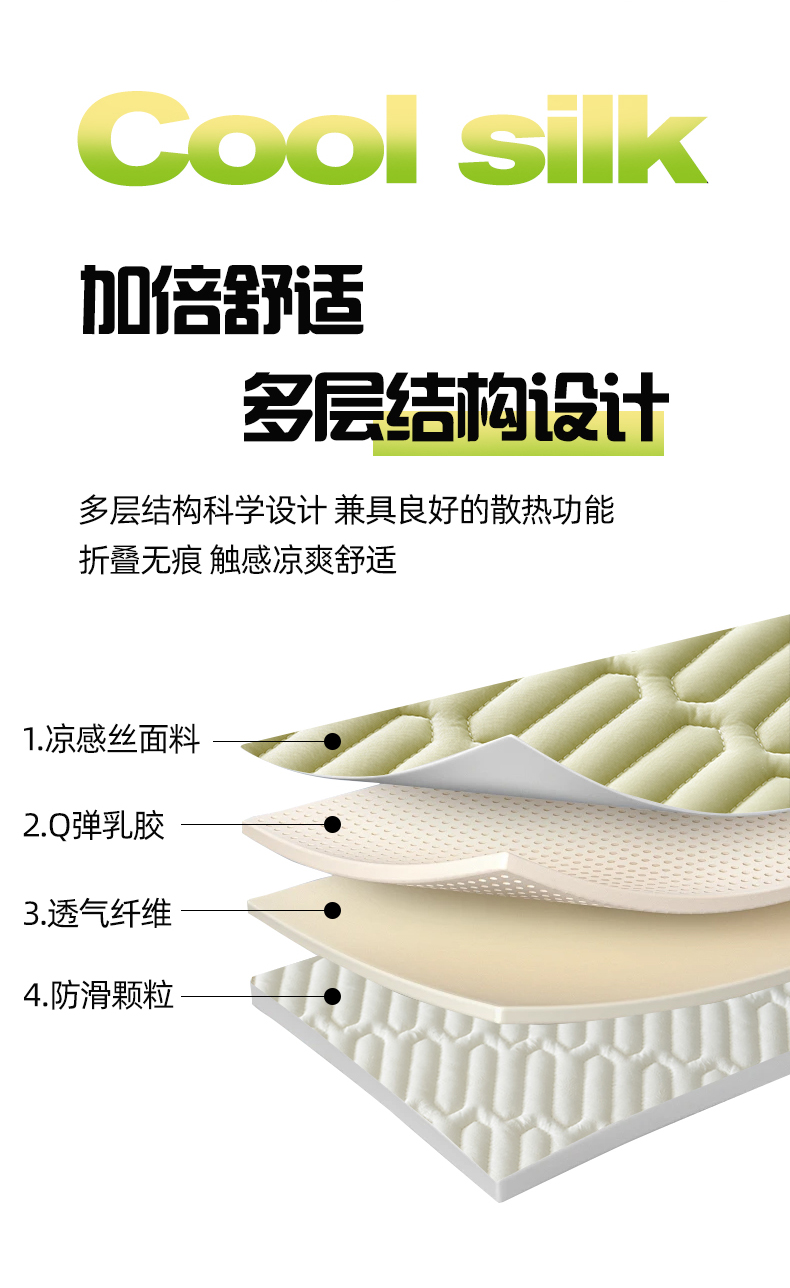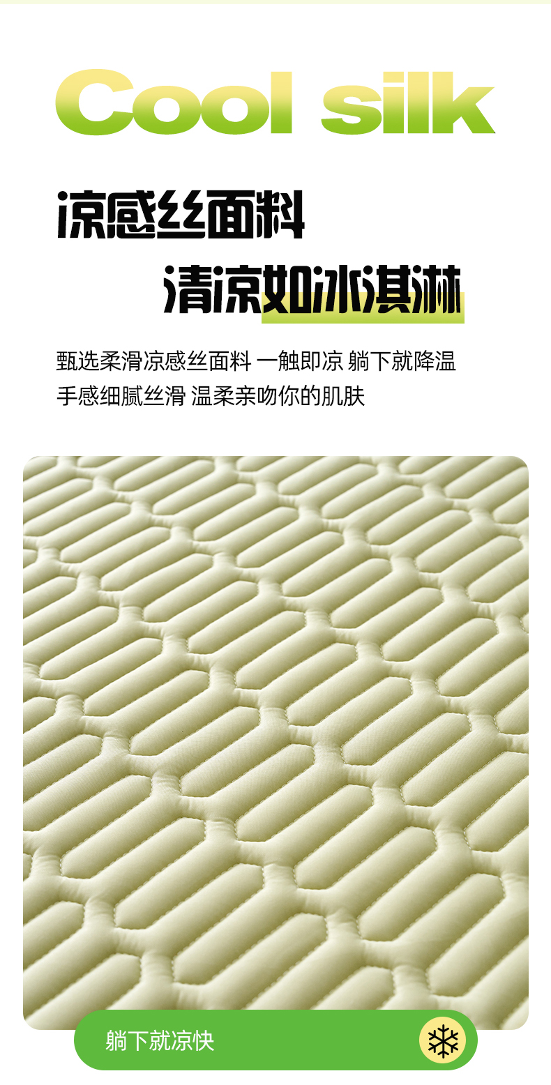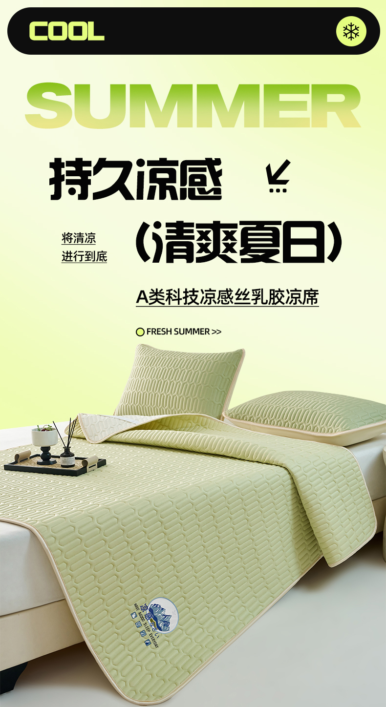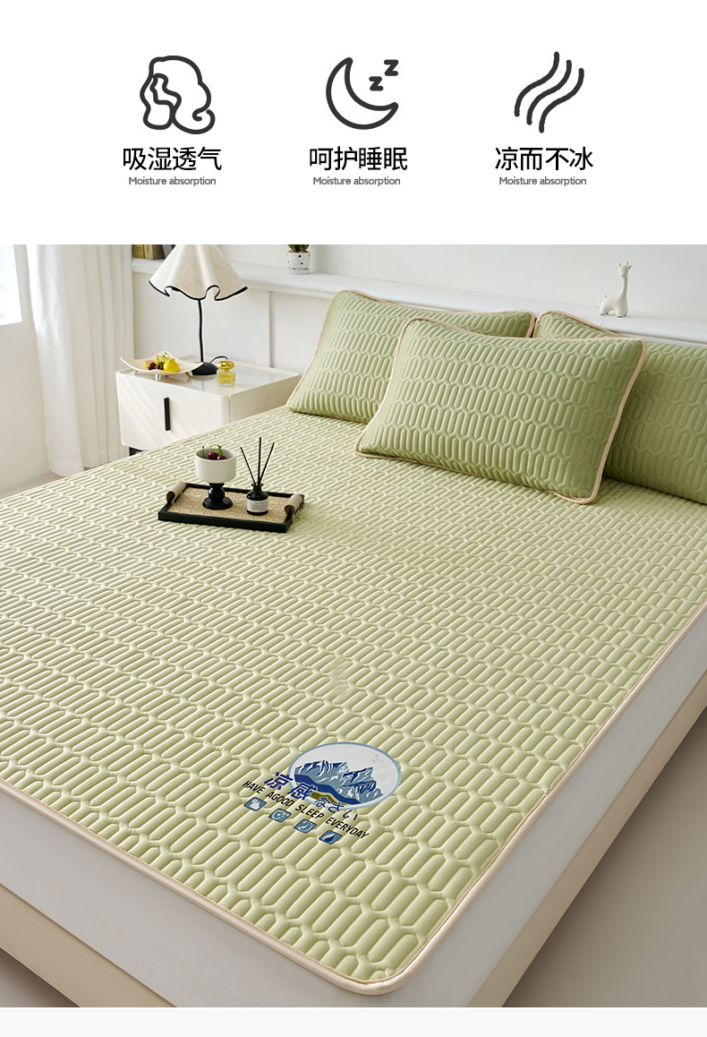 商品名称:奇丝雅 2026夏季A类纯色乳胶凉席冰丝席家用双人冰丝凉席可机洗夏天空调席三件套-场景二 富士山-果绿