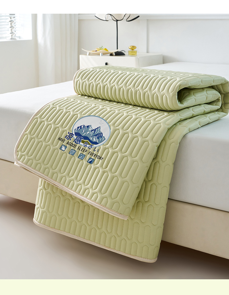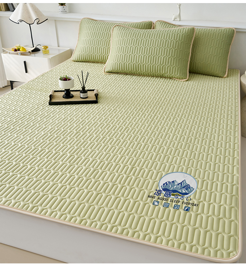 奇丝雅 2026夏季A类纯色乳胶凉席冰丝席家用双人冰丝凉席可机洗夏天空调席三件套-场景二 富士山-果绿