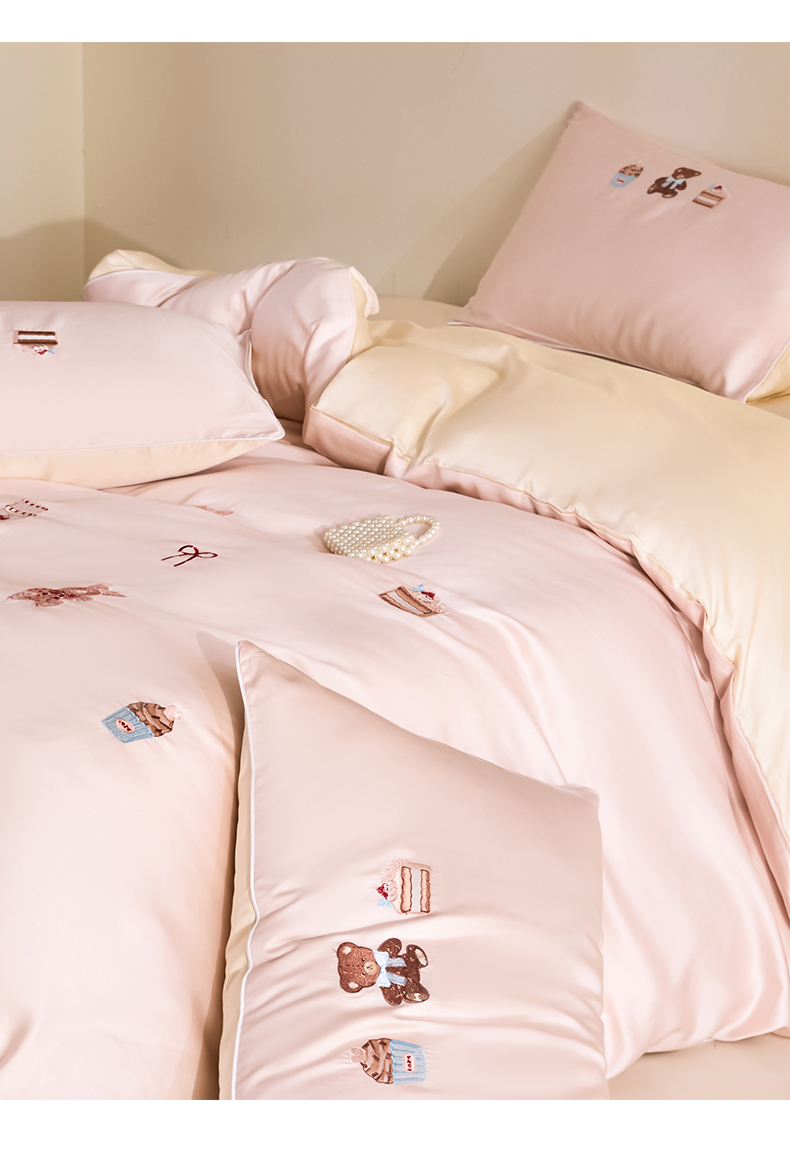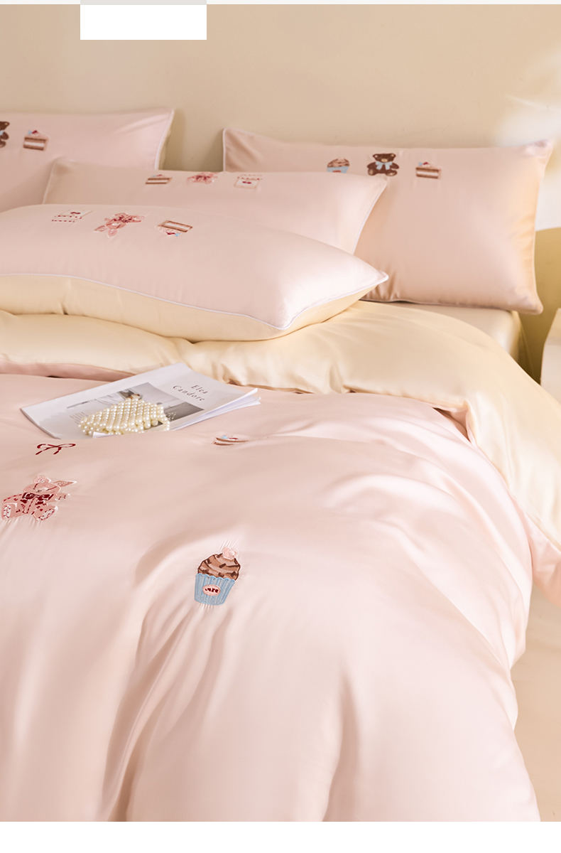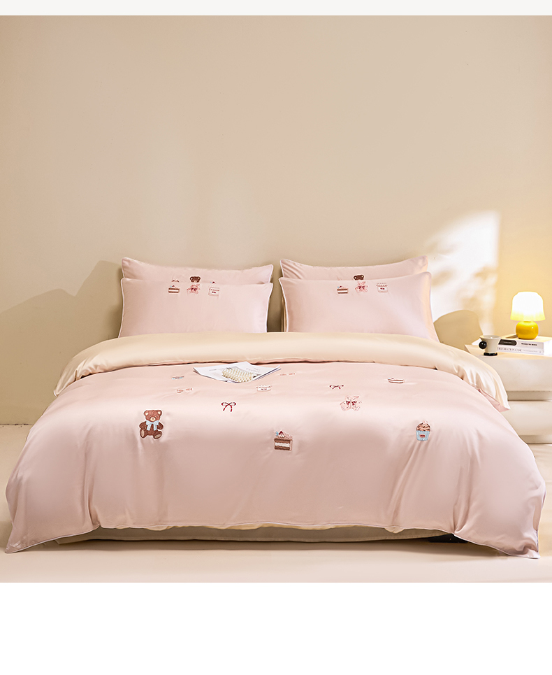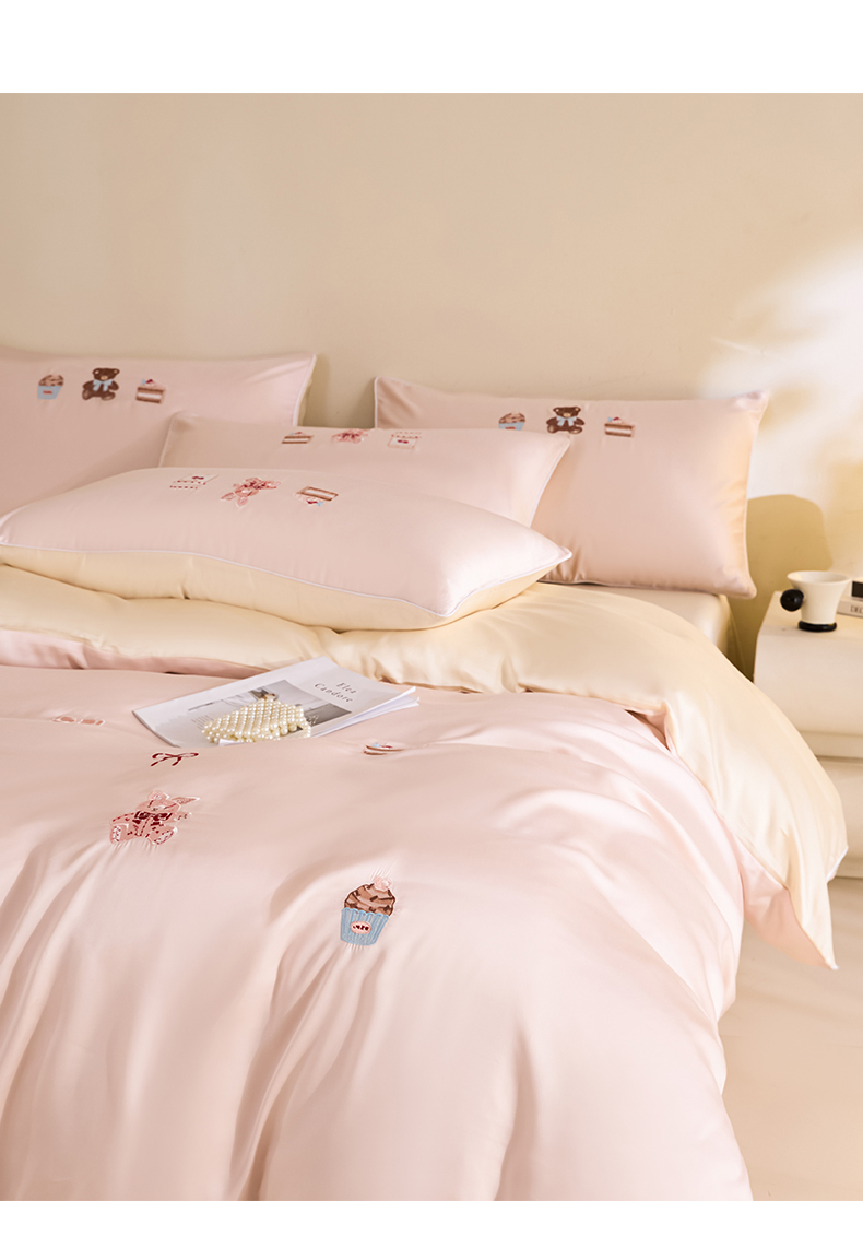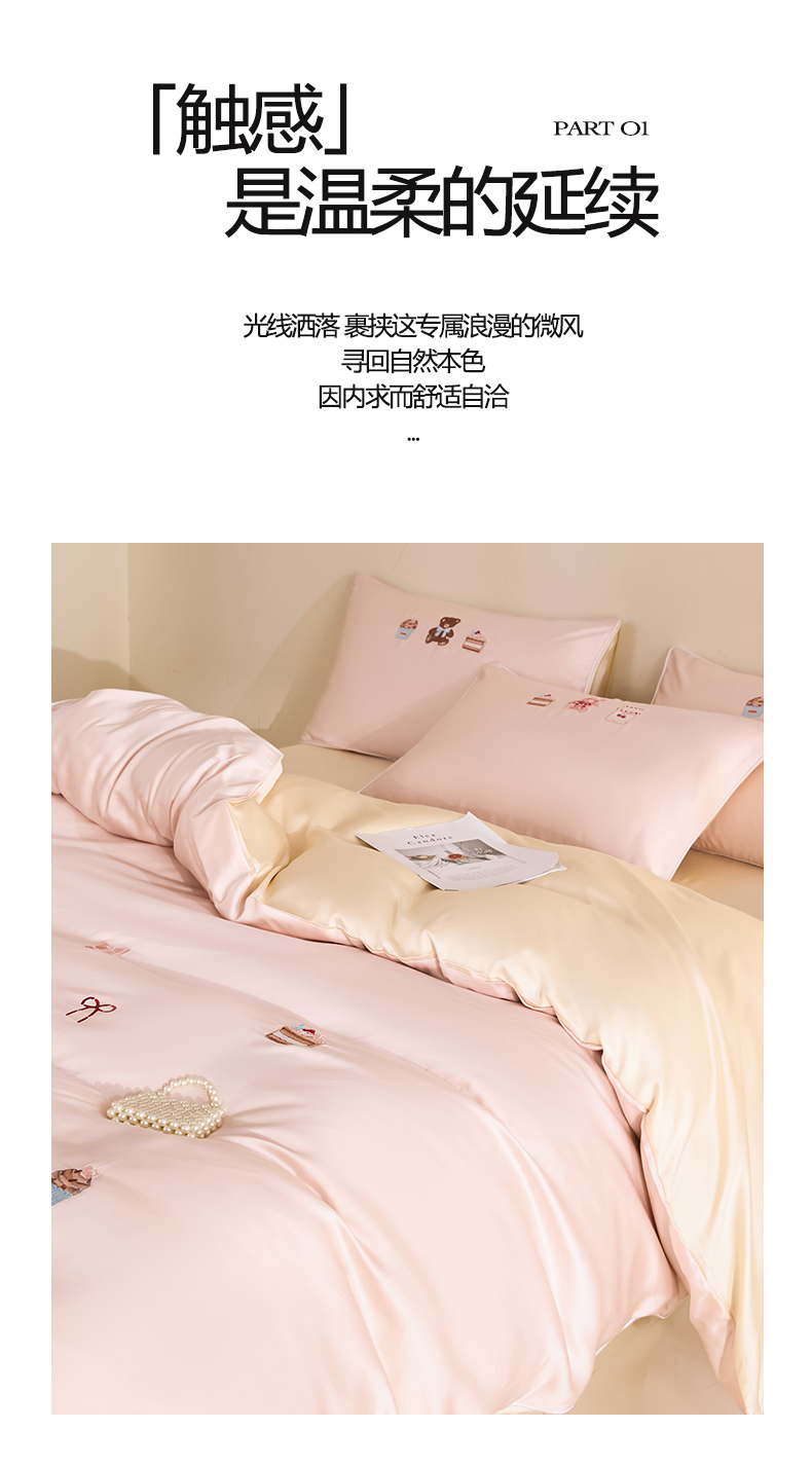 (总)DC 2024新款60S天丝印花刺绣四件套-雪莉系列,半熟蜜桃,冰川蓝,香谷槟,星辰绿,椰子灰,元气白桃