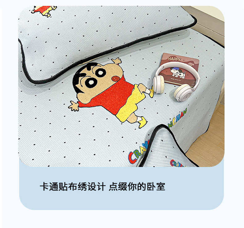 当前位置: 91家纺网 > 商品网购 > 床上用品 > 凉席 > 凉席套件 > 桃子家居 2026新款A类PE凉感卡通蜡笔小新毛巾绣高端工艺空调软席凉席三件套系列 PE蜡笔小新-调皮小新