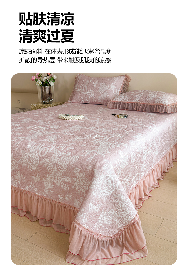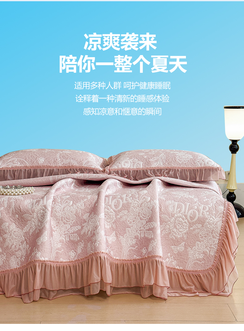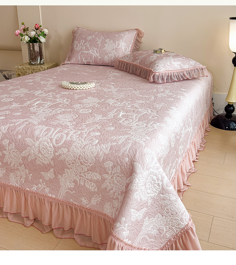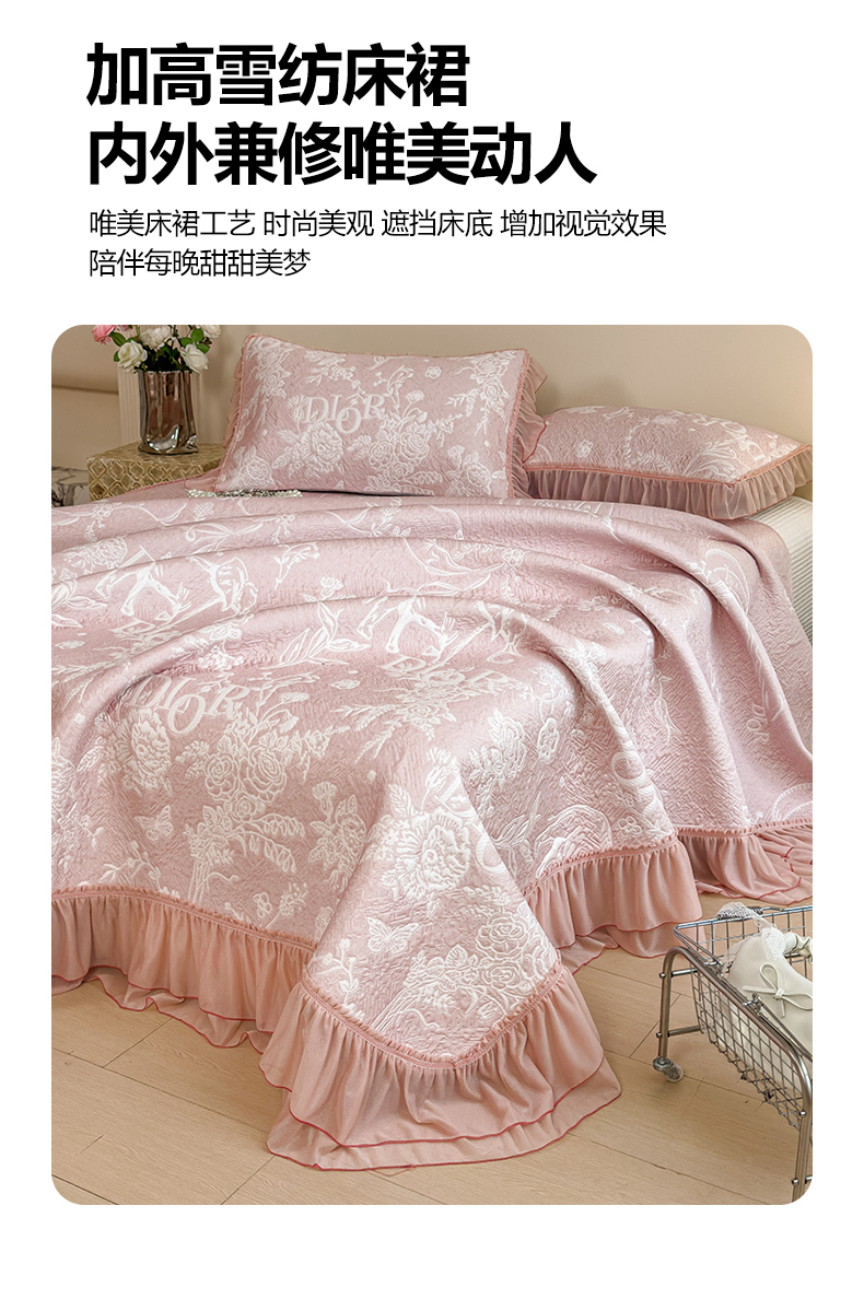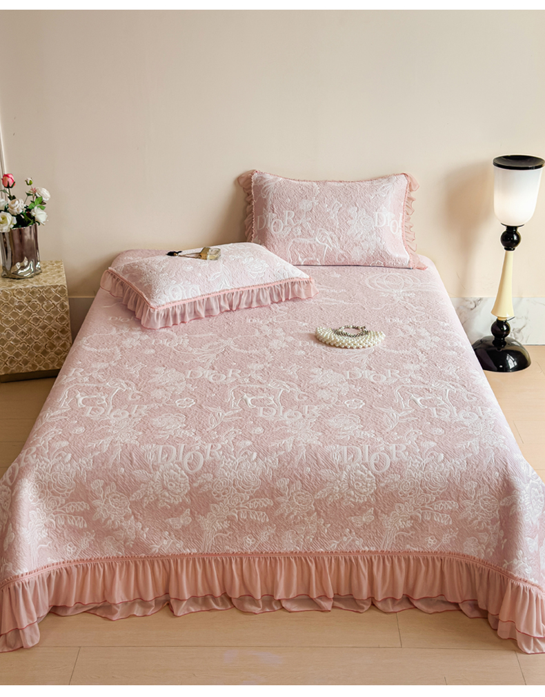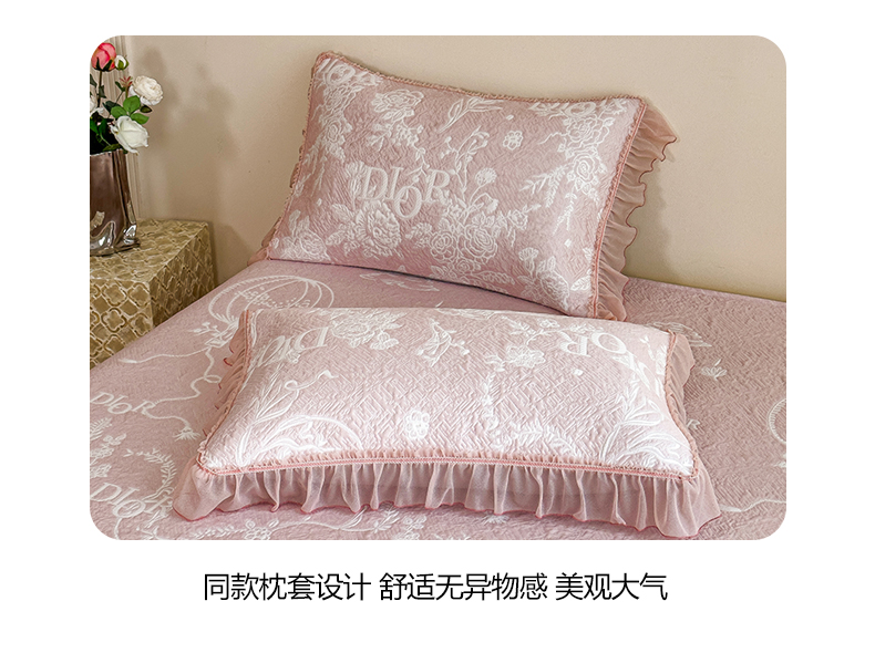 慕木家纺 2026新款A类三明治复合乙纶提花冰豆豆花边床盖款床迪奥风系列(提供买家秀) 迪奥玫瑰-粉
