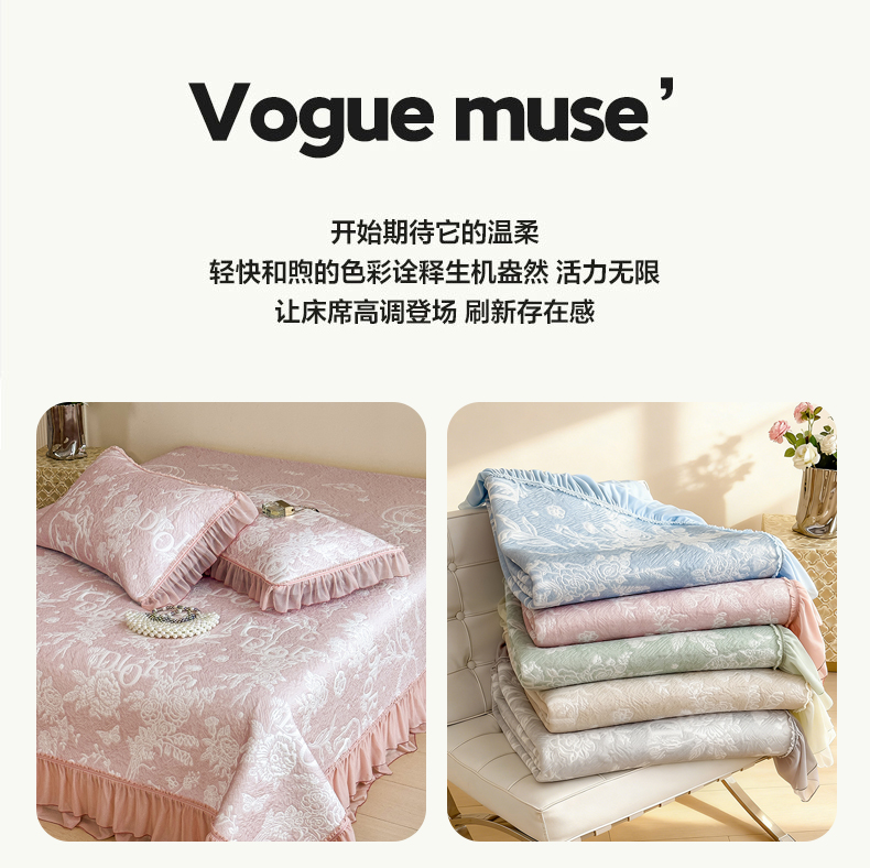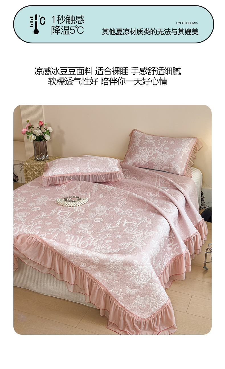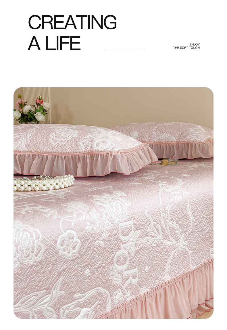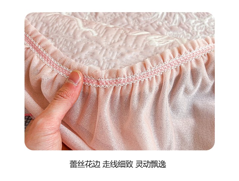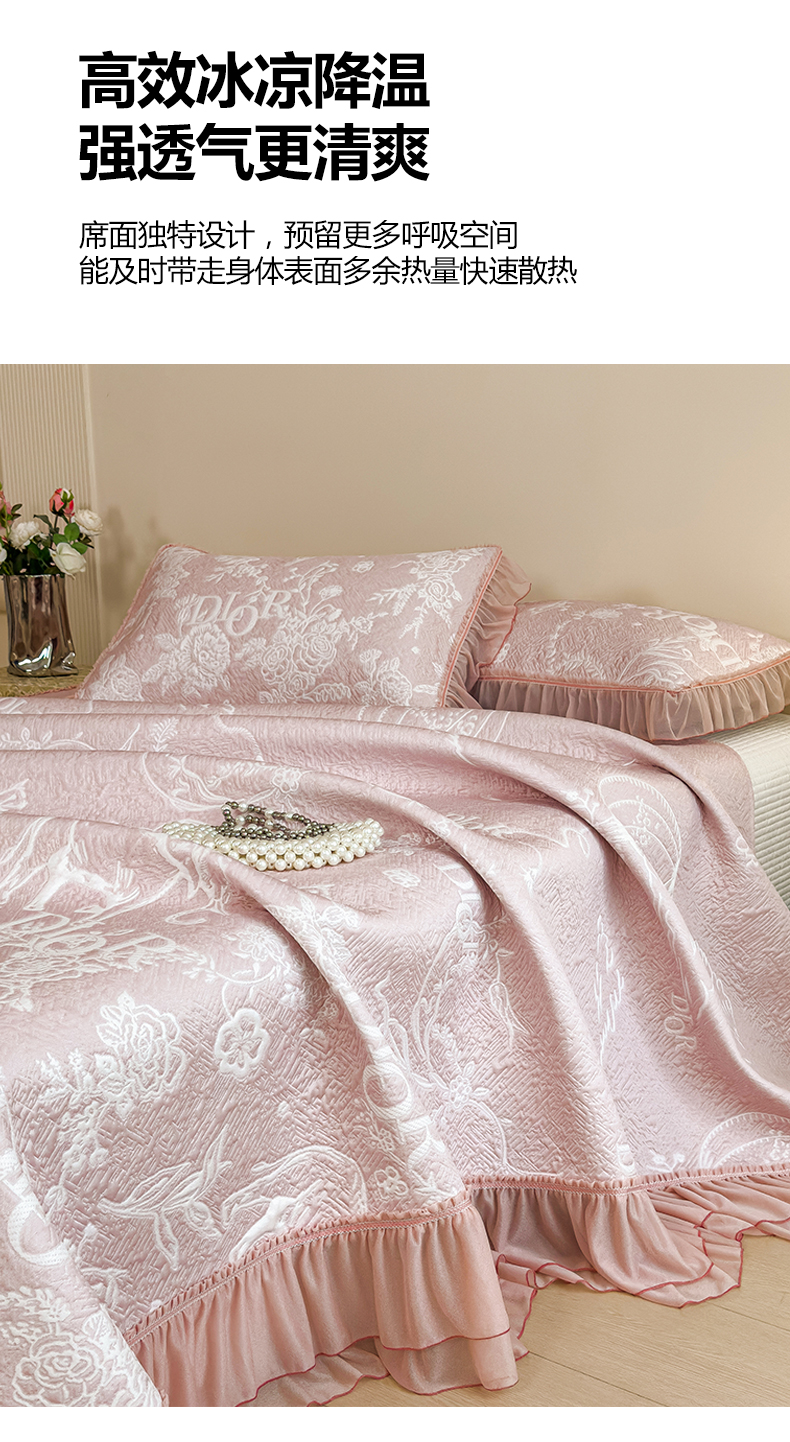 慕木家纺 2026新款A类三明治复合乙纶提花冰豆豆花边床盖款床迪奥风系列(提供买家秀) 迪奥玫瑰-粉