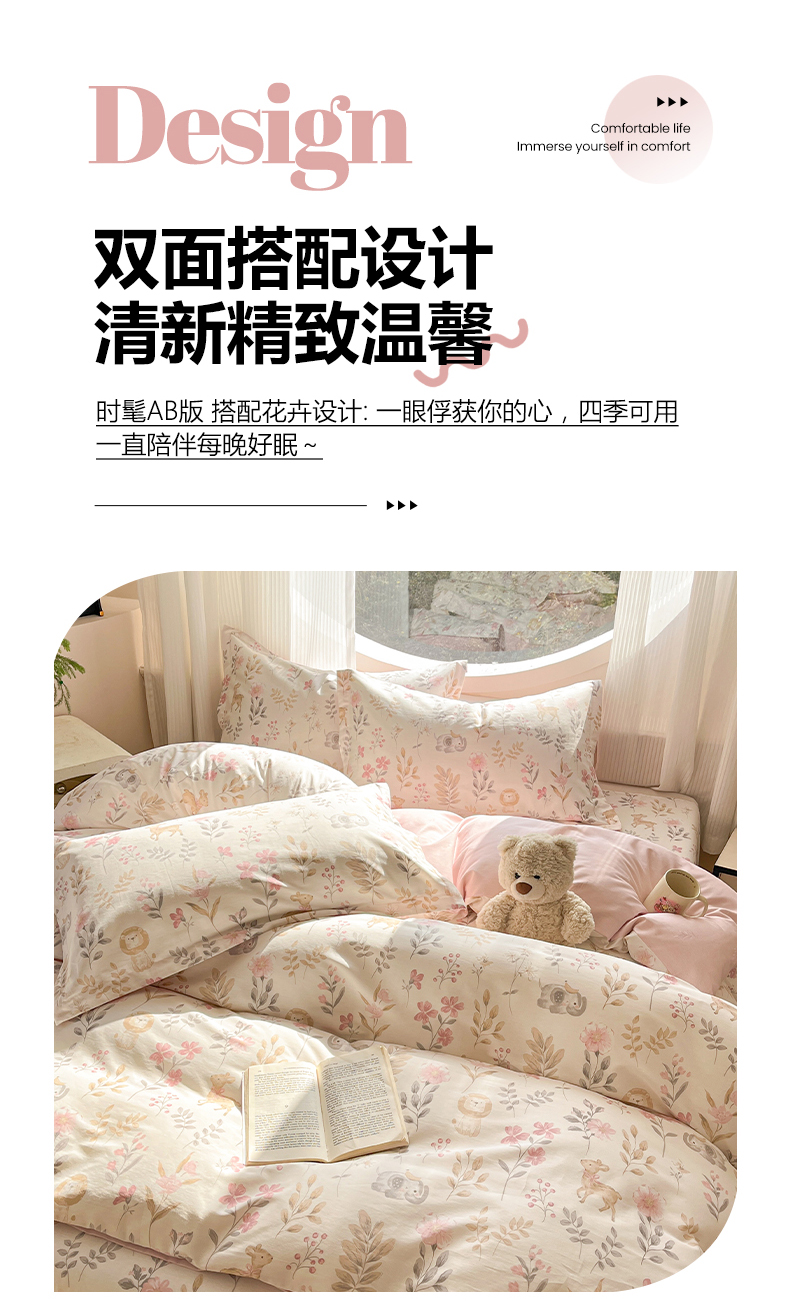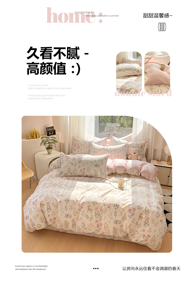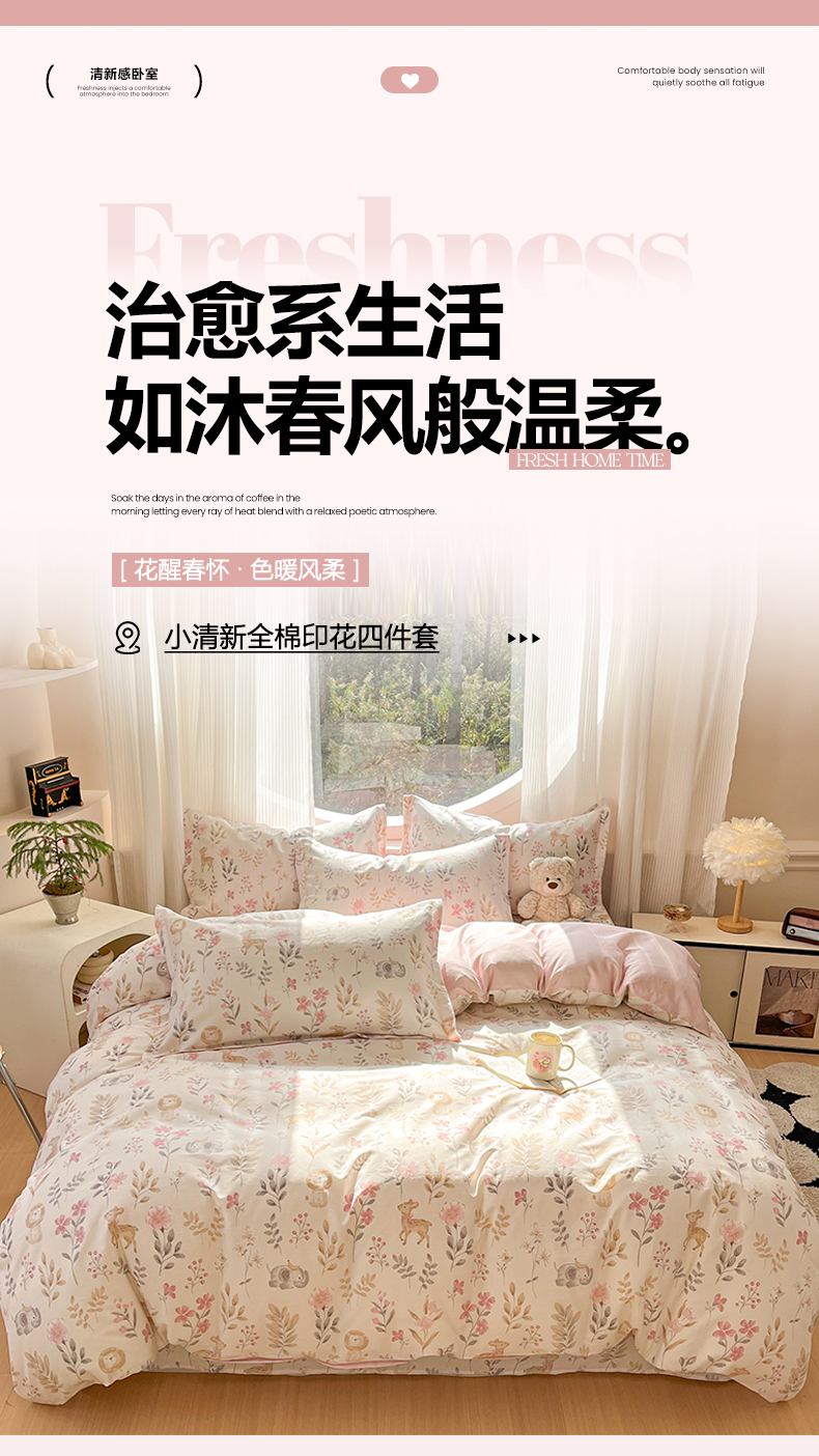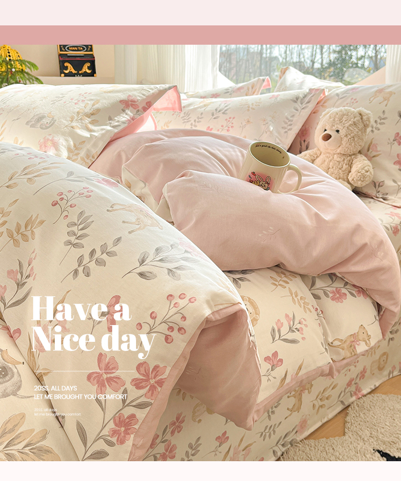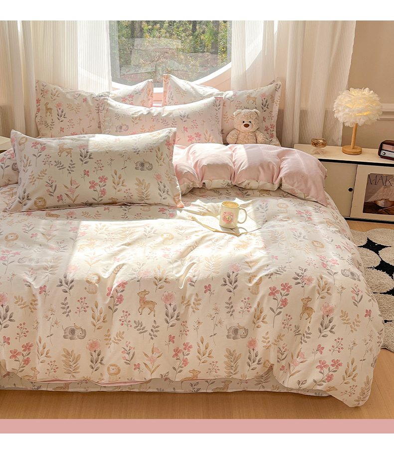 当前位置: 91家纺网 > 商品网购 > 床品套件 > 四件套 > 全棉普通四件套 > 女子家纺 2026新款全棉纯棉印花单品系列花卉款四件套 自然手记粉
