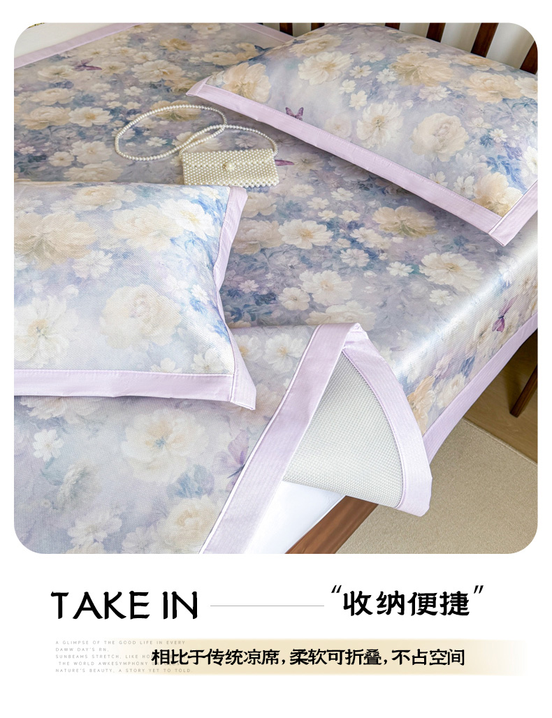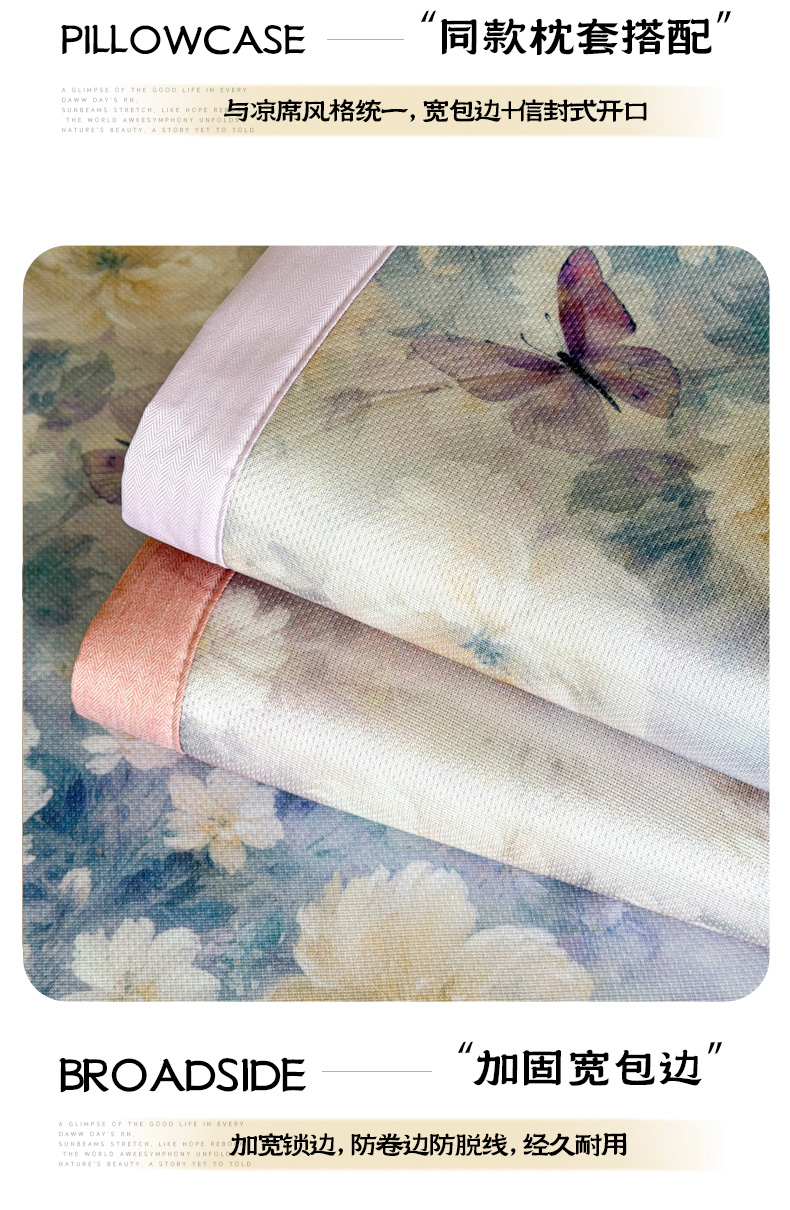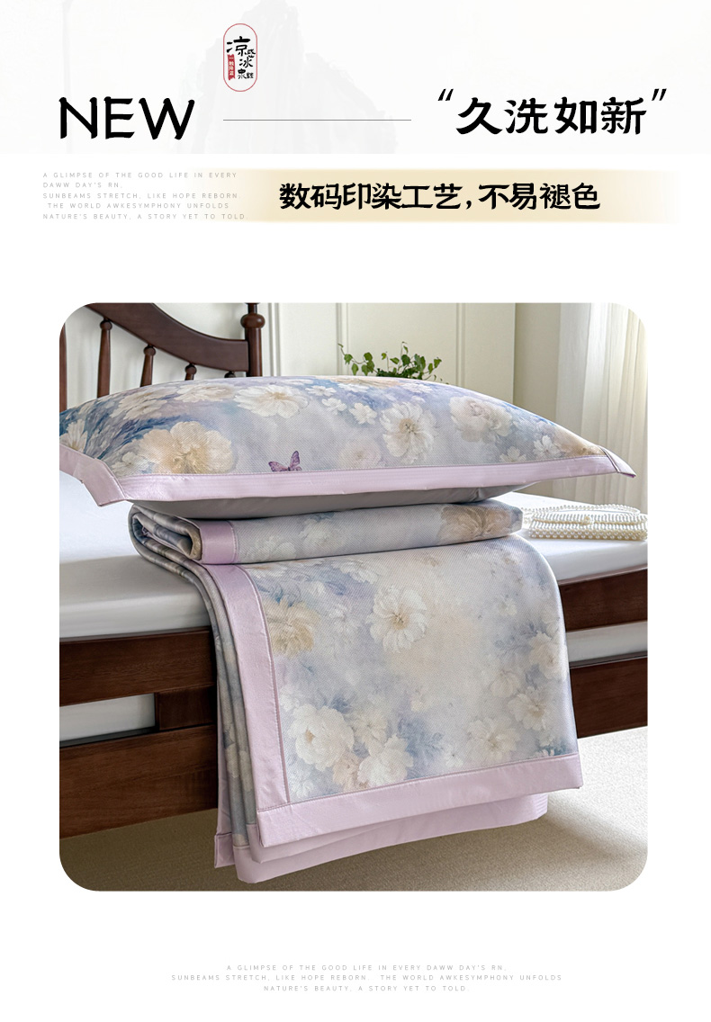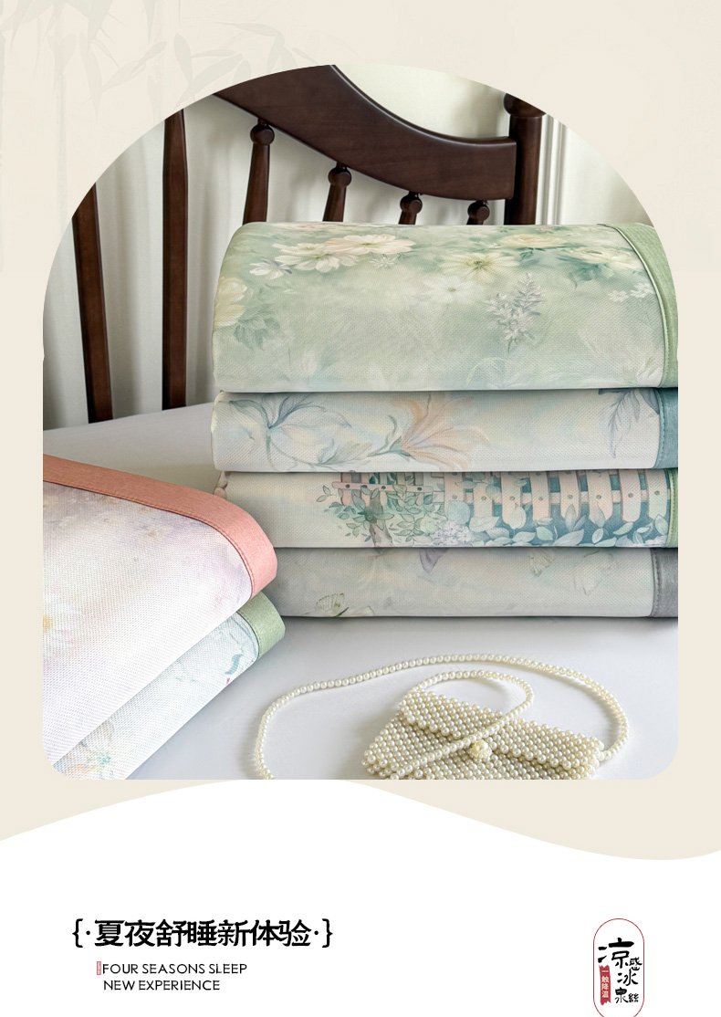 (总)倾慕家纺 2026新款A类数码印花冰泉丝凉席,蝴蝶之舞粉,蝴蝶之舞绿,花艺绿,摩尼粉,摩尼紫,水墨江南绿,素情,鲜花小镇,玉兰花绿,玉兰花紫,云梦海棠,竹潇潇绿,组合,玉兰雅韵蓝,玉兰雅韵青