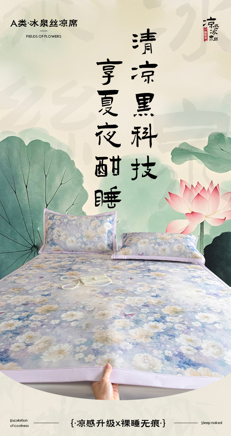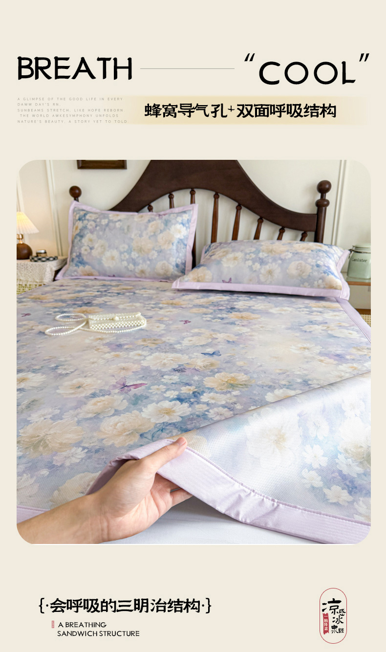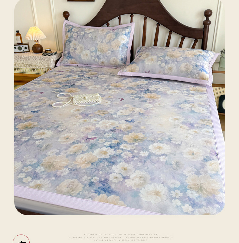 (总)倾慕家纺 2026新款A类数码印花冰泉丝凉席,蝴蝶之舞粉,蝴蝶之舞绿,花艺绿,摩尼粉,摩尼紫,水墨江南绿,素情,鲜花小镇,玉兰花绿,玉兰花紫,云梦海棠,竹潇潇绿,组合,玉兰雅韵蓝,玉兰雅韵青