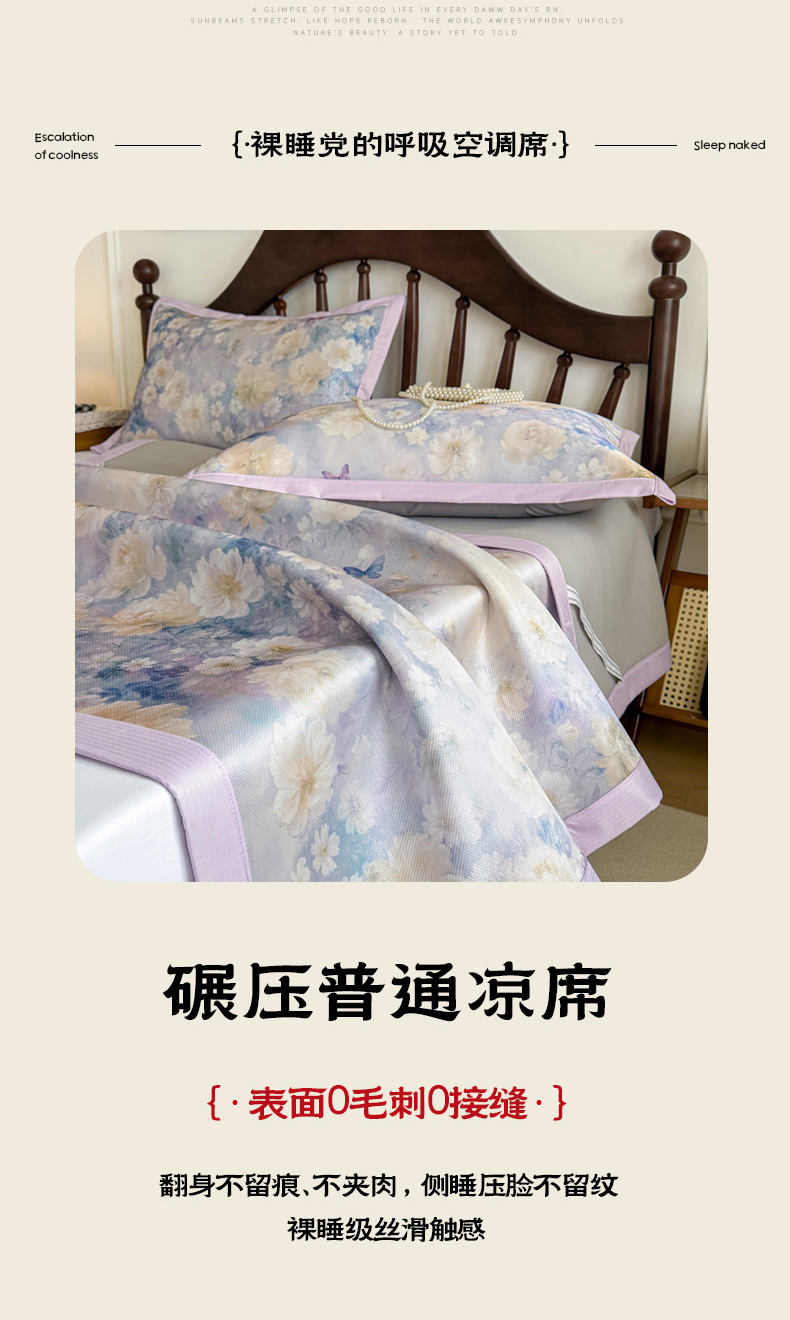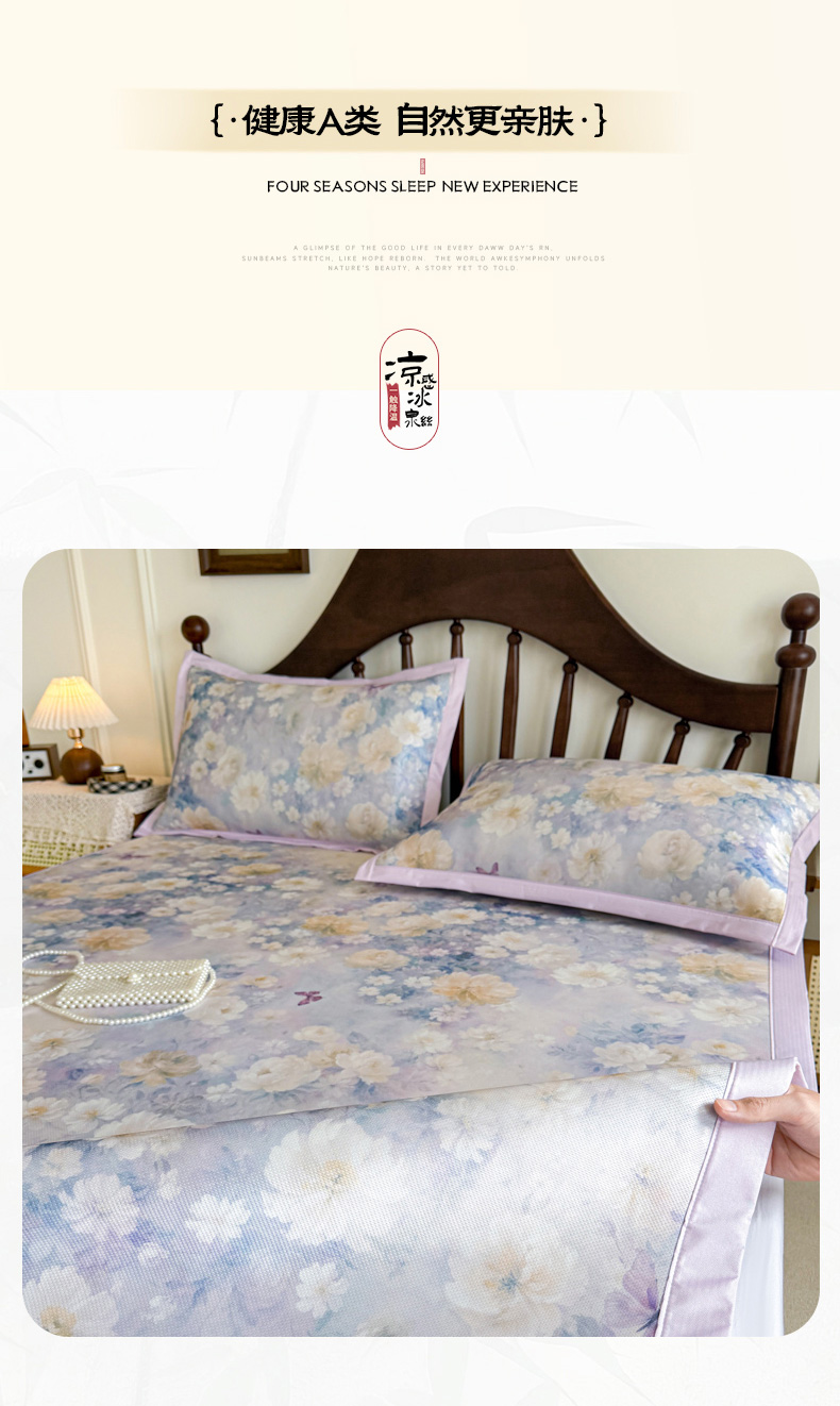 商品名称:倾慕家纺 2026新款A类数码印花冰泉丝凉席 摩尼紫
