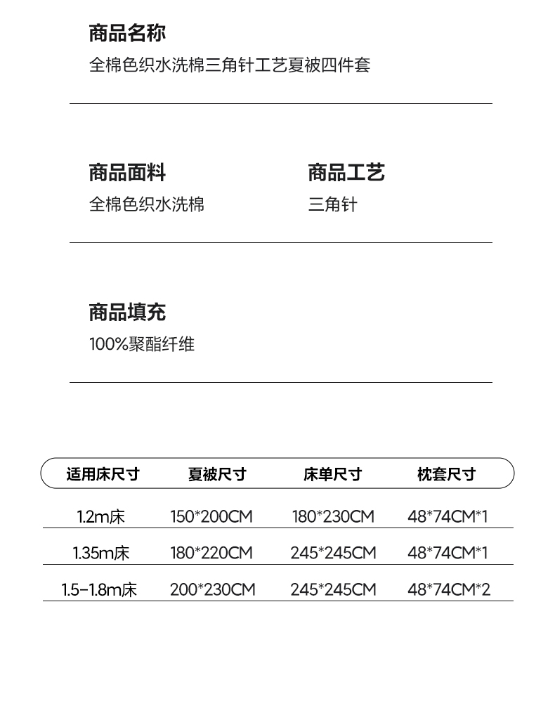 商品名称:(总)如一 2026新款全棉色织水洗棉条纹三角针夏被四件套
