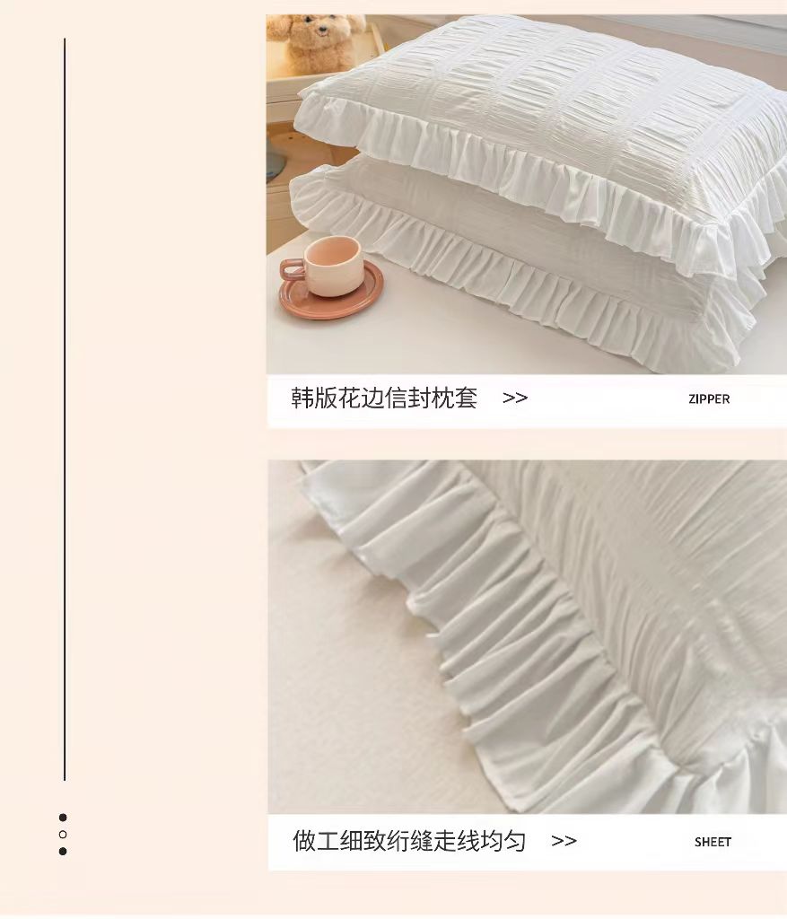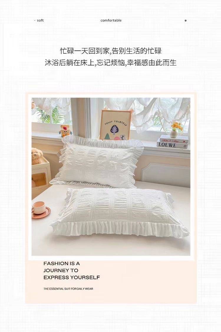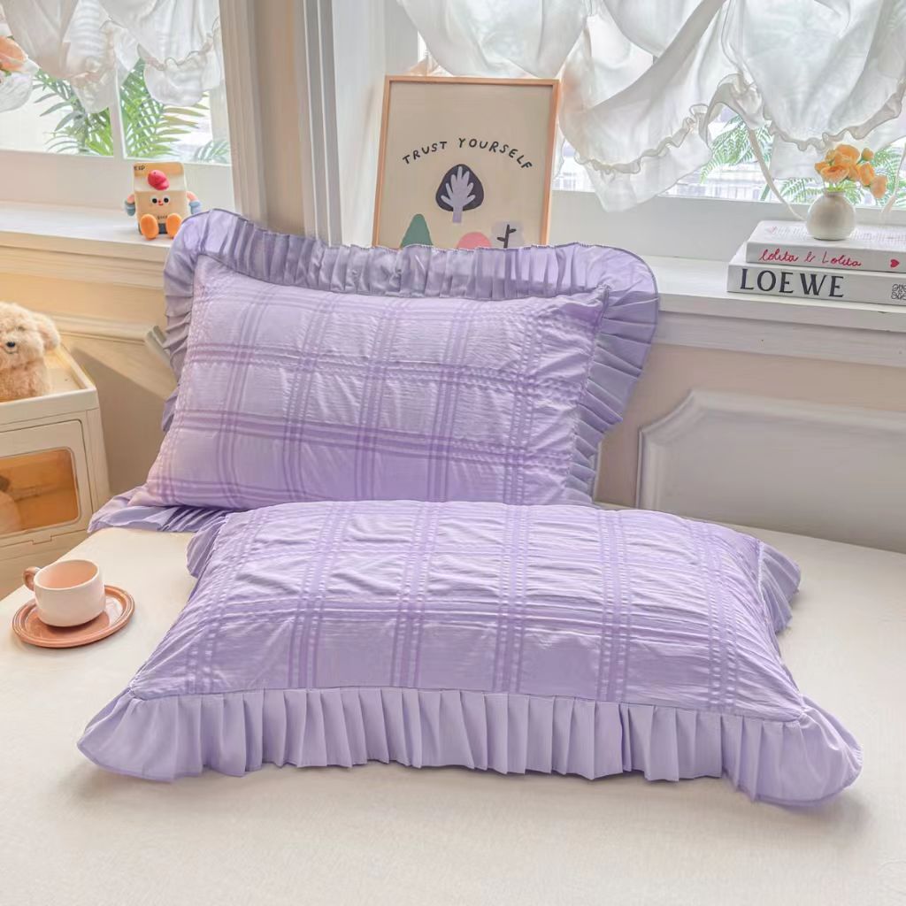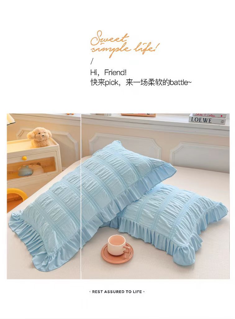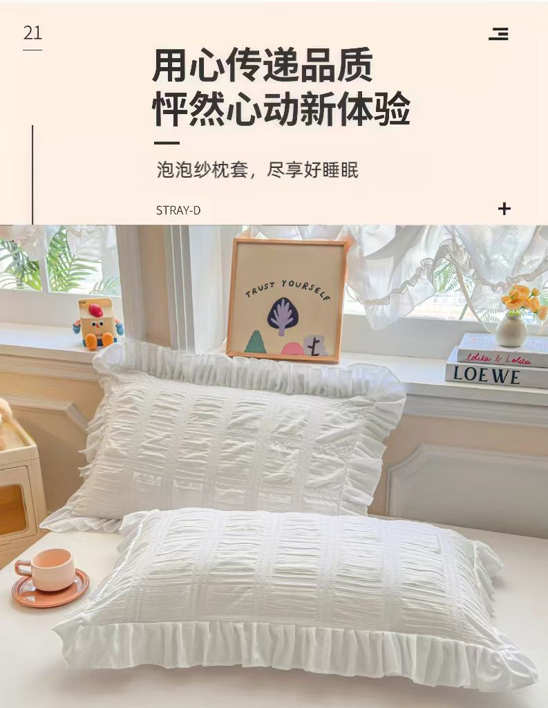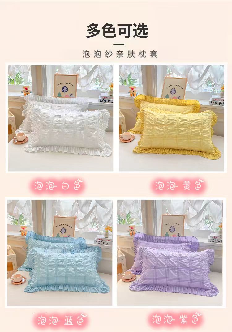 (总)梵克保罗 2026新款公主风小清新泡泡纱花边枕套,白色,黄色,蓝色,紫色