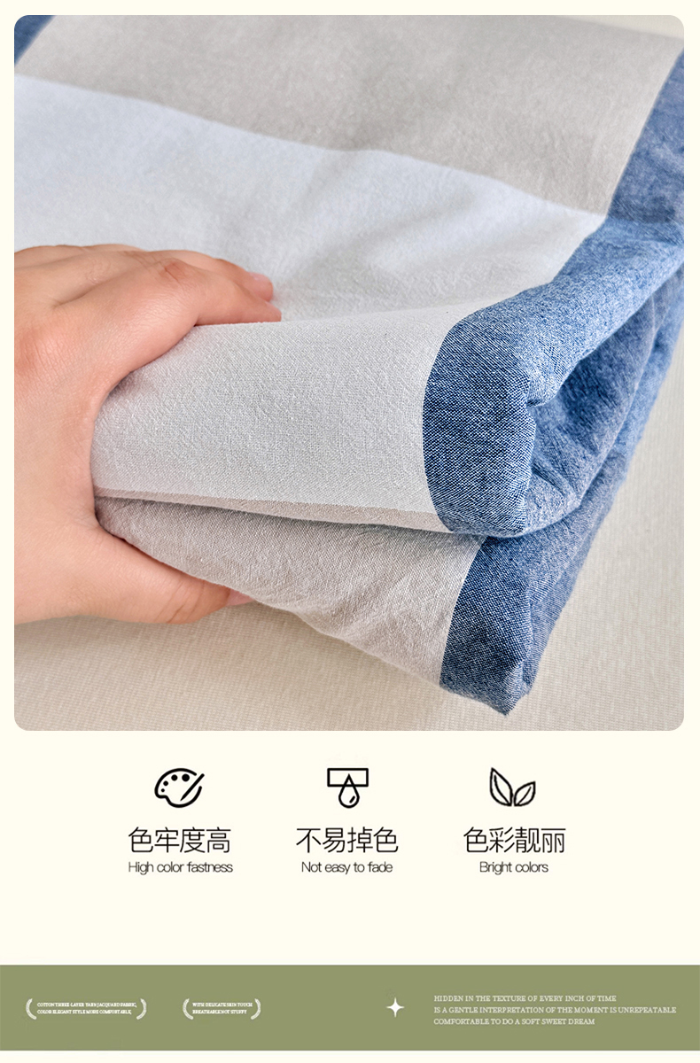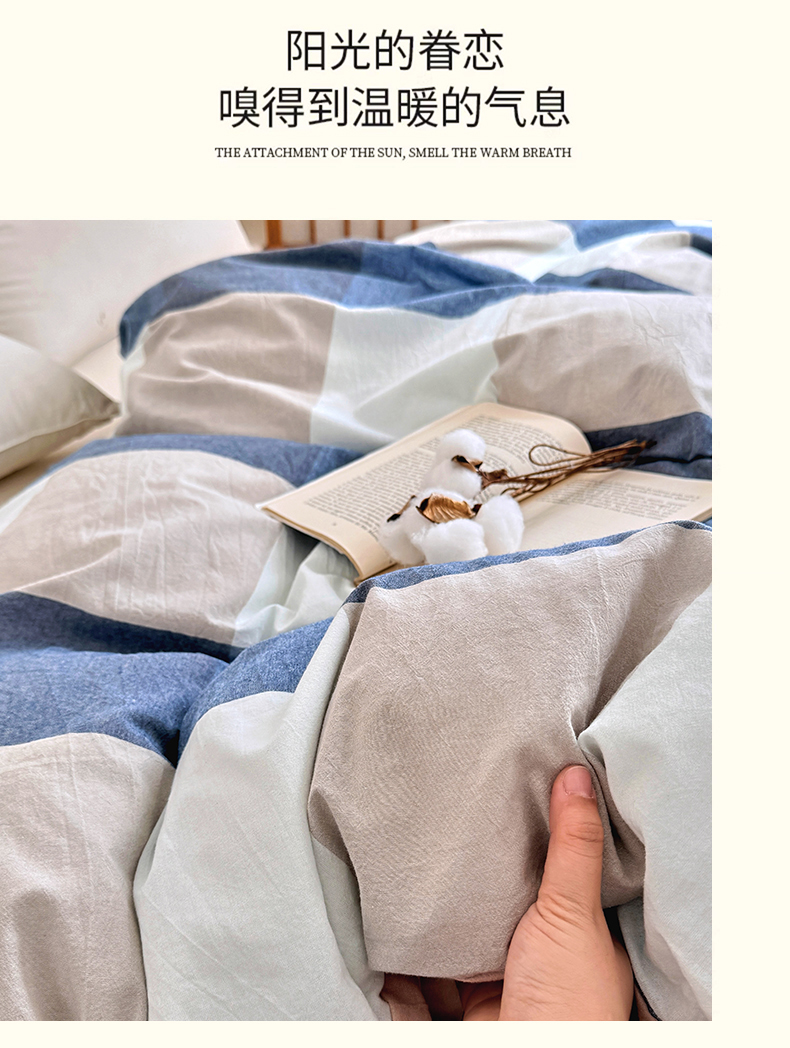 • 91家纺网 家纺一手货源 找家纺 家贝爱 2026新款全棉纯棉水洗色织被套单件被套单品单被套 简易蓝
