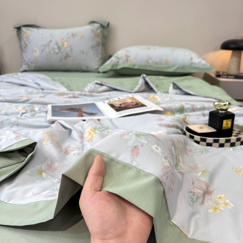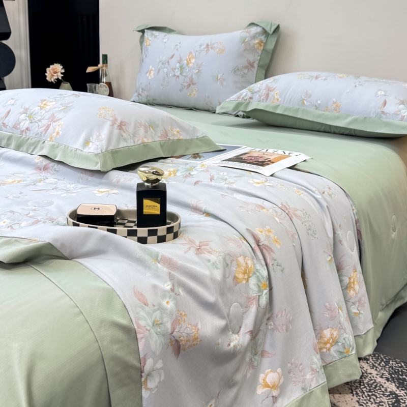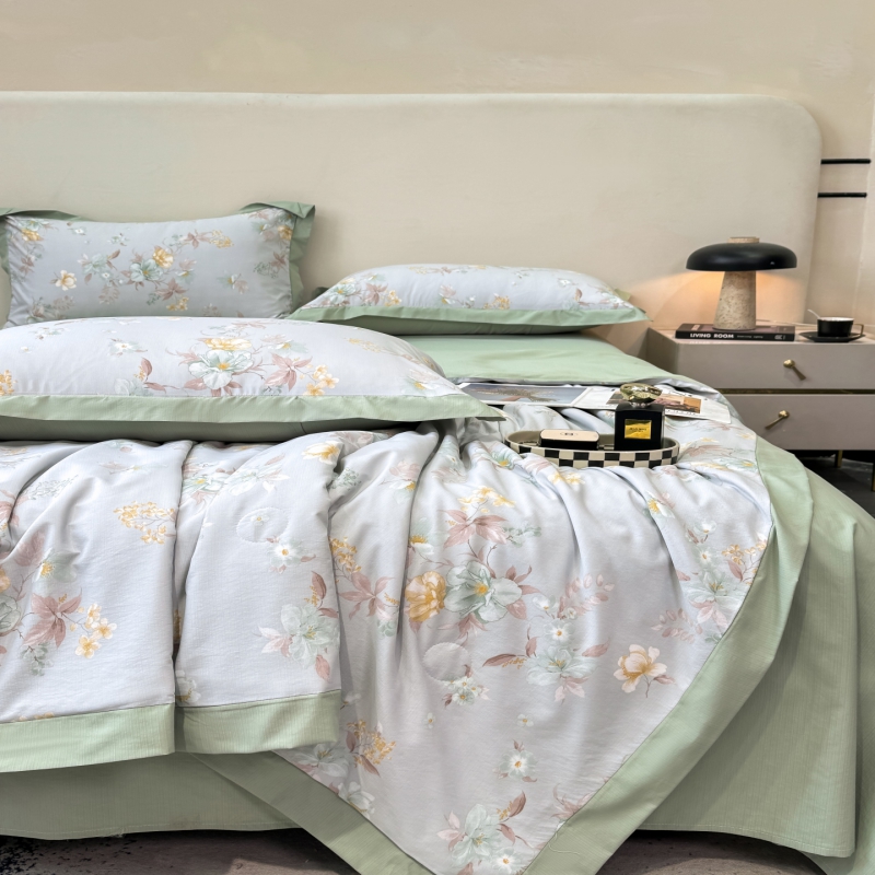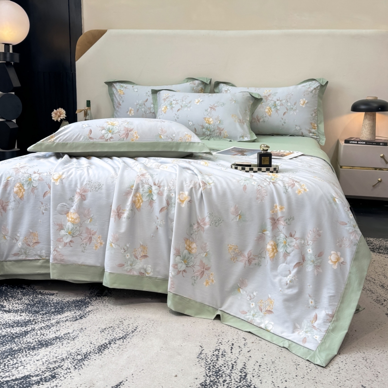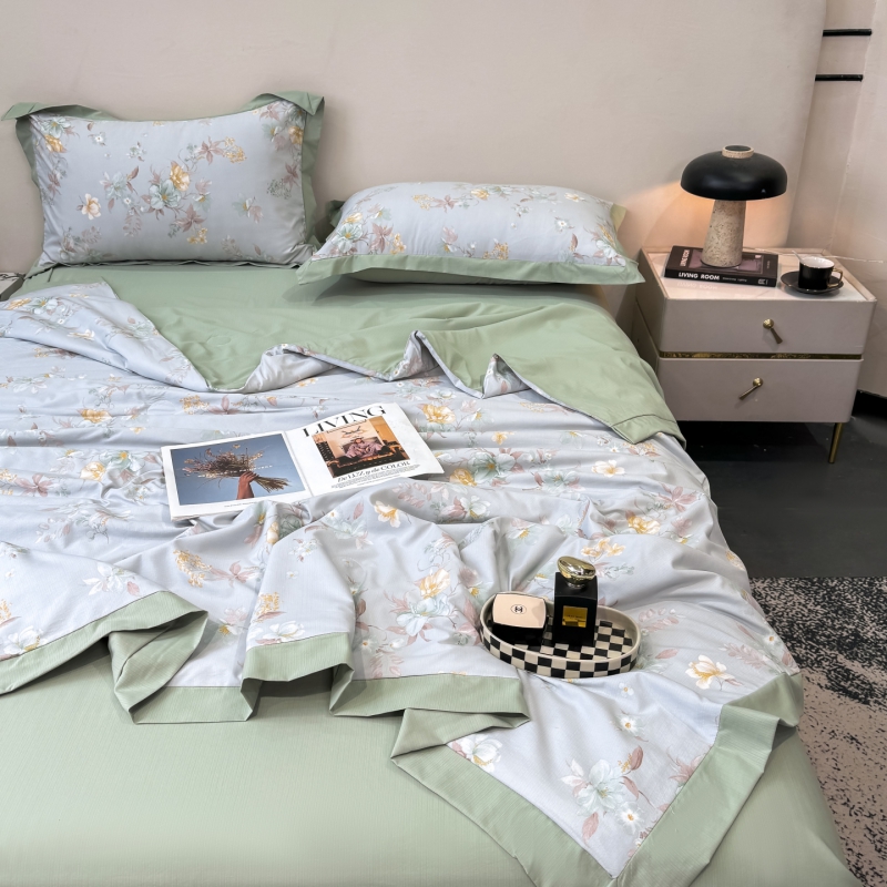 新款凉感天丝棉夏被夏凉被空调被夏被四件套系列 青禾花