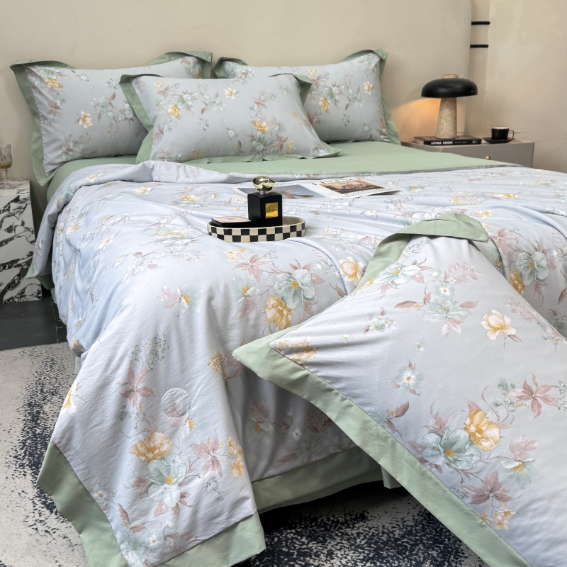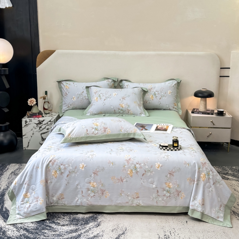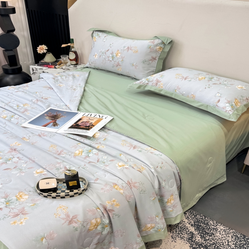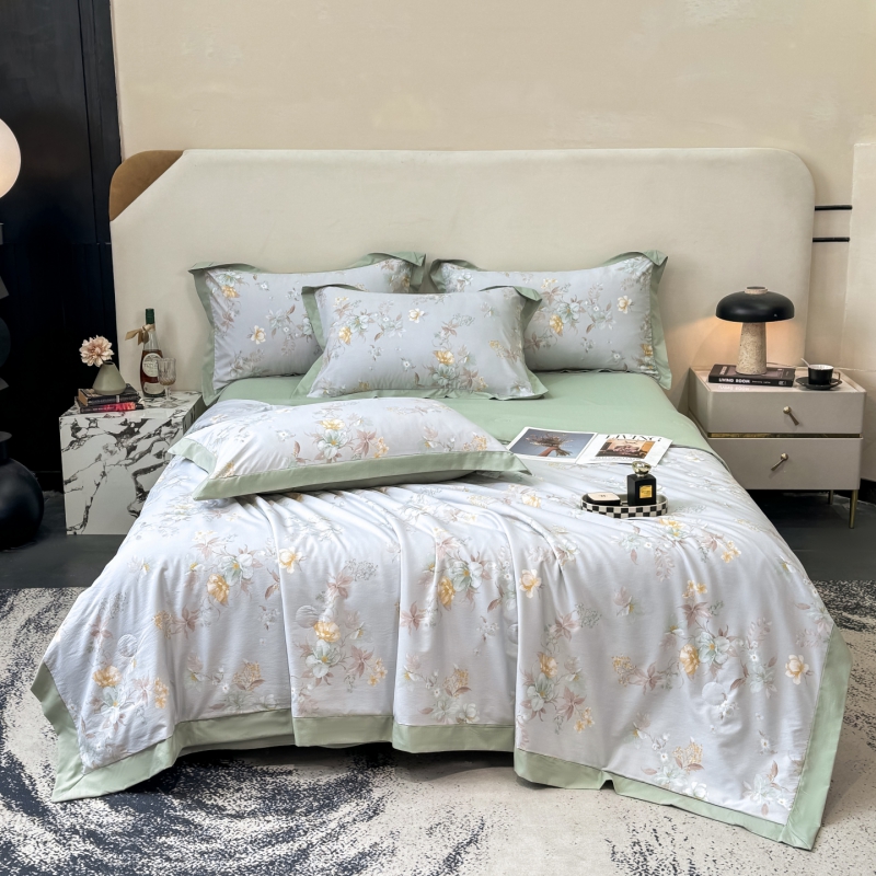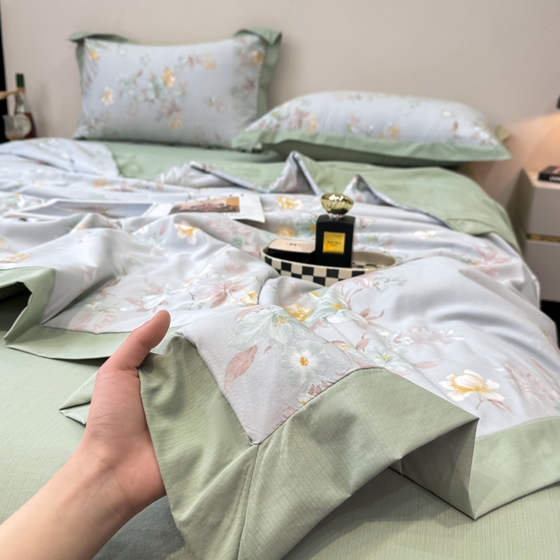 新款凉感天丝棉夏被夏凉被空调被夏被四件套系列 青禾花