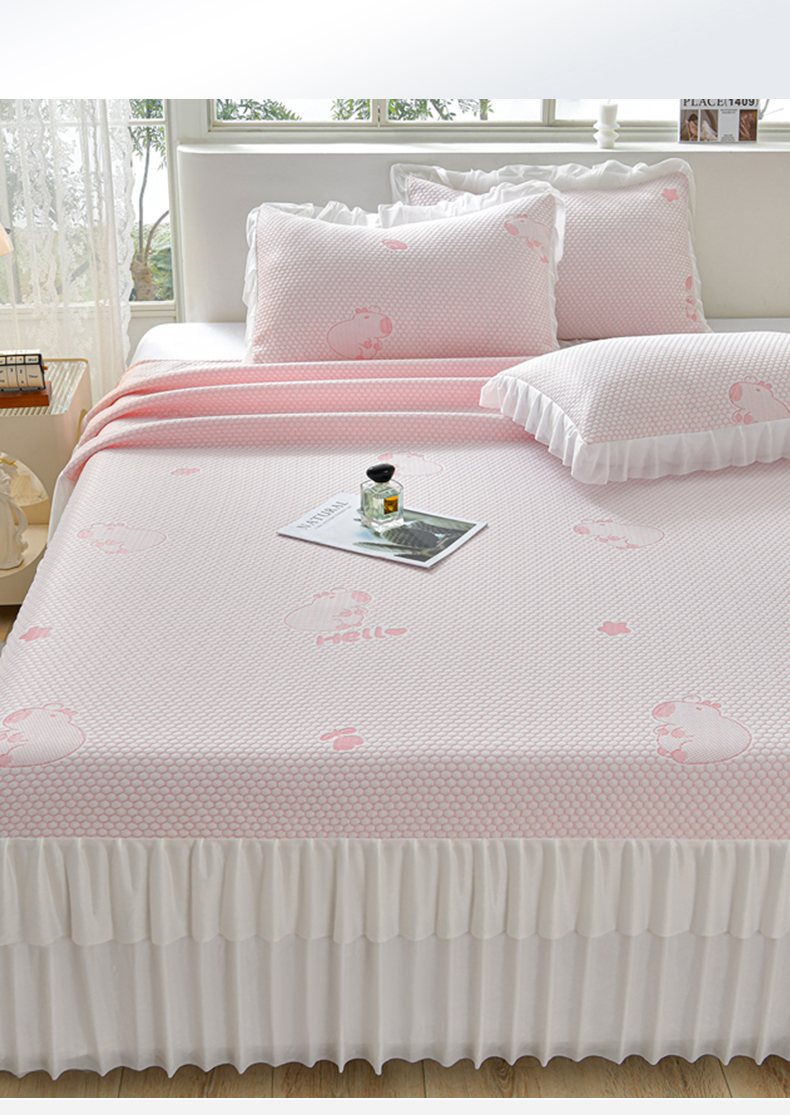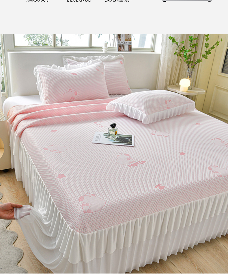 (总)梦之星 2026新款PE凉感豆豆凉席绣花三明治复合床裙款氨纶凉感丝夏被三件套四件套,格韵-粉-床裙款,格韵-灰-床裙款,格韵-蓝-床裙款,格韵-绿-床裙款