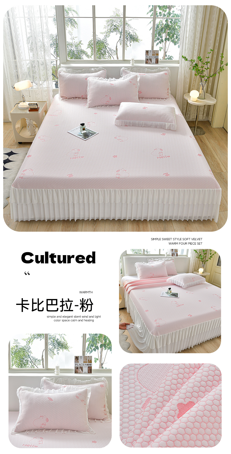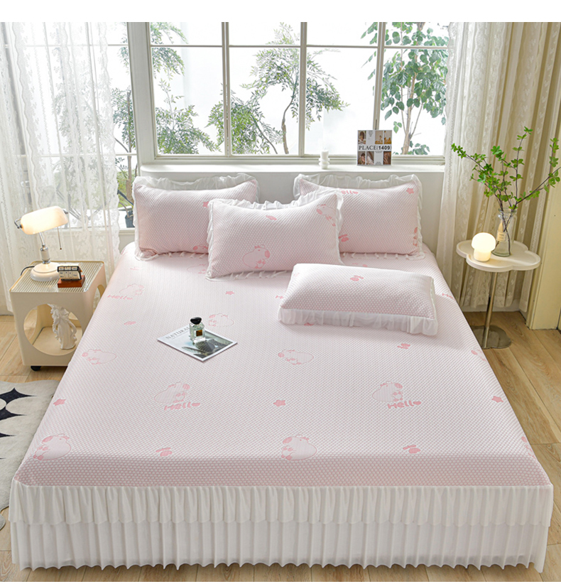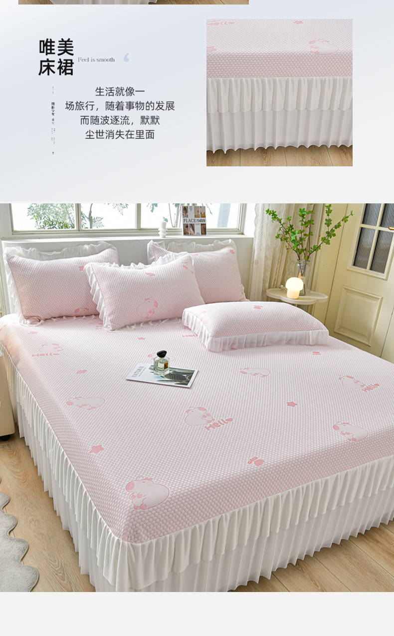 (总)梦之星 2026新款提花面料530克PE凉感因子冰豆豆床裙三件套,漫花-粉,漫花-灰,漫花-蓝,漫花-绿,山水-粉,山水-灰,山水-蓝,山水-绿