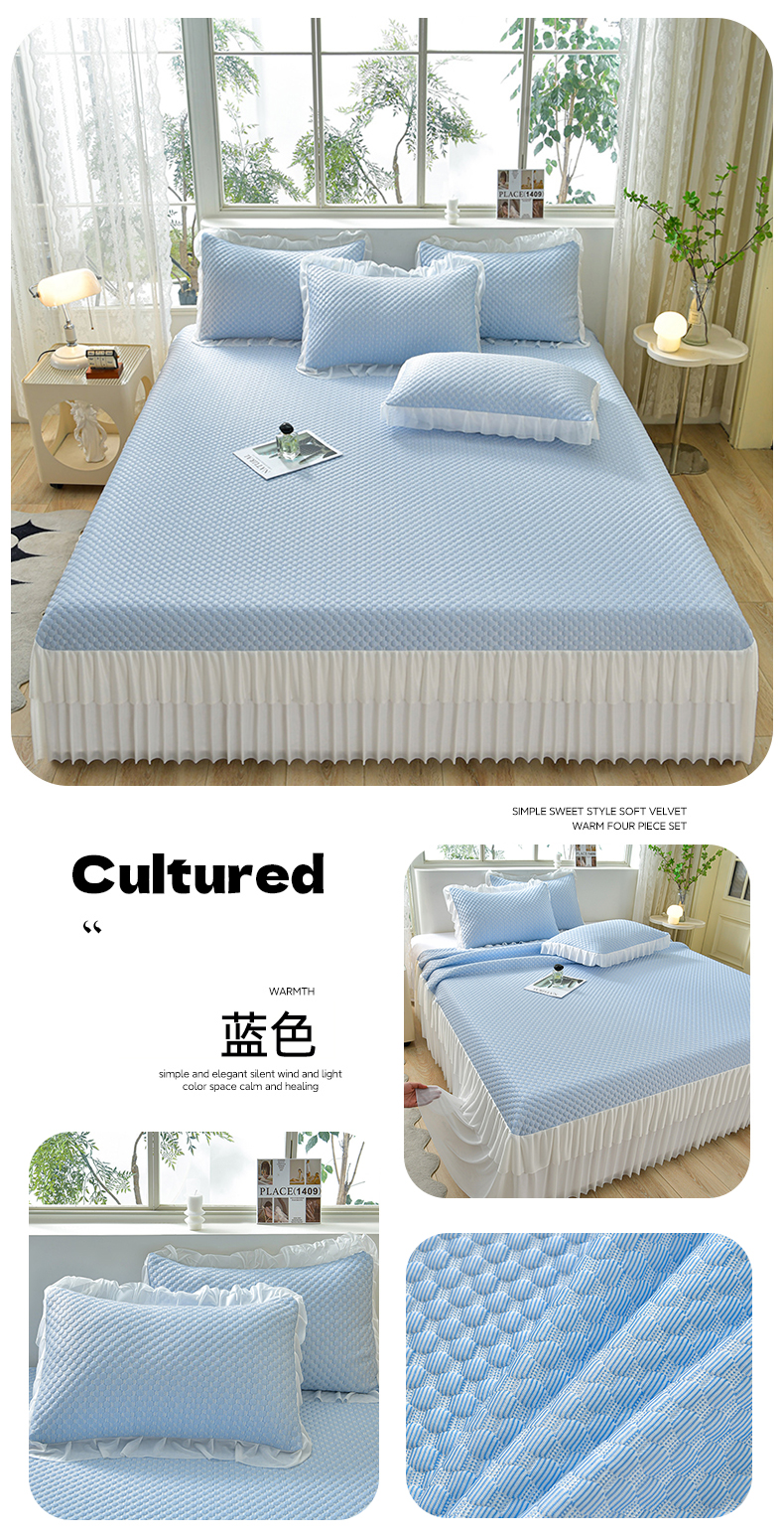 2026新款PE聚乙烯中分子凉感冰感凉豆豆床裙三件套欧式-蓝,欧式-蓝