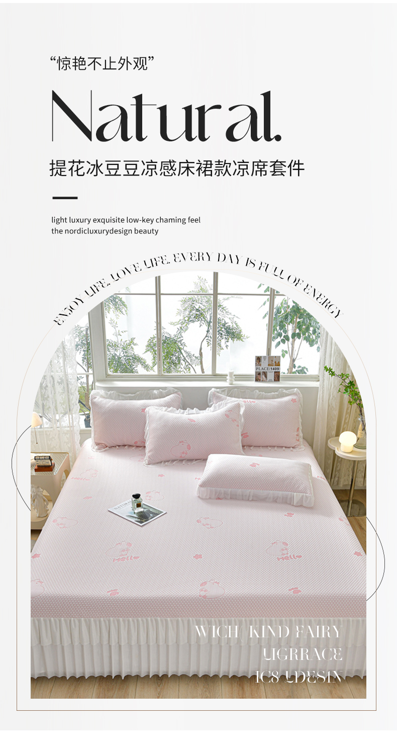 商品名称:(总)梦之星 2026春夏新款400克A类提花冰豆豆凉感床裙款凉席三件套席子空调软席