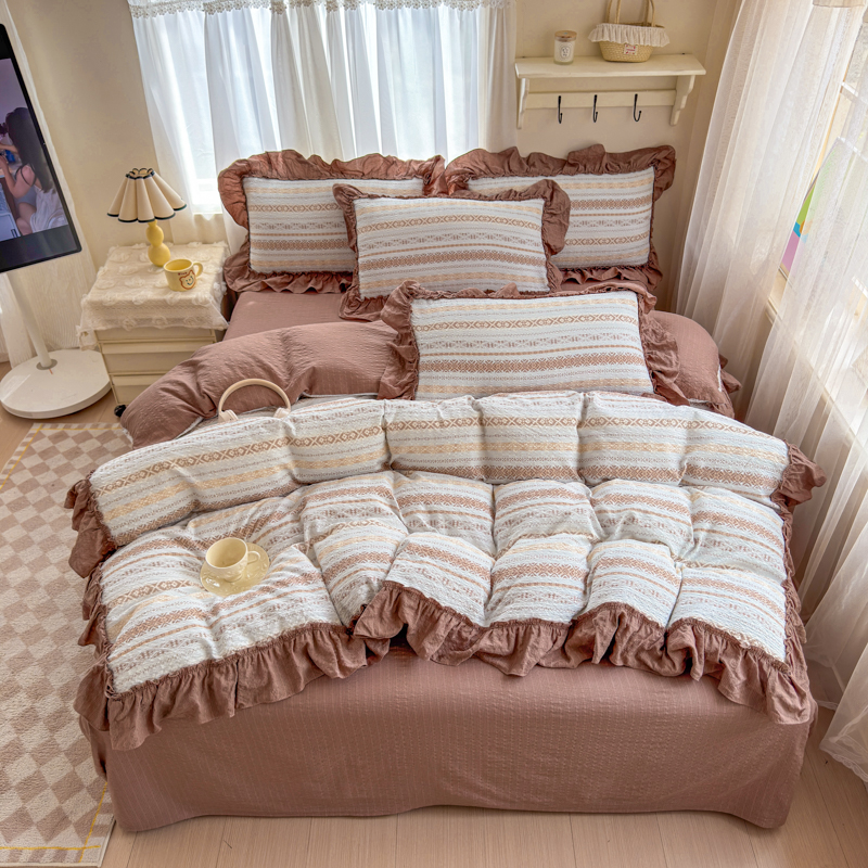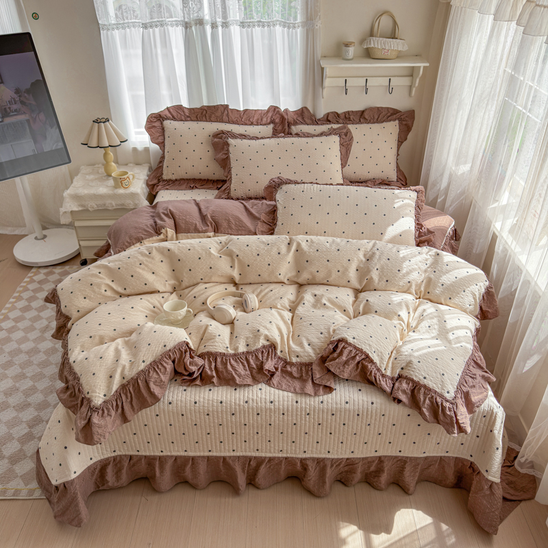(总)仟网汇 2026新款赫本纯色泡泡纱花边款夏被夏凉被空调被四件套,芥末绿,奶白咖,奶咖,起司,天空蓝,香芋紫,樱花粉,组合图仅供展示不可下单