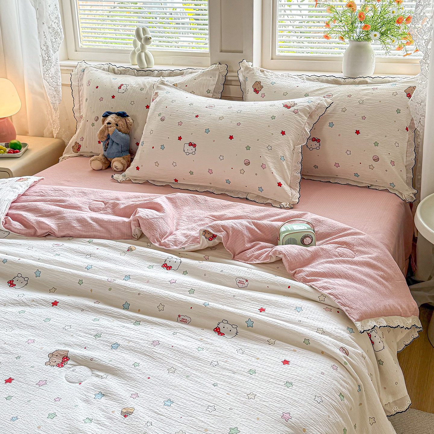 (总)梦纤绒 2026新款法式全棉花边夏被夏凉被空调被四件套,星织甜梦,豆蔻,蔷薇花,半岛玫瑰,粉黛,红樱桃,花间语,米朵,莫奈花园,奶狗乐园,浅夏,花园兔,童趣梦,星星人