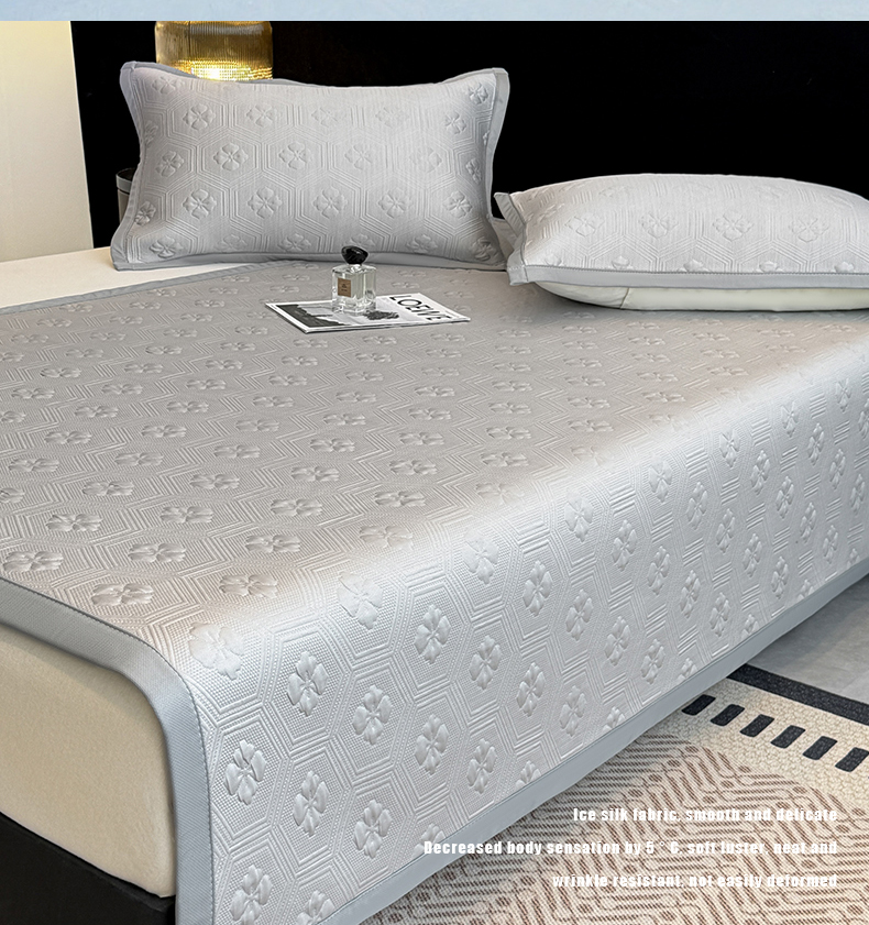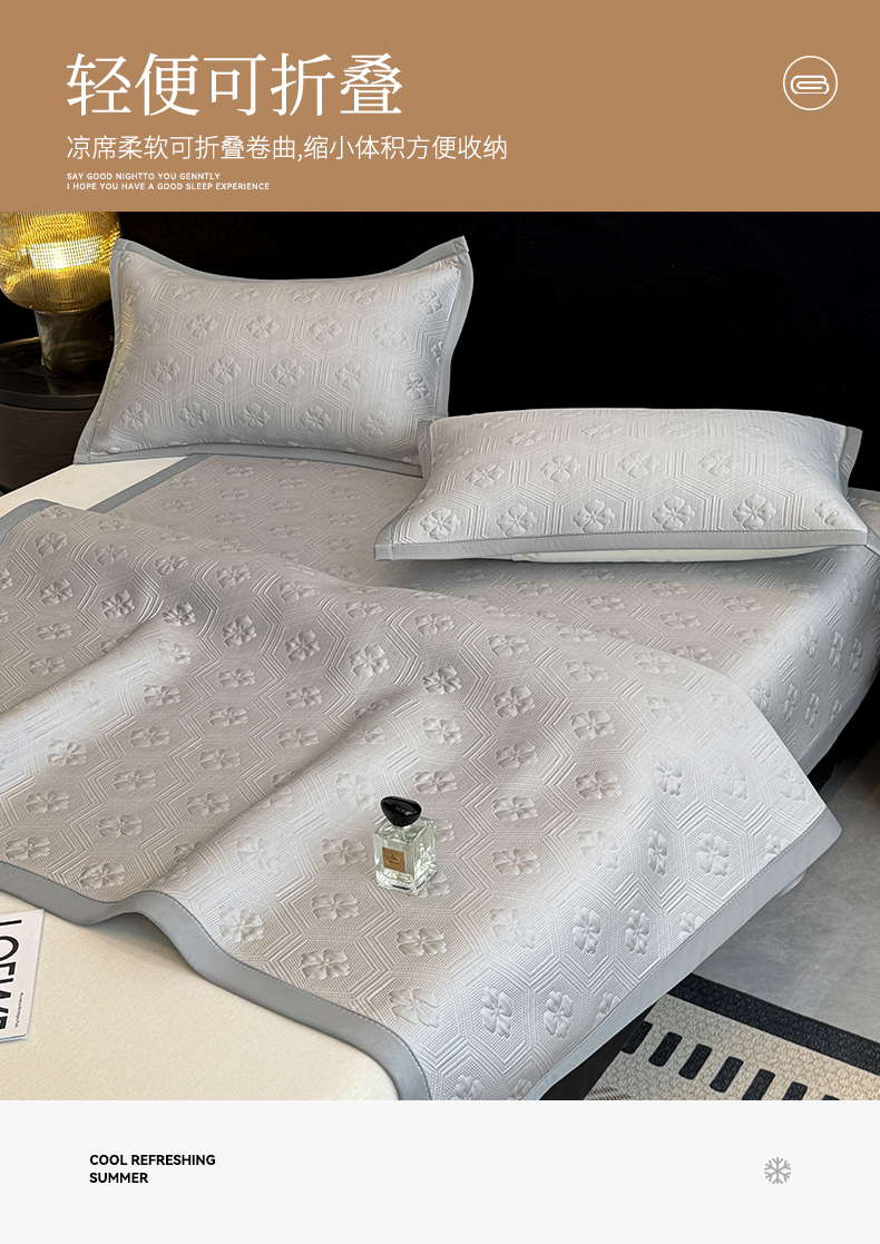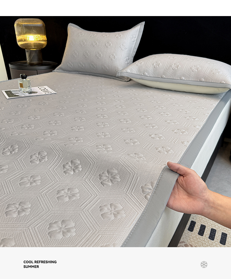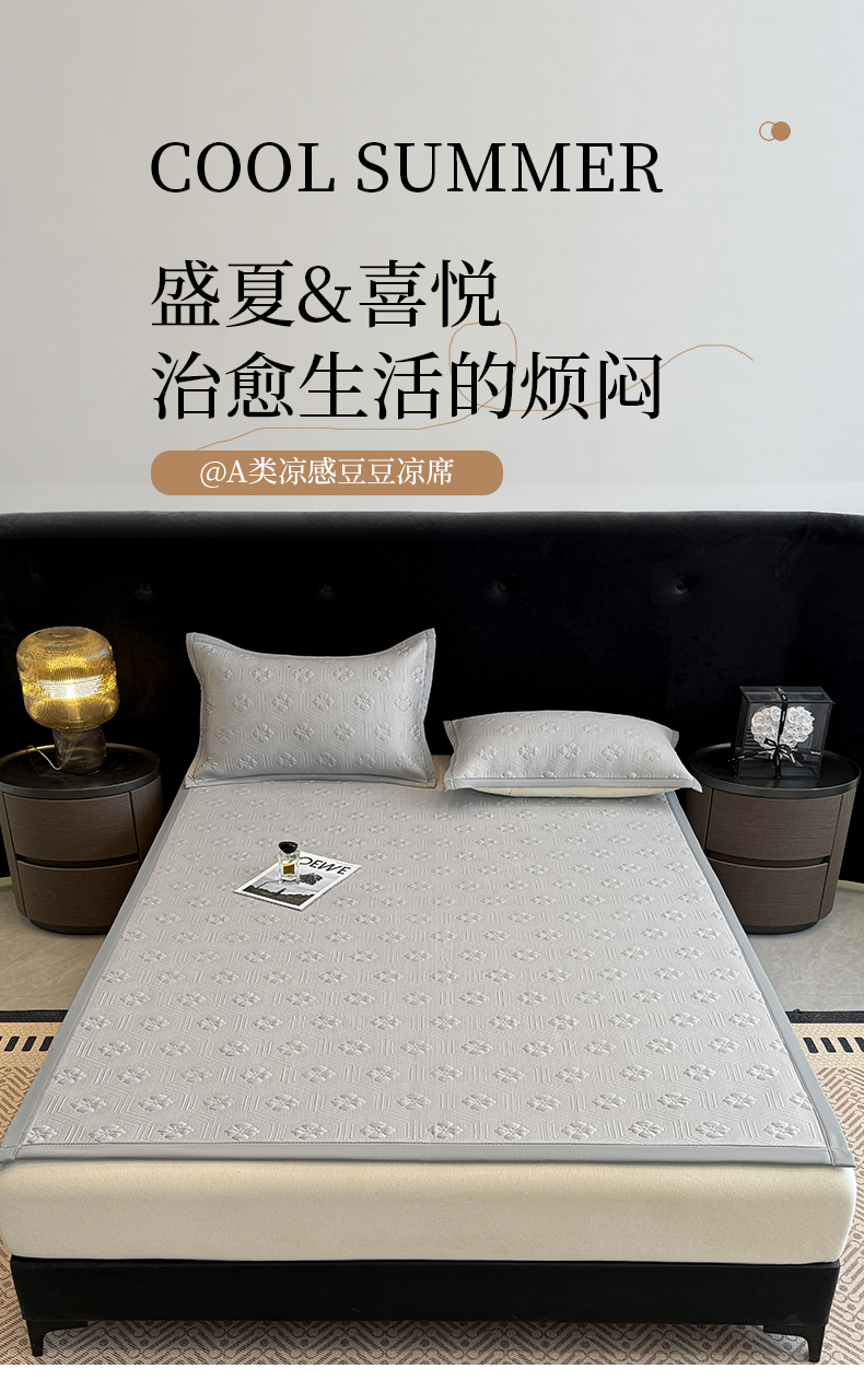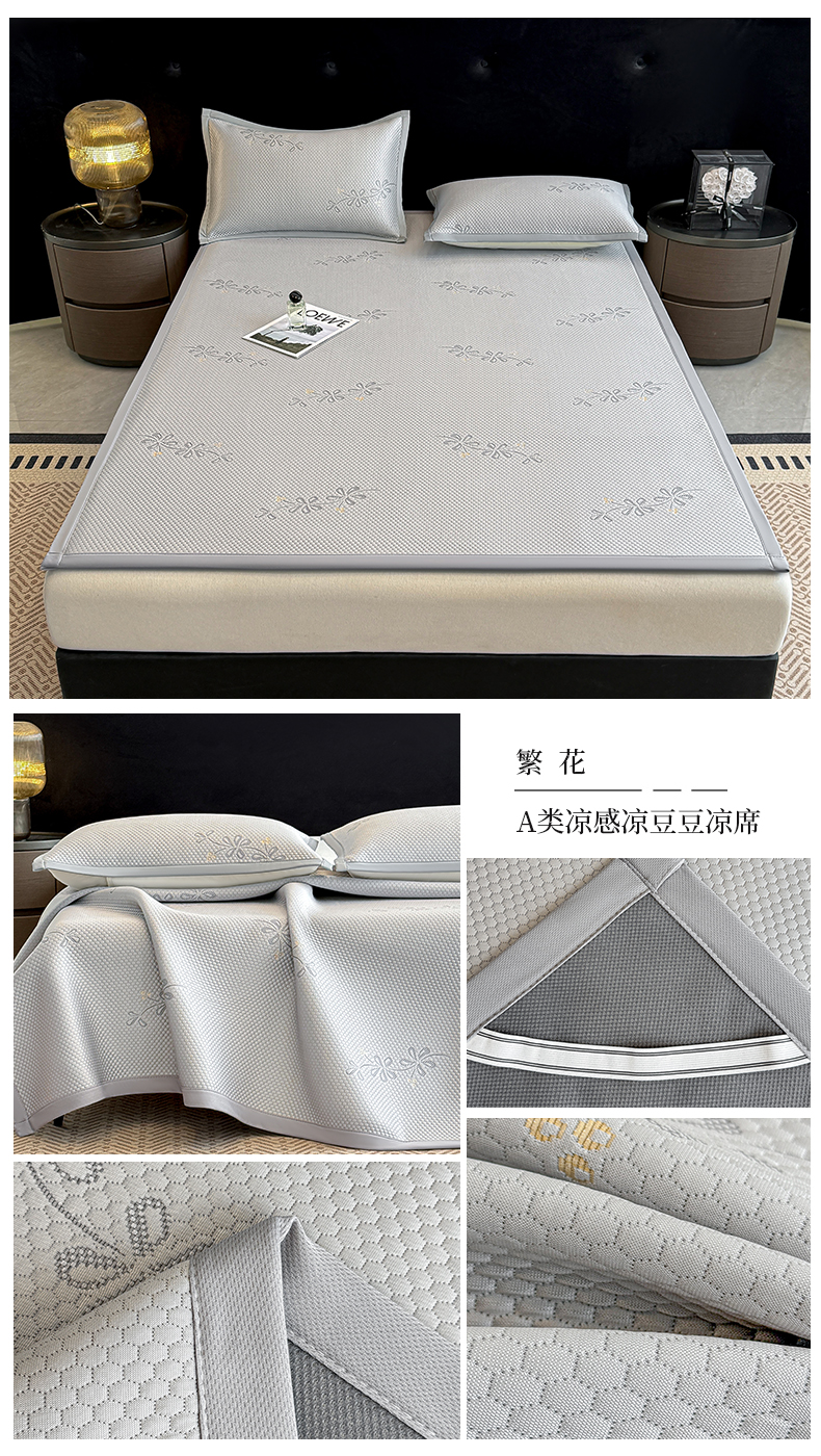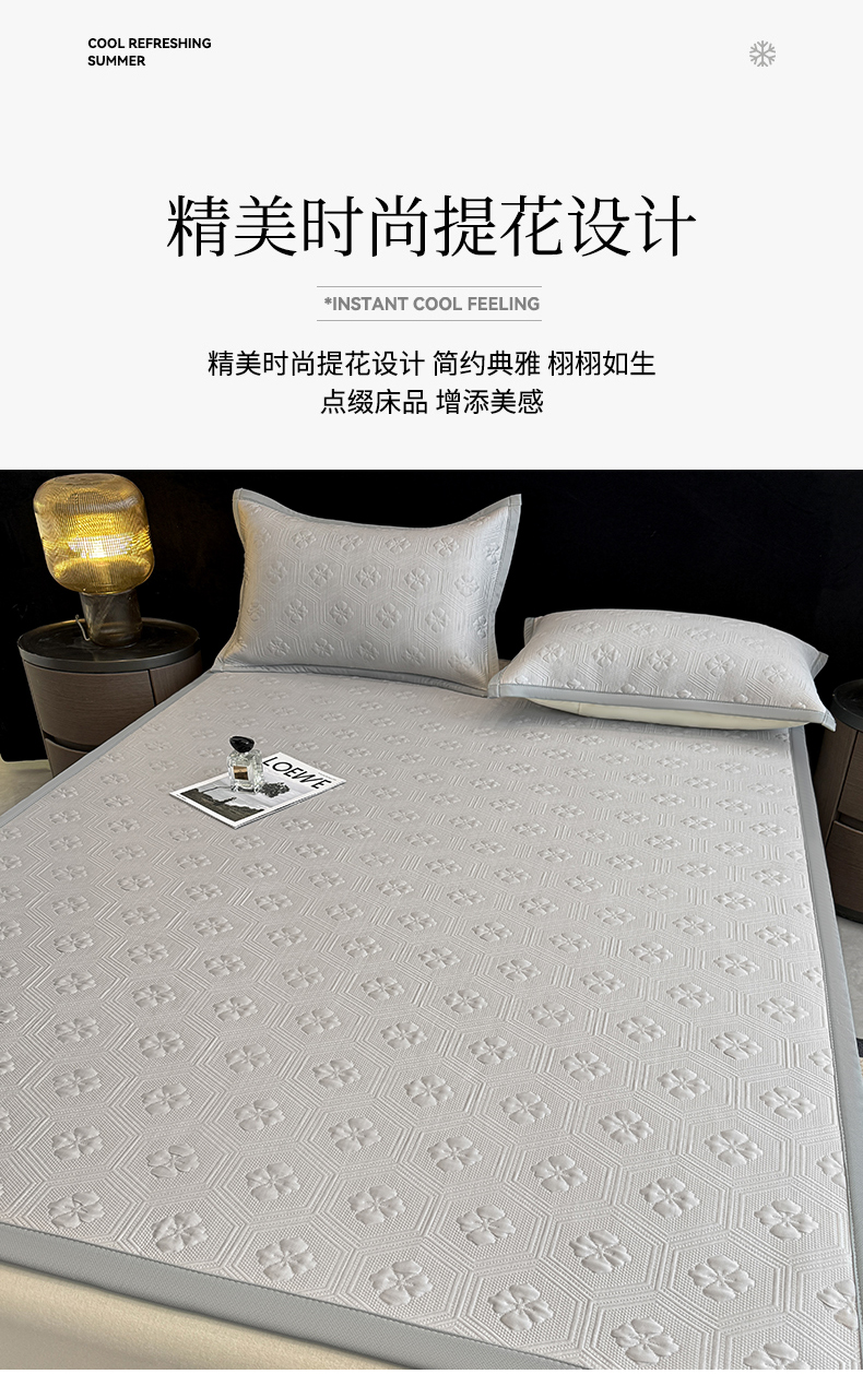 (总)畅畅家纺 2026新款夏季冰豆豆PE高分子凉感印花床裙款空调软凉席三件套,花韵-粉,花韵-灰,花韵-蓝,意境-粉,意境-灰,意境-蓝,意境-绿