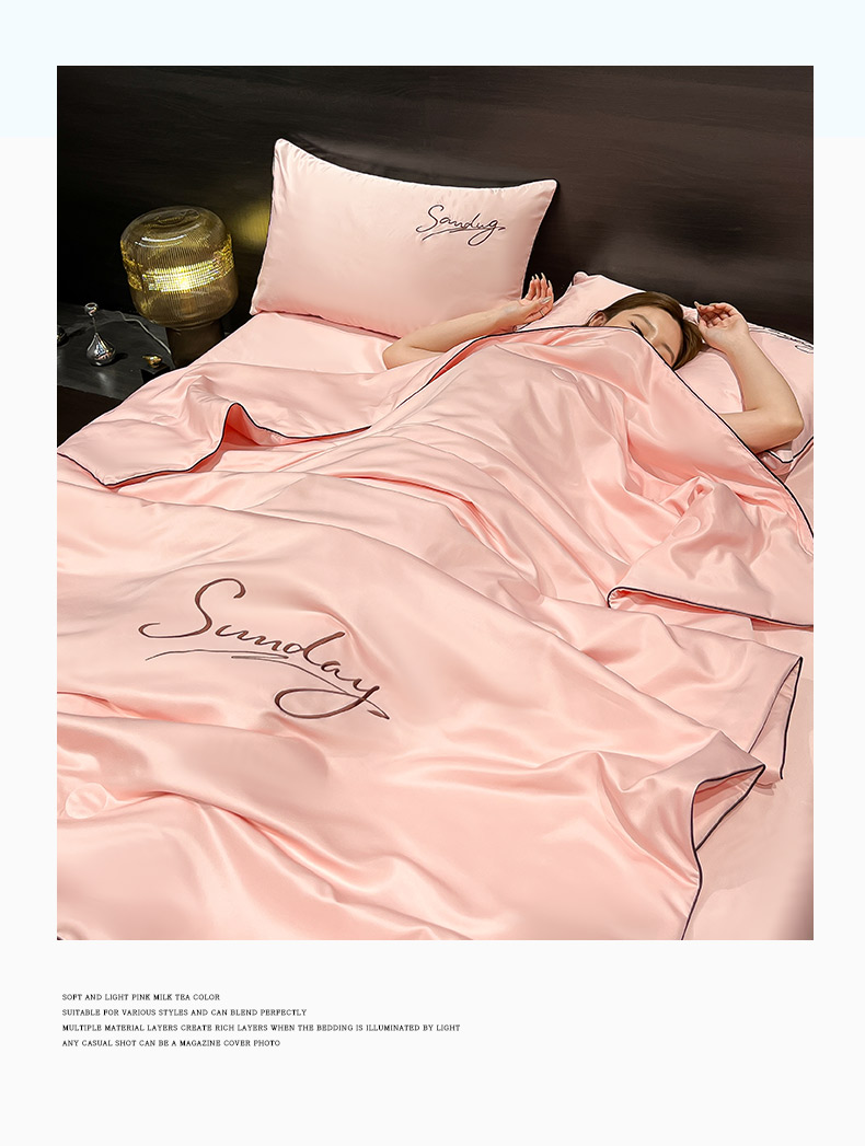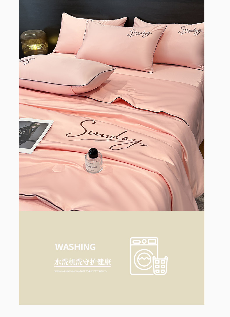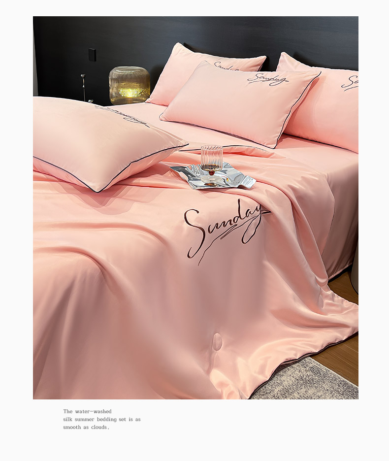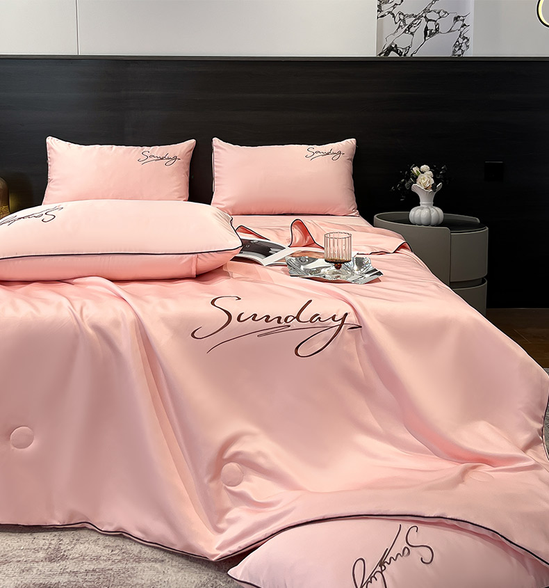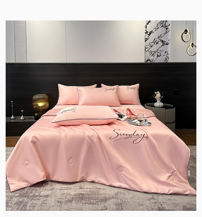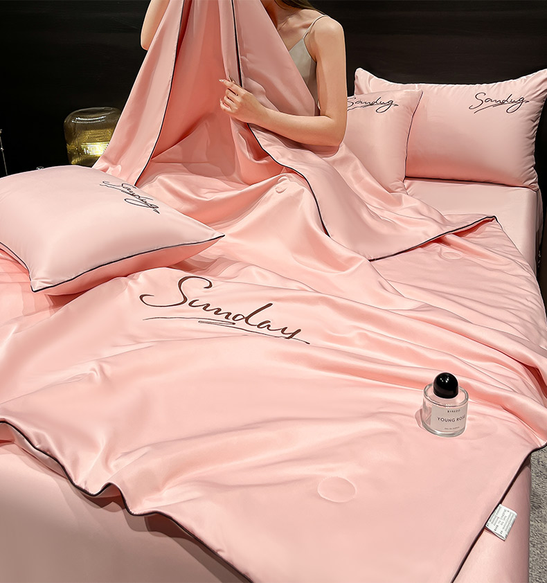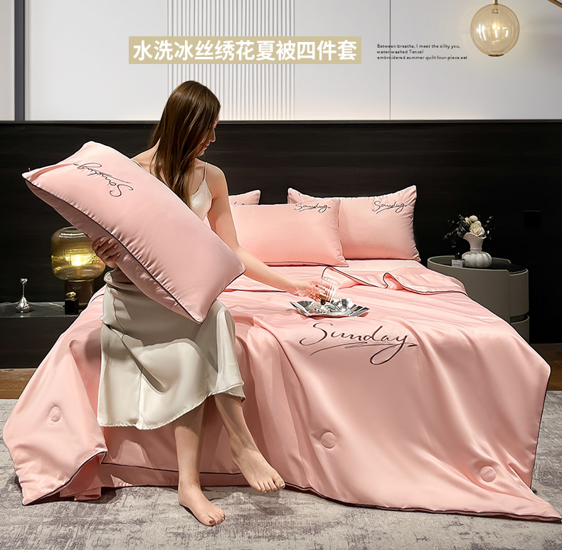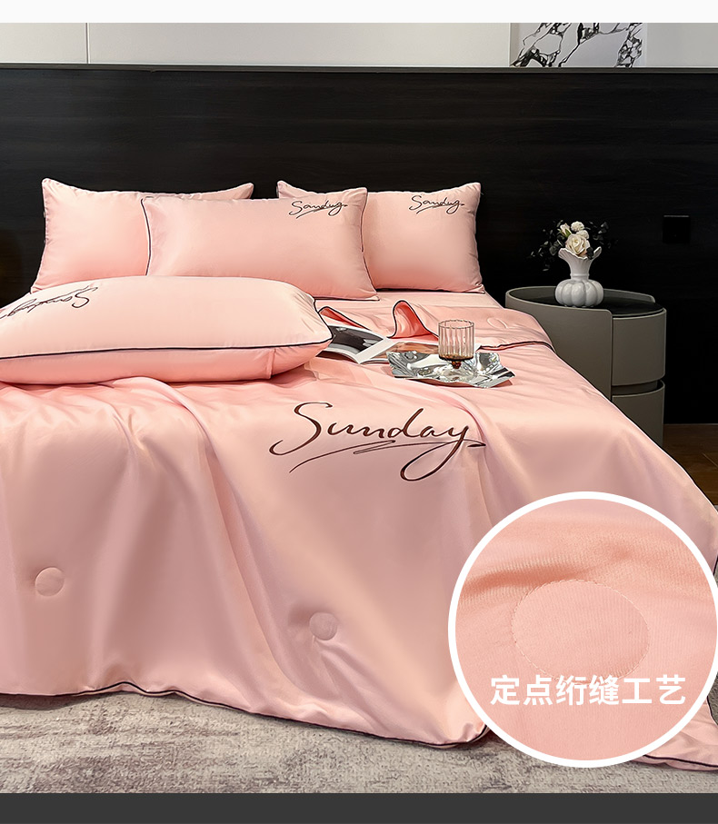 • 91家纺网 家纺一手货源 找家纺 云恋家纺 2026新款可水洗夏被冰丝空调被夏凉被床单三四件套夏季薄被子春秋被芯夏天 浪漫假日-樱花粉