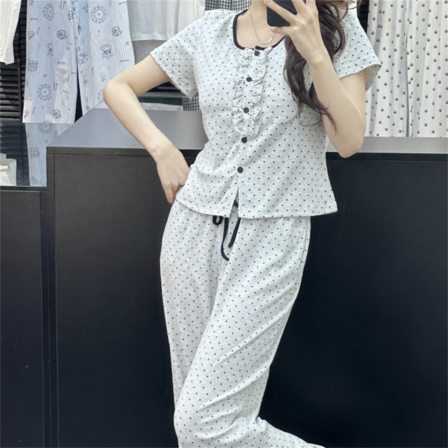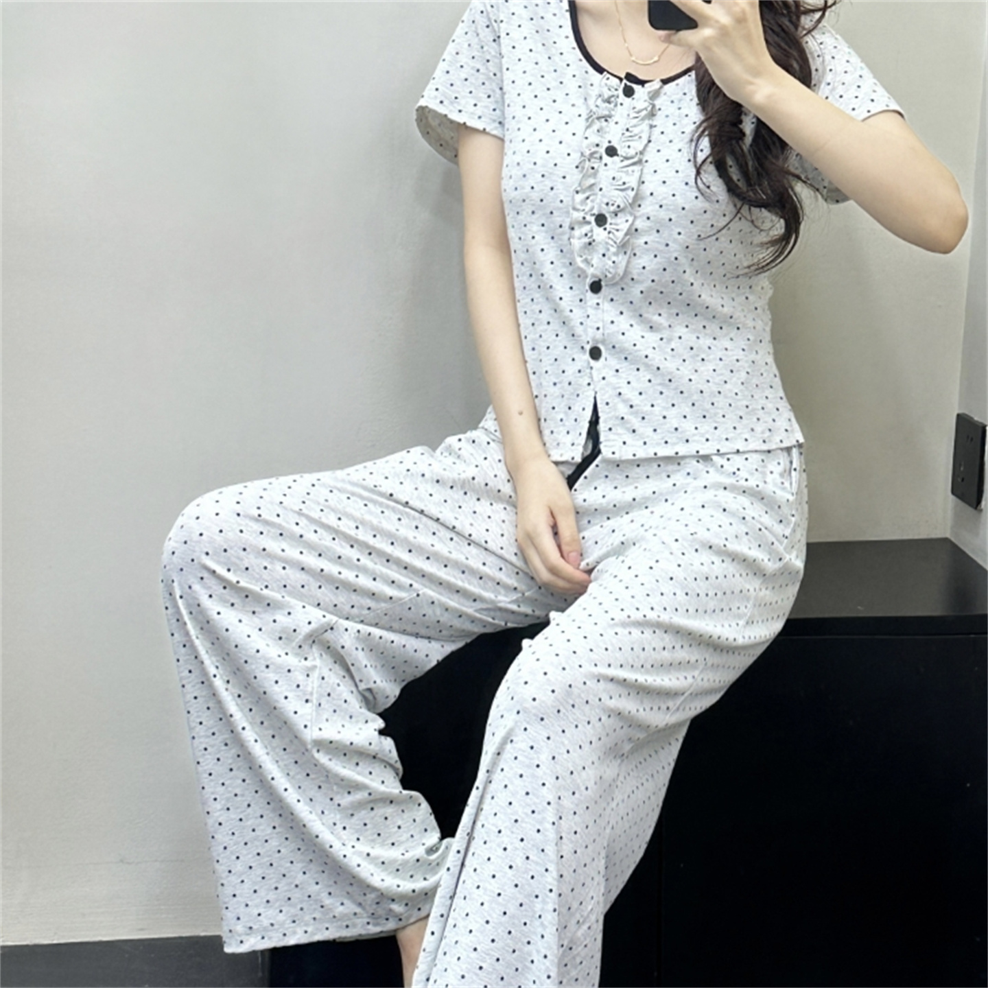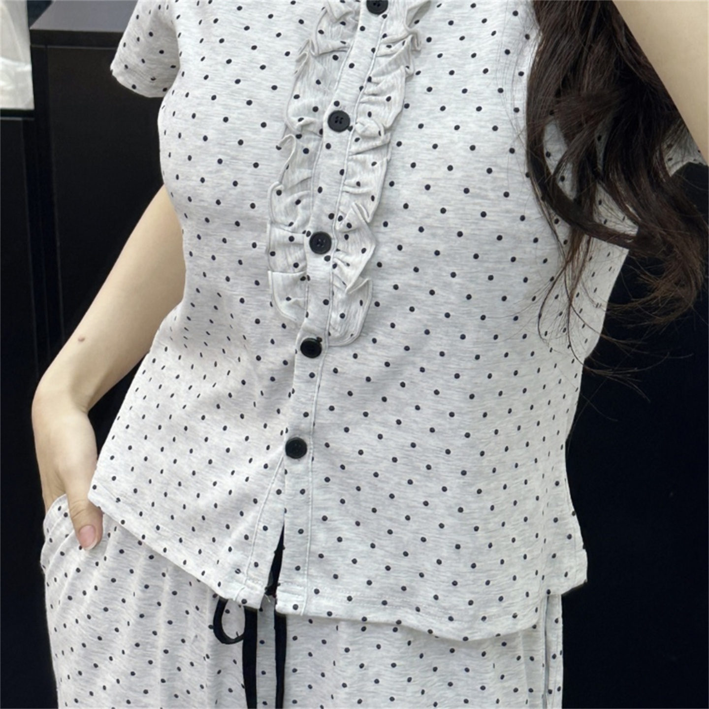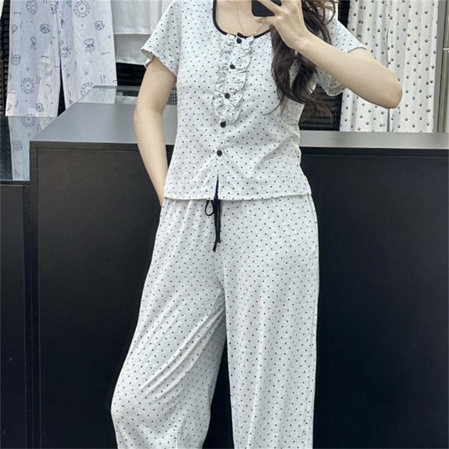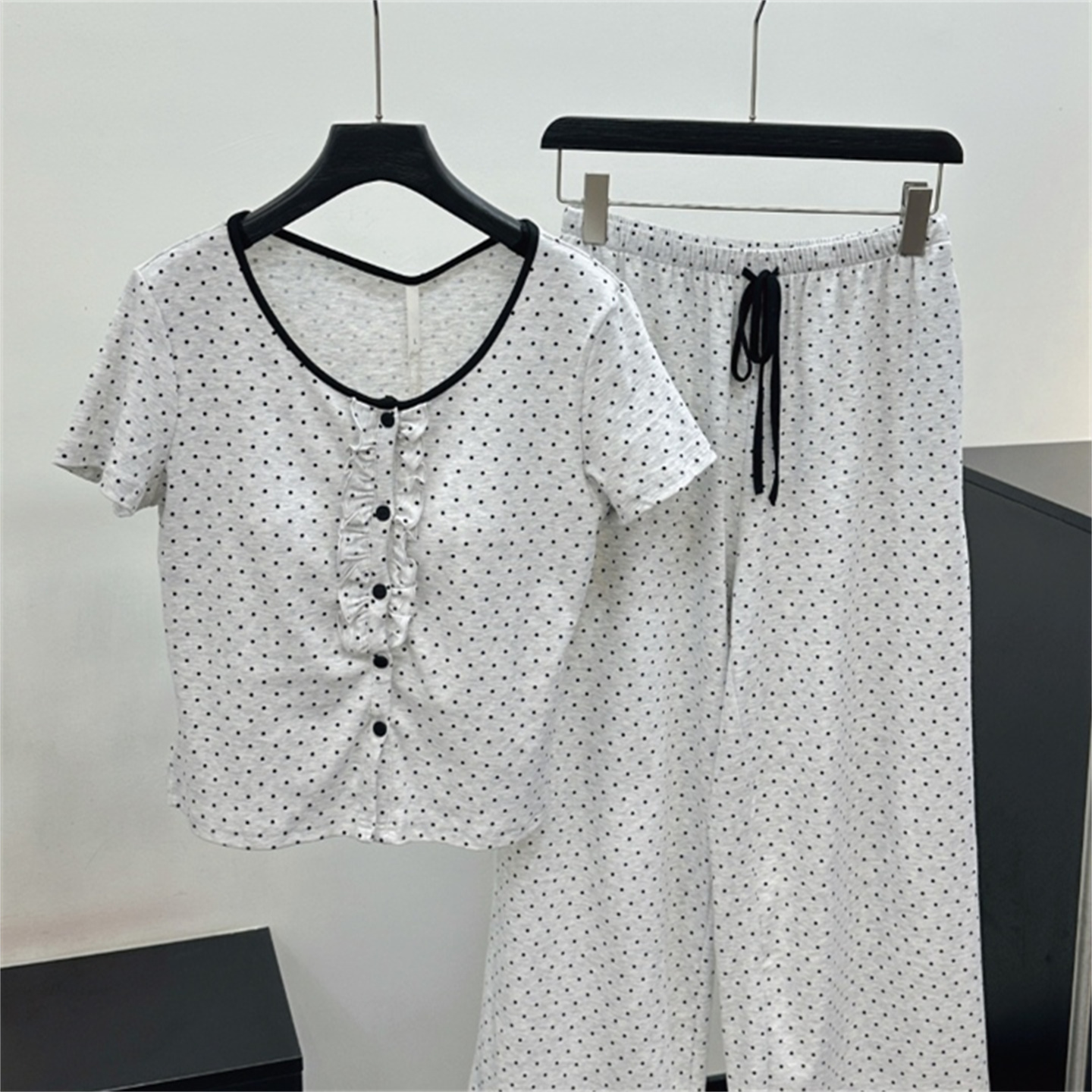 (总)妍景家居生活馆 2026新款木耳边黑波点短长家居服