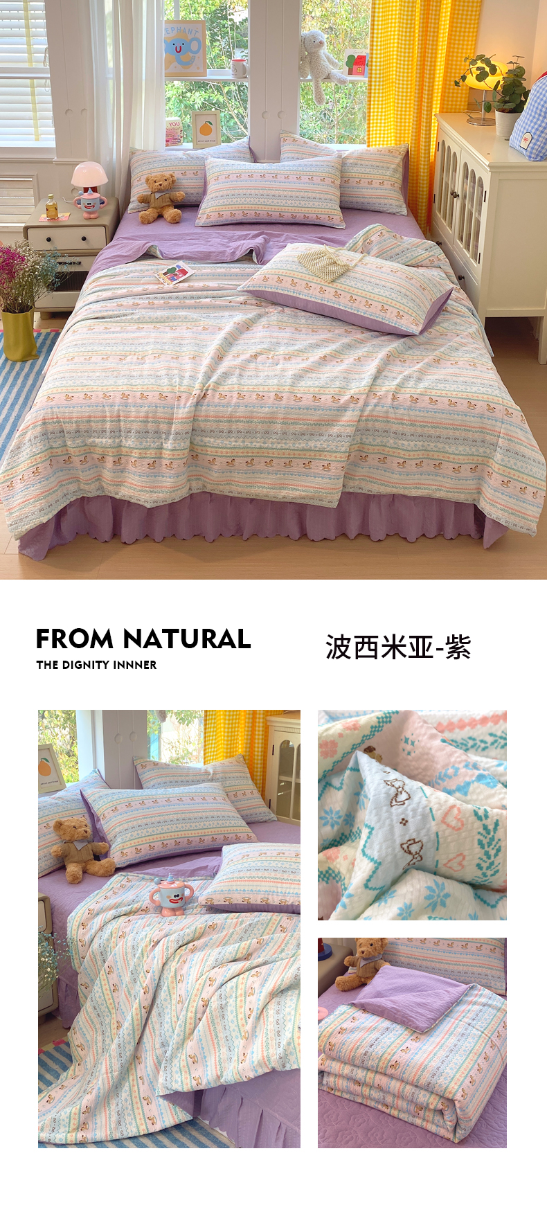 (总)莱米家纺 2026新款云感泡泡双层纱夏被夏凉被空调被床盖四件套,波西米亚-咖,波西米亚-紫,海派甜心,猫咪乐园,猫咪日记,魔法星星,苹果星星人,兔兔乐园,音乐小狗