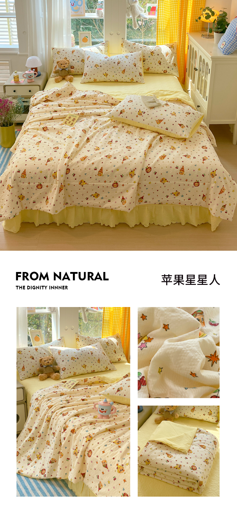 商品名称:莱米家纺 2026新款云感泡泡双层纱夏被夏凉被空调被床盖四件套 苹果星星人
