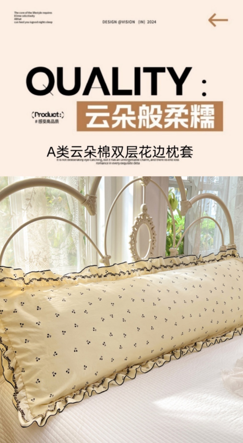 (总)梦舒羽 2026新款A类云朵棉蕾丝双层花边枕套加长双人情侣1.8米枕芯内胆套1.5m枕头,樱桃花语,浮影,花时令,花田洛,蓝岛风铃,黎梦,绿涧,苏颜粉,幸运熊,旋转木马