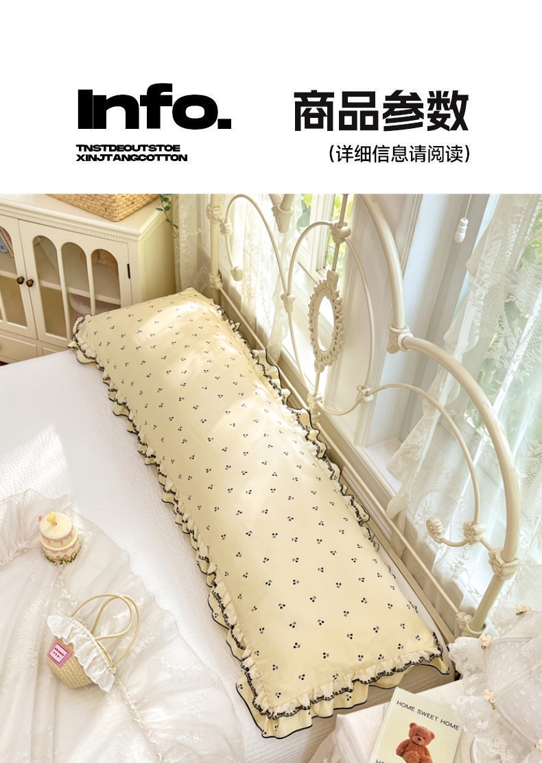 商品名称:梦舒羽 2026新款A类云朵棉蕾丝双层花边枕套加长双人情侣1.8米枕芯内胆套1.5m枕头 樱桃花语