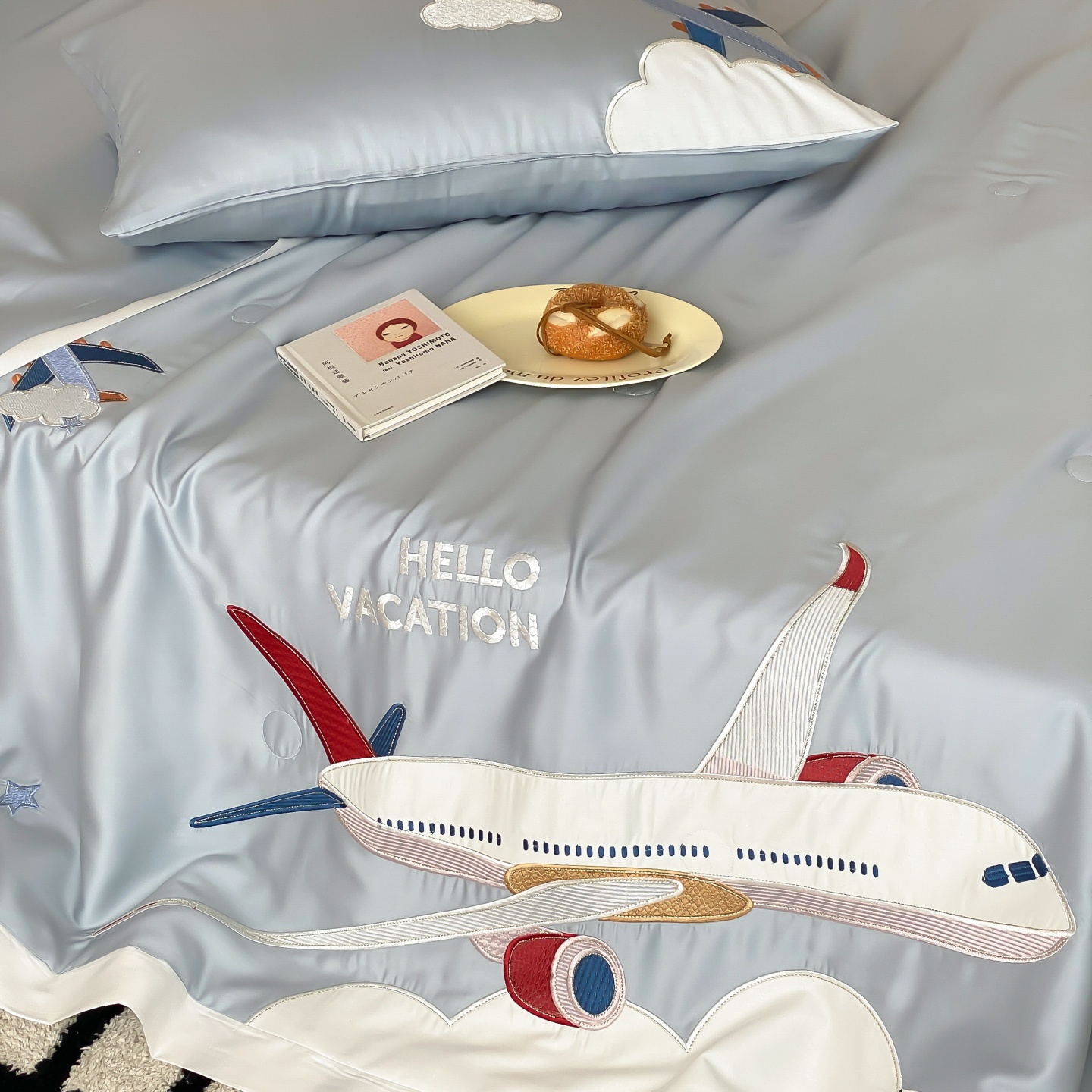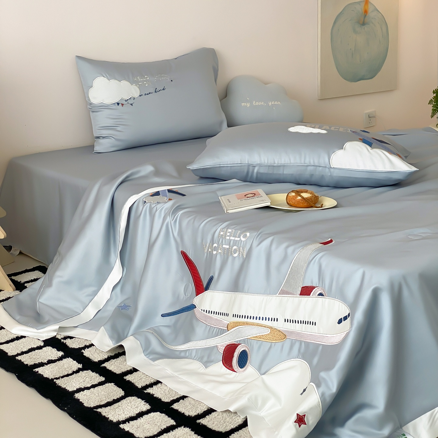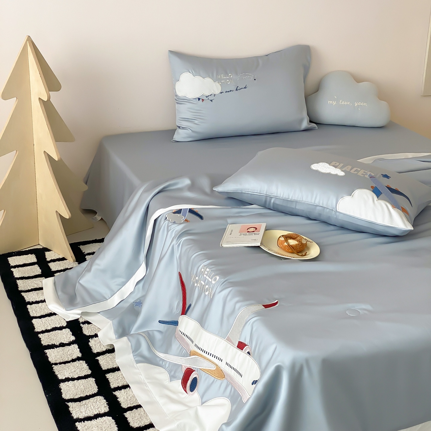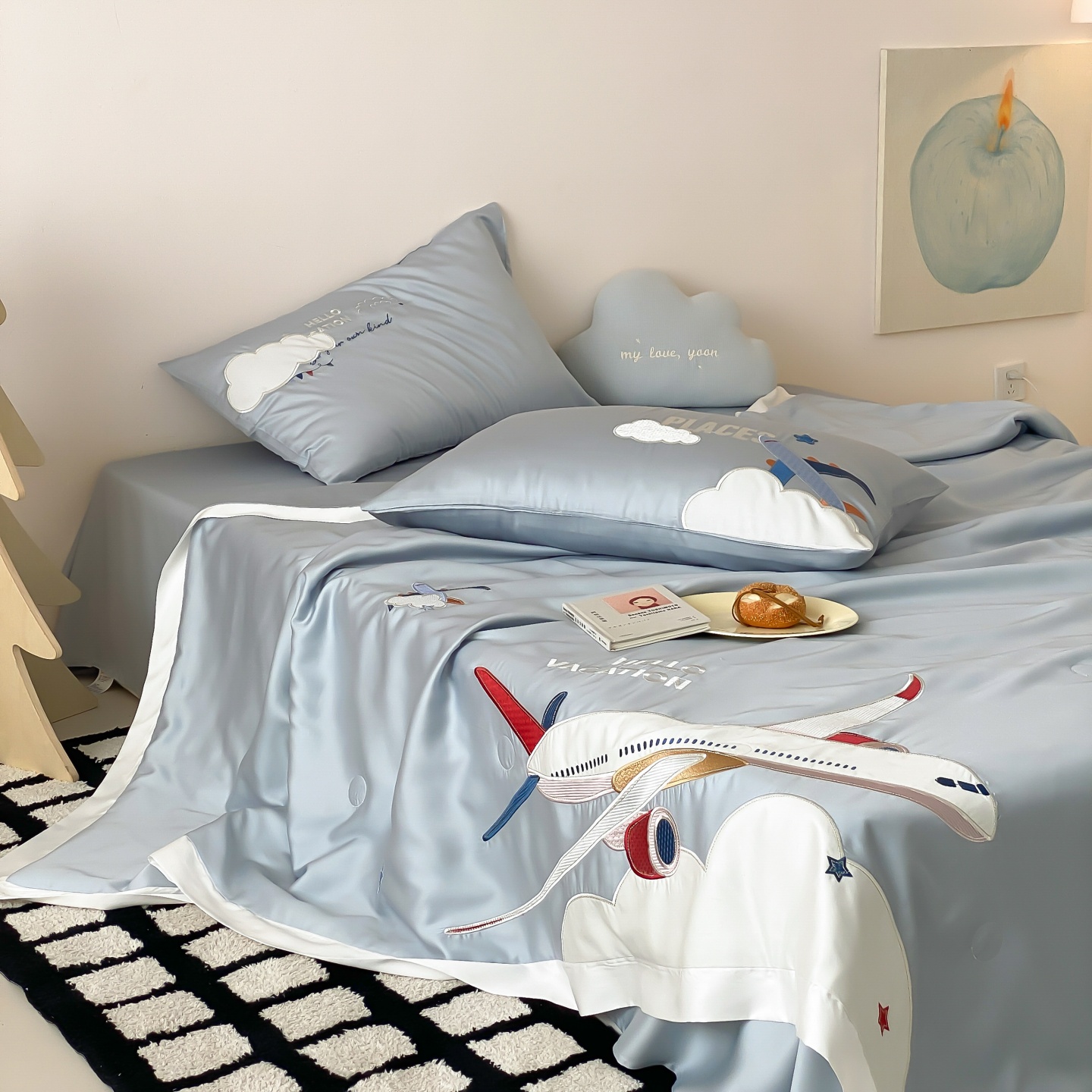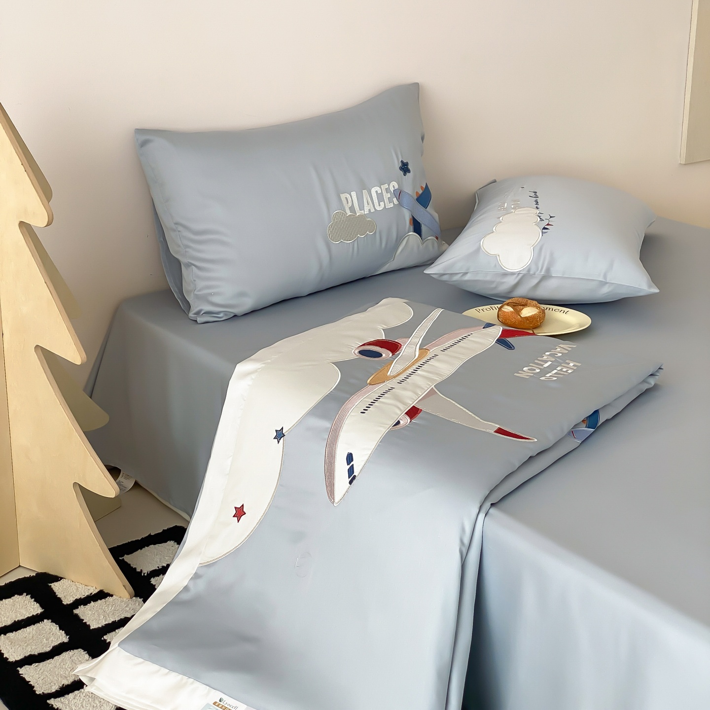 (总)星野 2025新款高克重牛奶绒贴布绣四件套-摇摇乐,摇摇乐