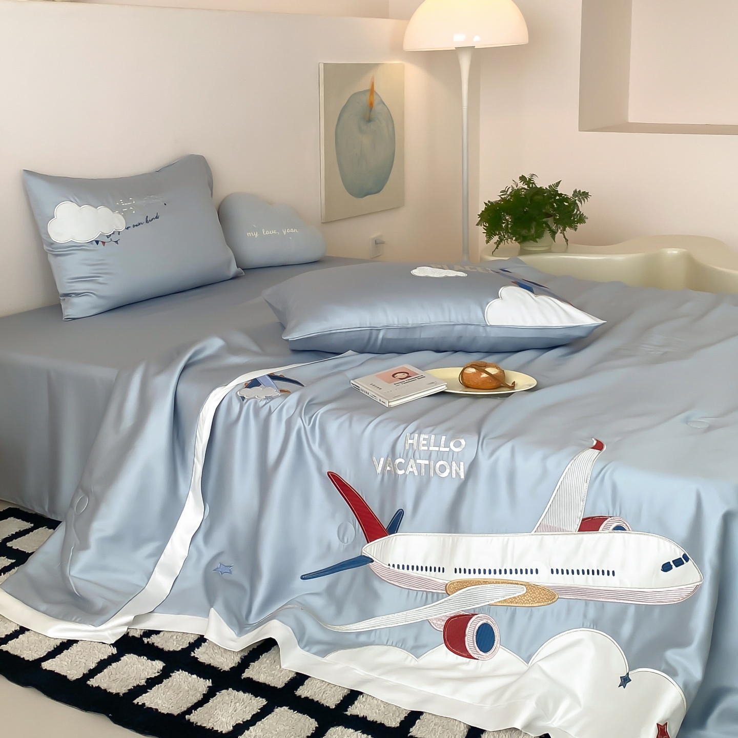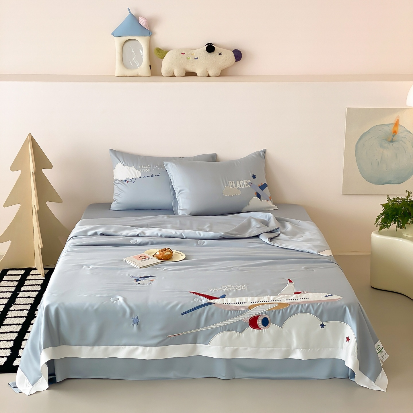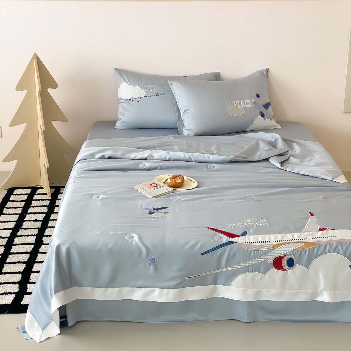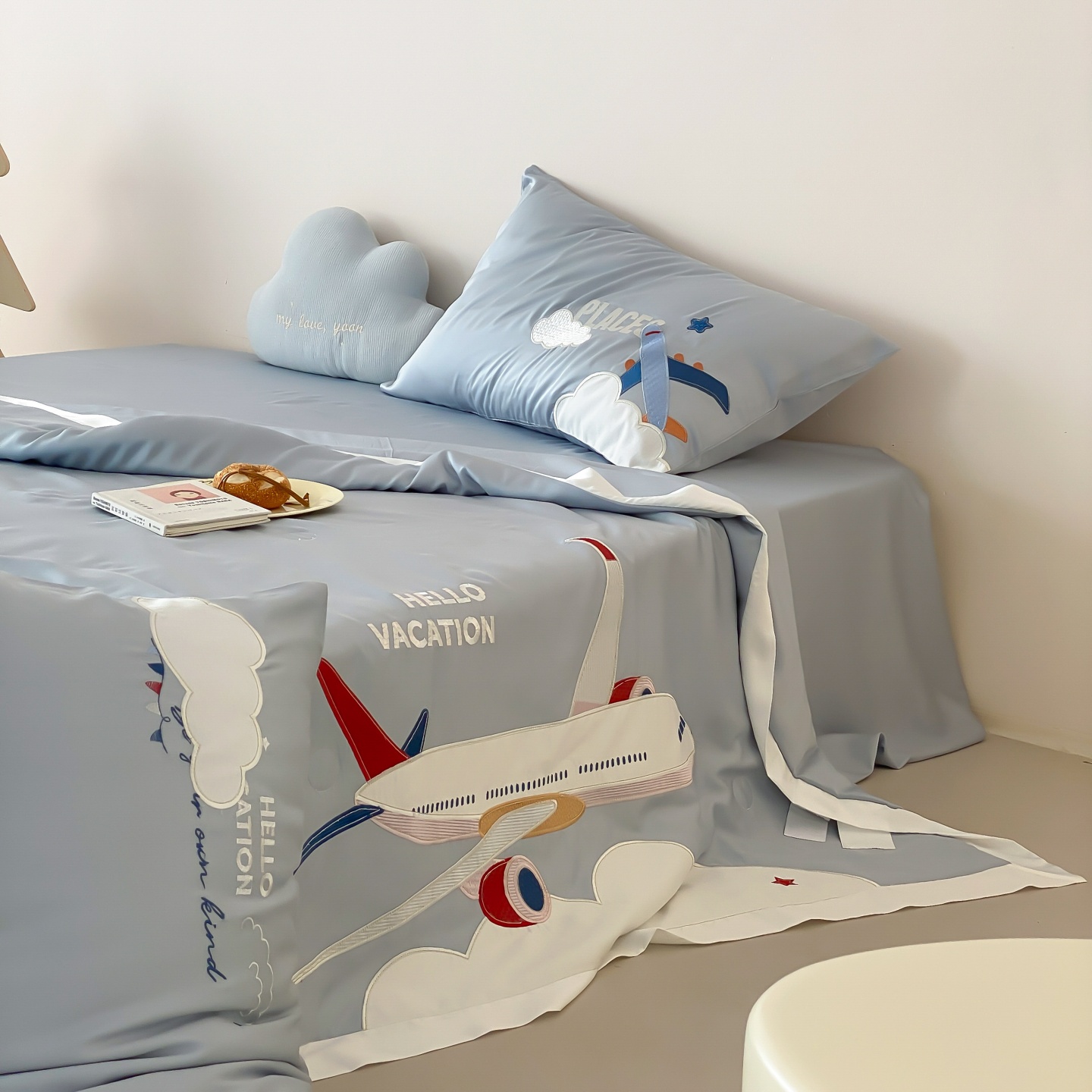(总)星野 2025新款高克重牛奶绒贴布绣四件套-摇摇乐,摇摇乐
