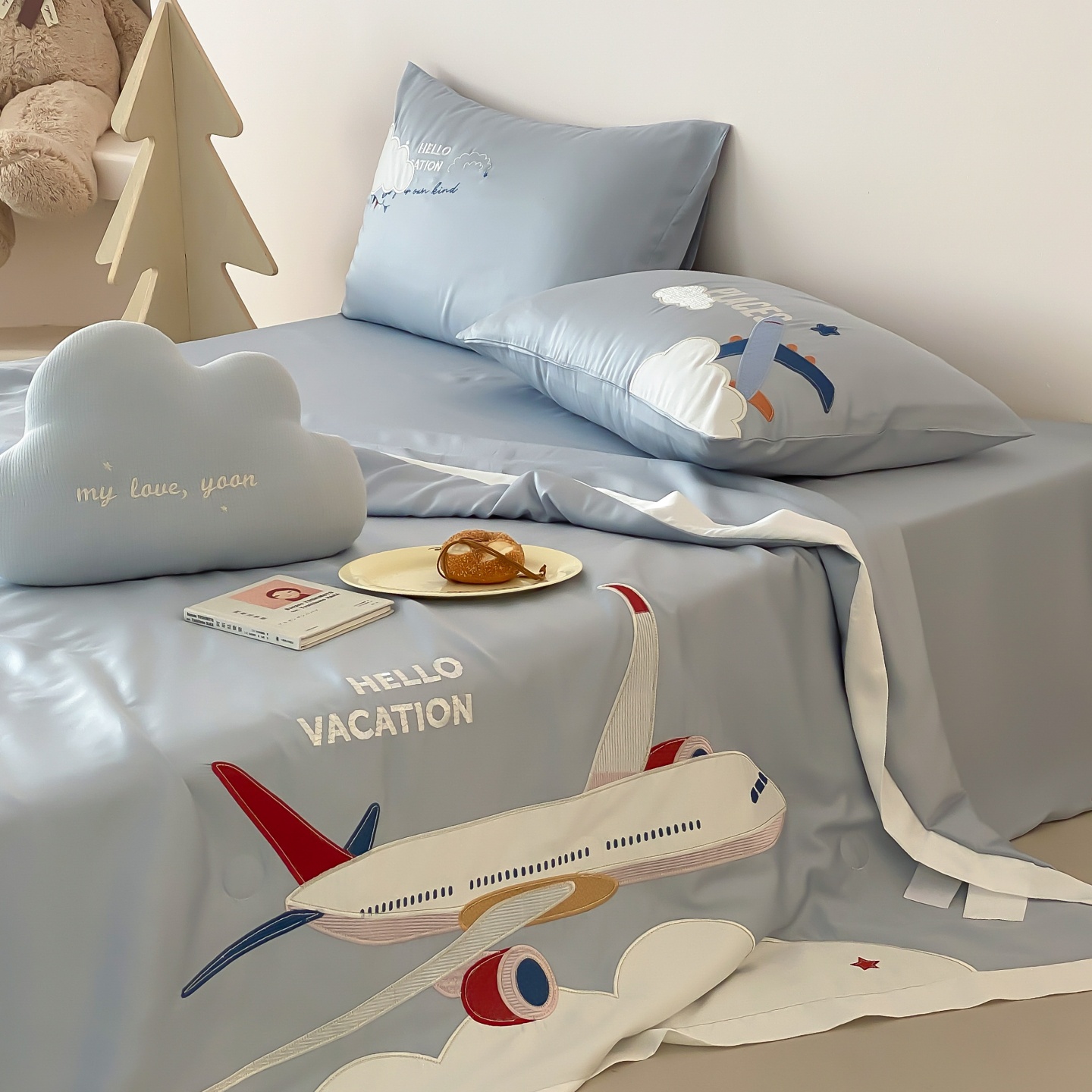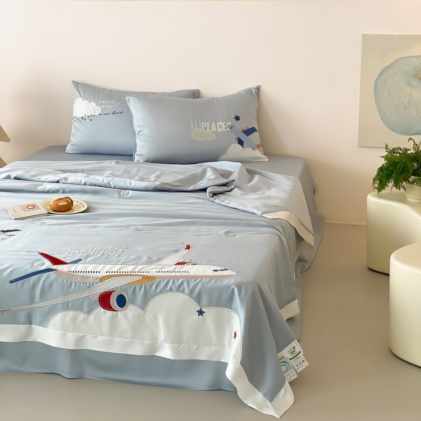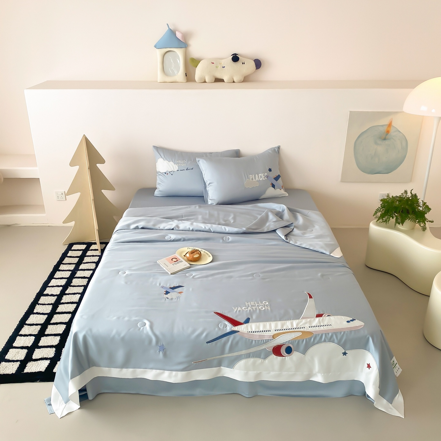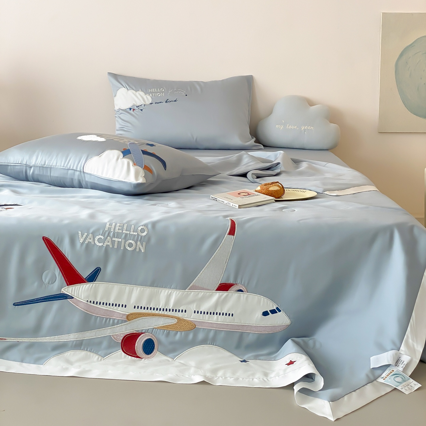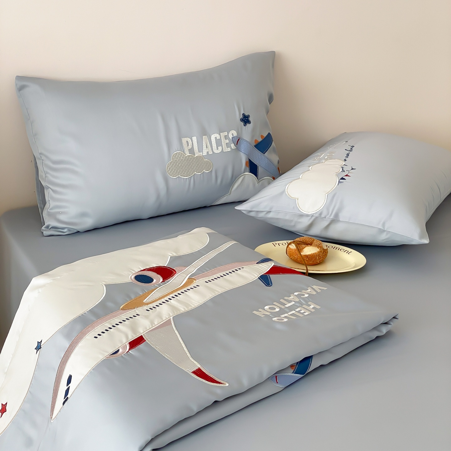 (总)星野 2025新款高克重牛奶绒贴布绣四件套-摇摇乐,摇摇乐