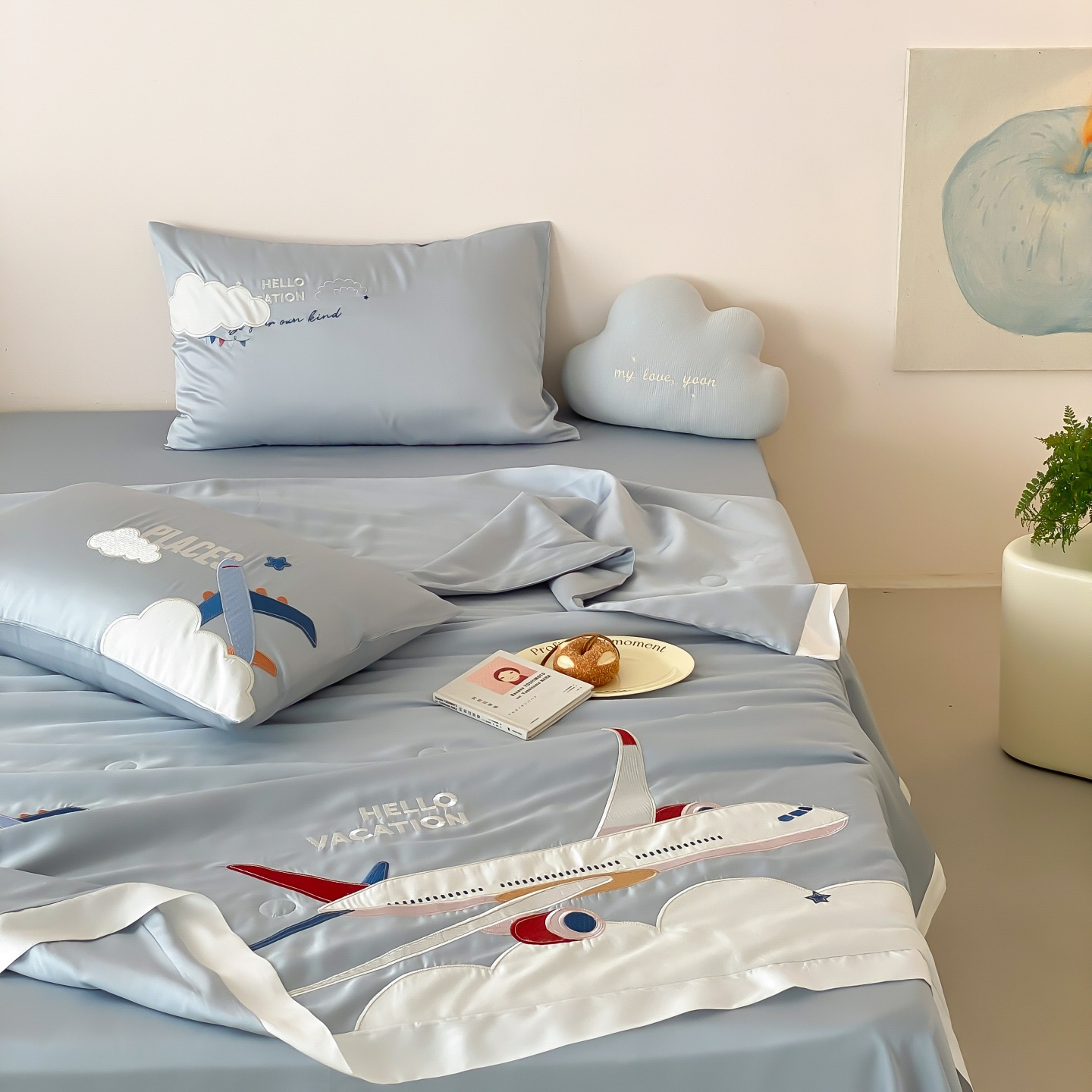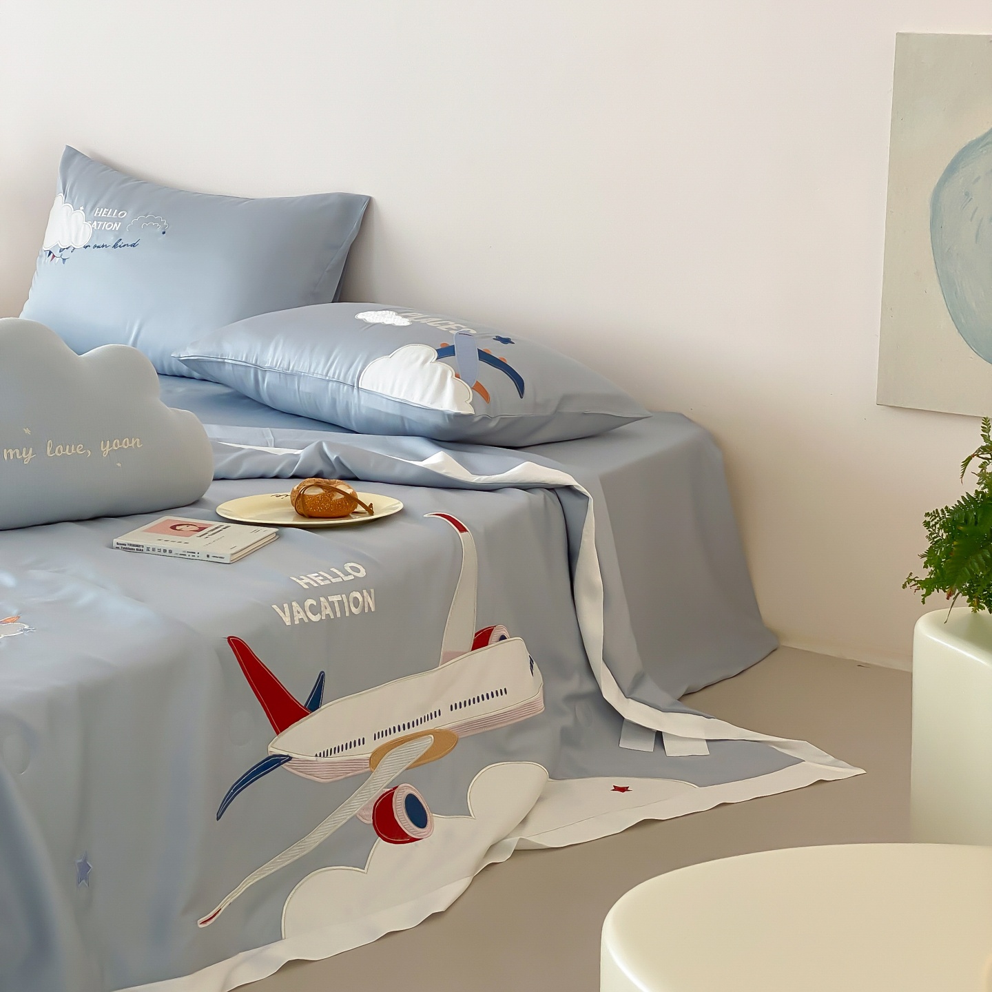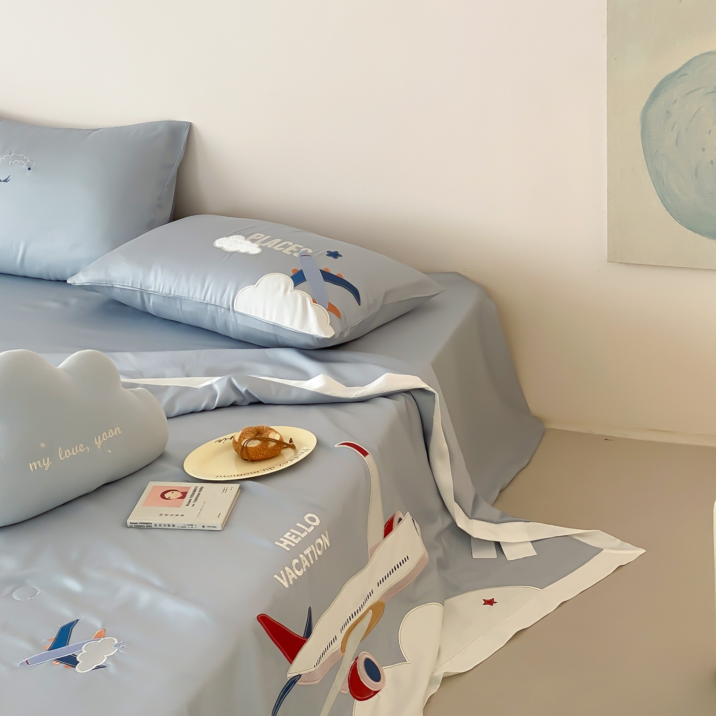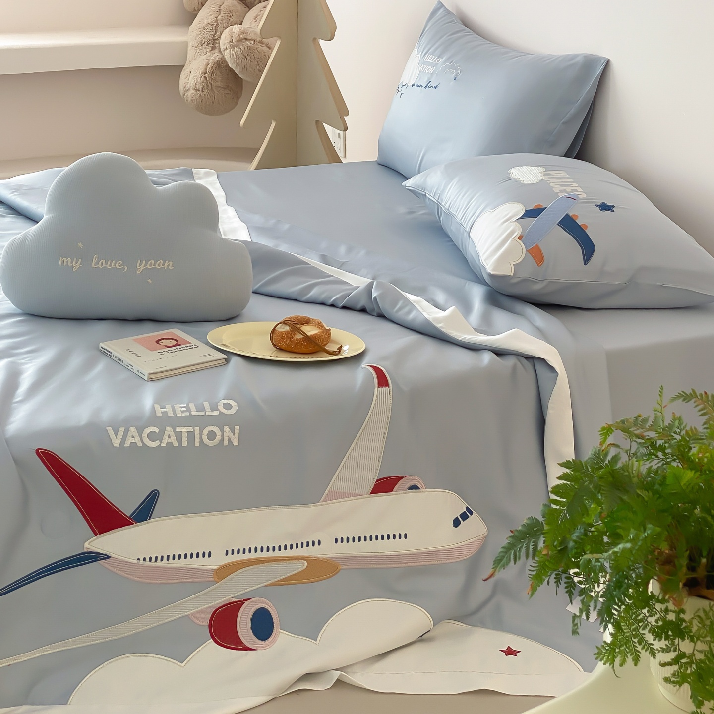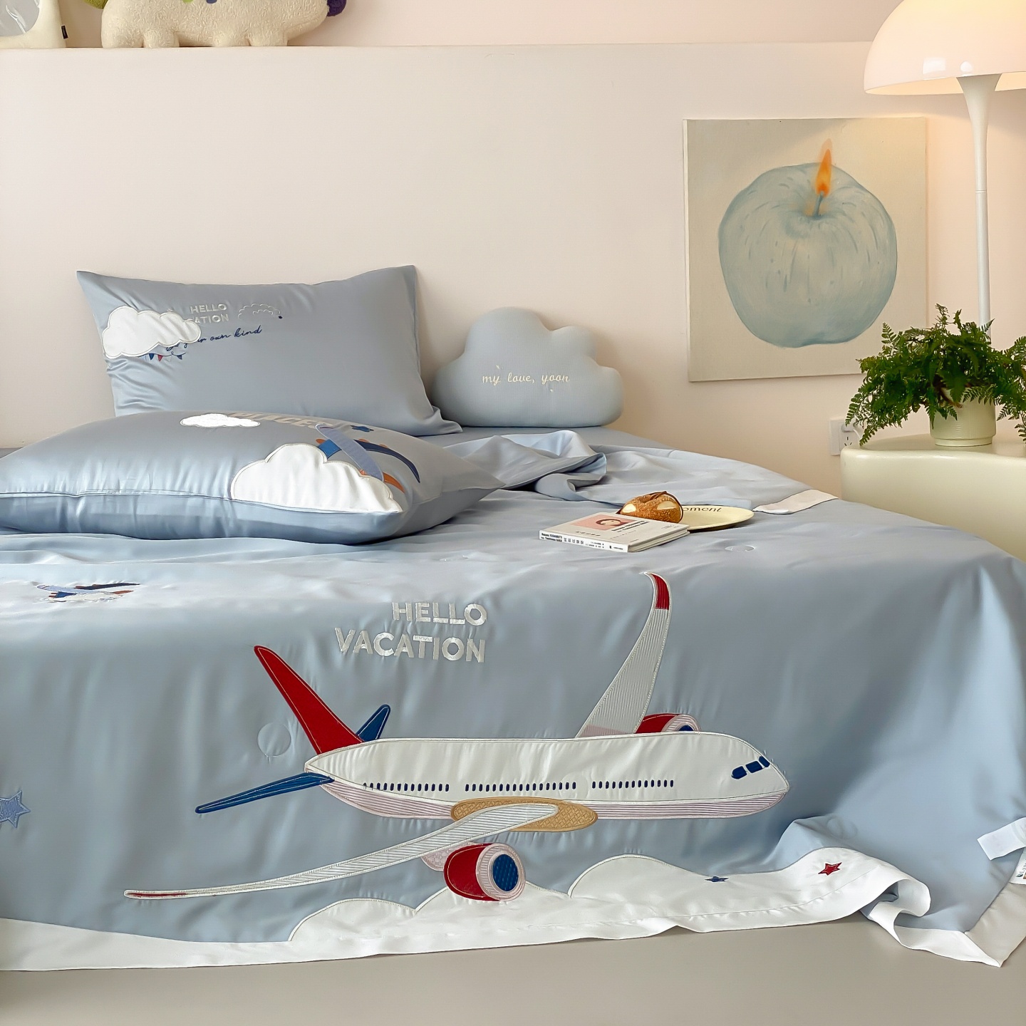 (总)星野 2025新款高克重牛奶绒贴布绣四件套-摇摇乐,摇摇乐