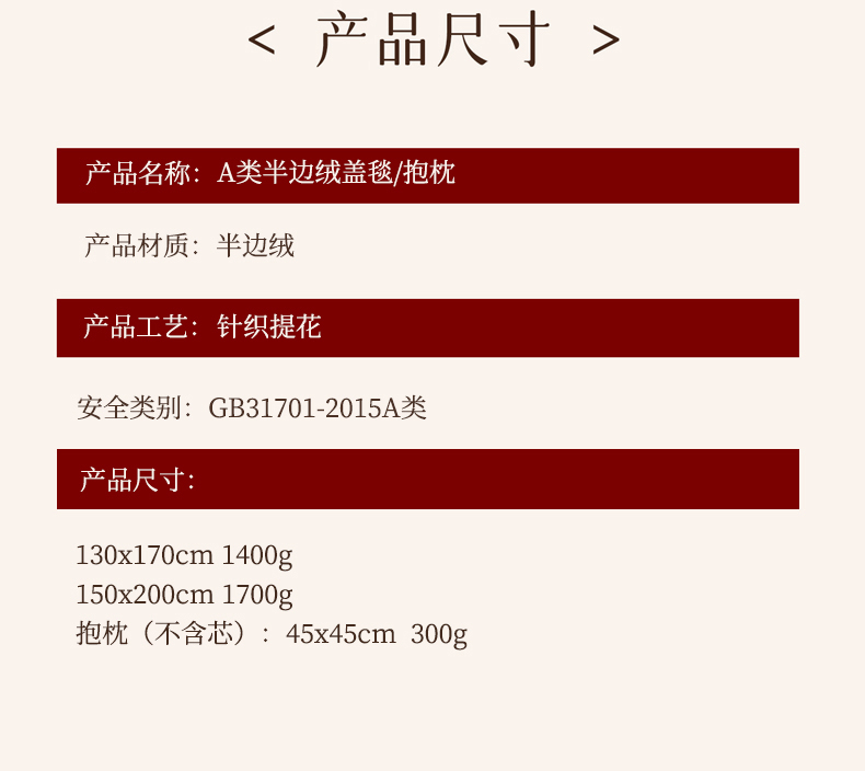 毯子:130x170cm最低售价182元,150x200cm210元,抱枕套:67元