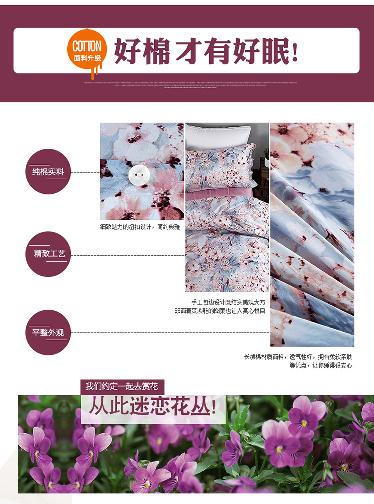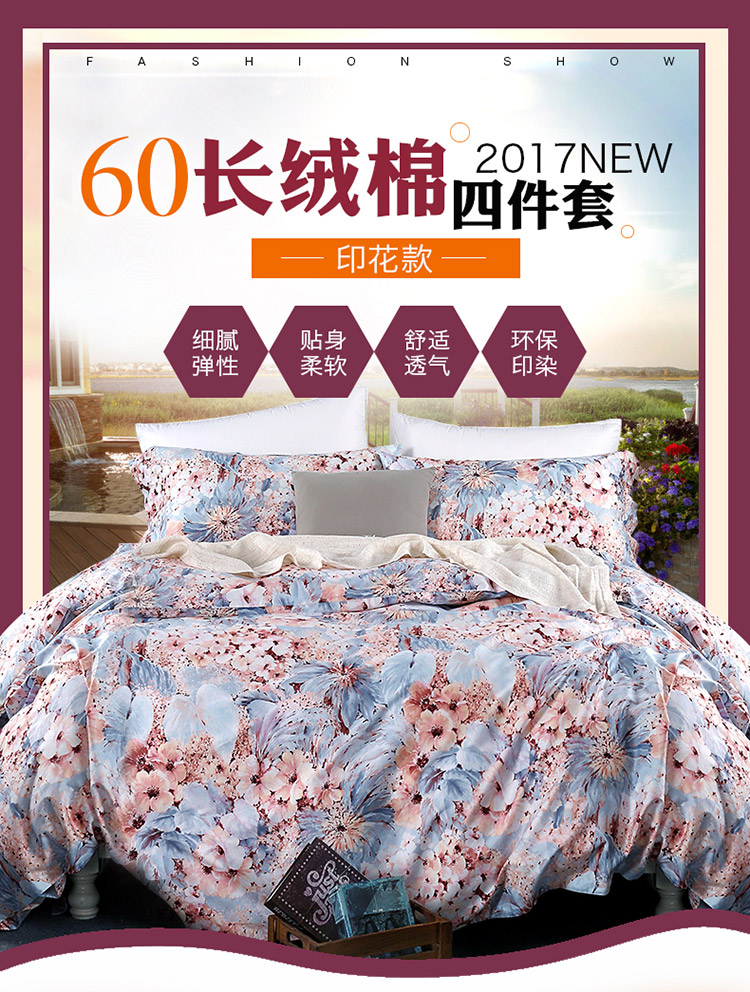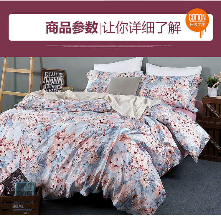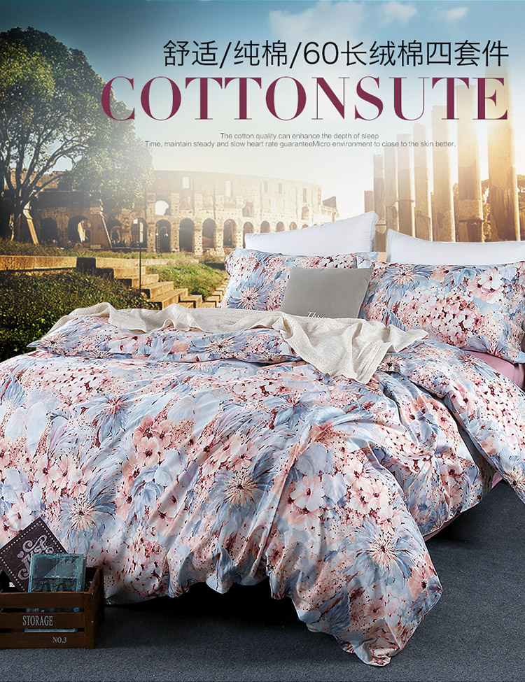 当前位置: 91家纺网 > 商品网购 > 床品套件 > 四件套 > 长绒棉四件套 > 太古汇家居 60长绒棉(印花)四件套- 爱丽丝TGH014