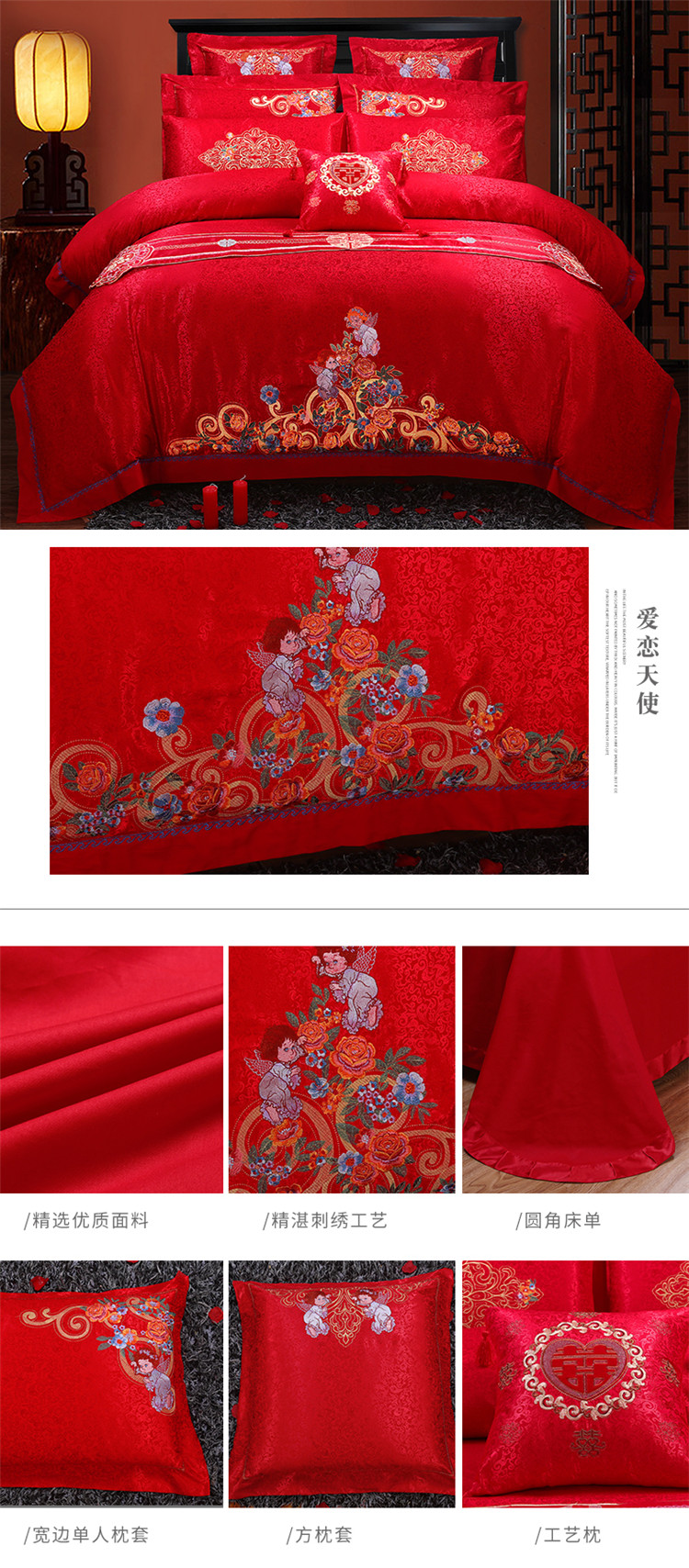 商品名称:玉雅家纺 爱恋天使婚庆多件套床盖款(床盖换床裙加40元)