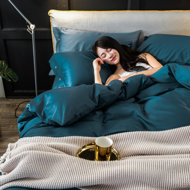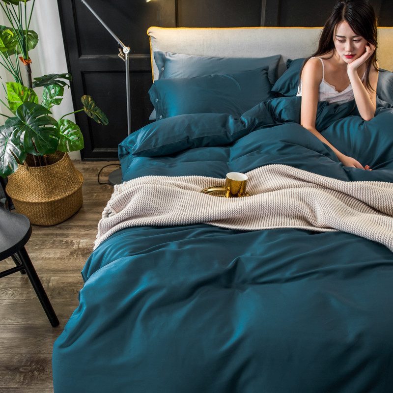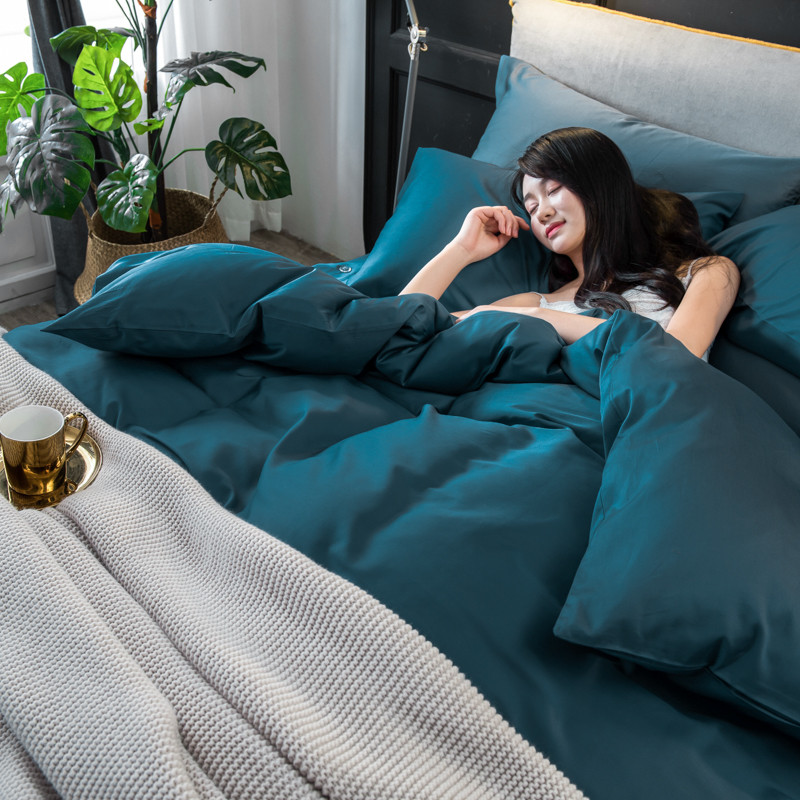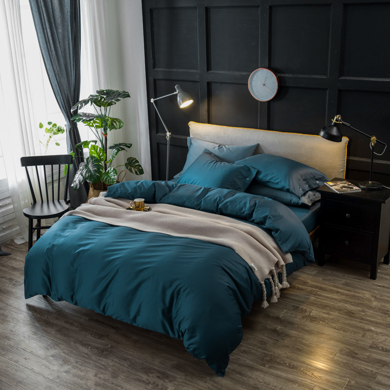 馨蕊家居 60长绒棉纯色款深色系月光蓝