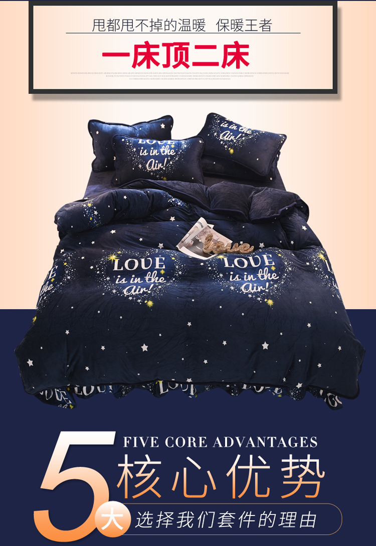 商品名称:绒世界 2018秋冬印花牛奶绒爆款四件套第二版 爱