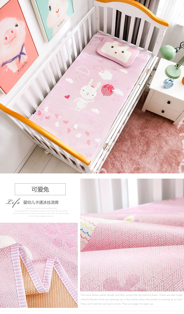 (总)小芽家居 2024新款儿童冰丝凉席卡通,粉红小鹿,浣熊宝宝,加油仙人掌,开心鳄鱼,快乐小熊,企鹅公主,小鲸鱼,长颈鹿