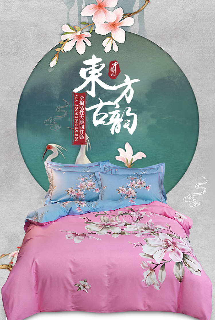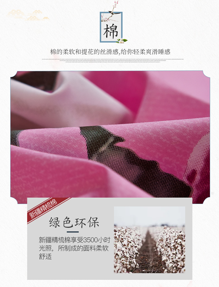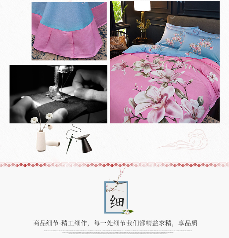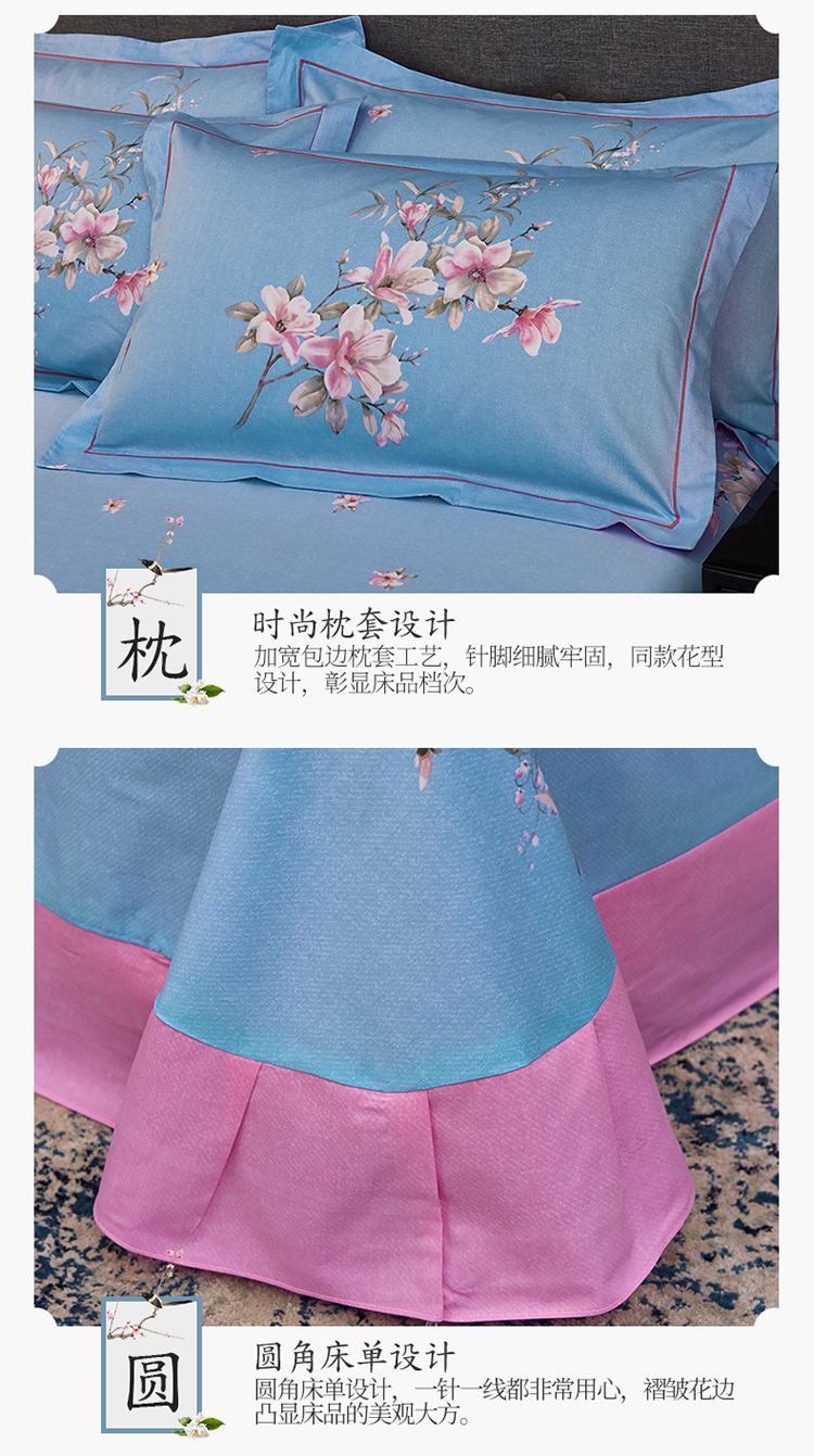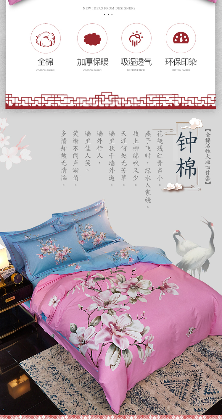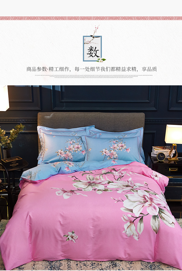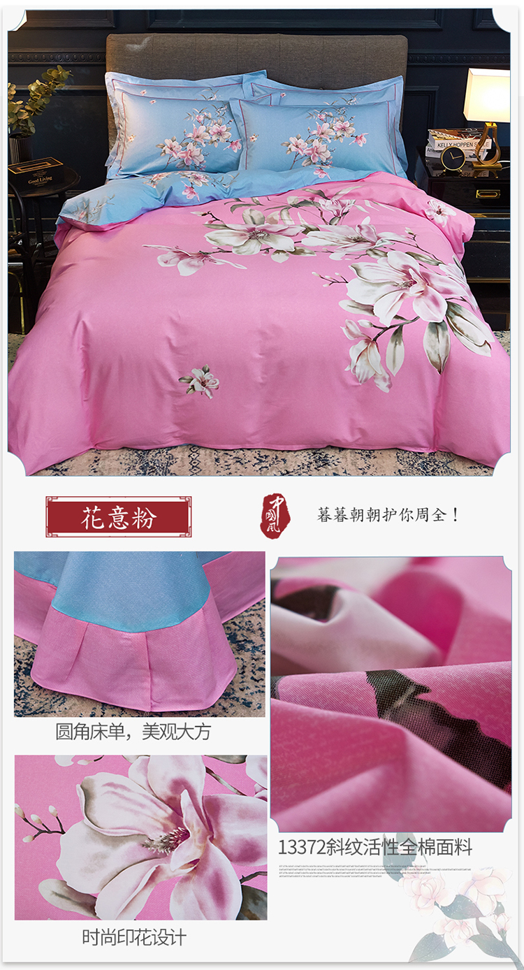 商品名称:雲归梦家纺 2019新款13372全棉活性大版四件套 花意粉