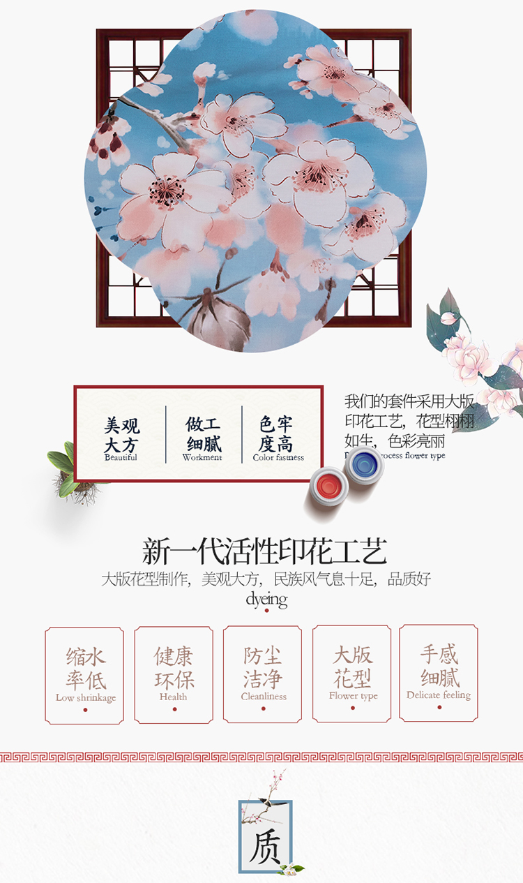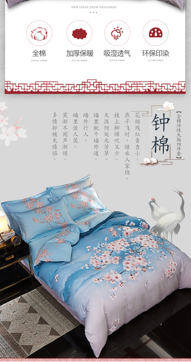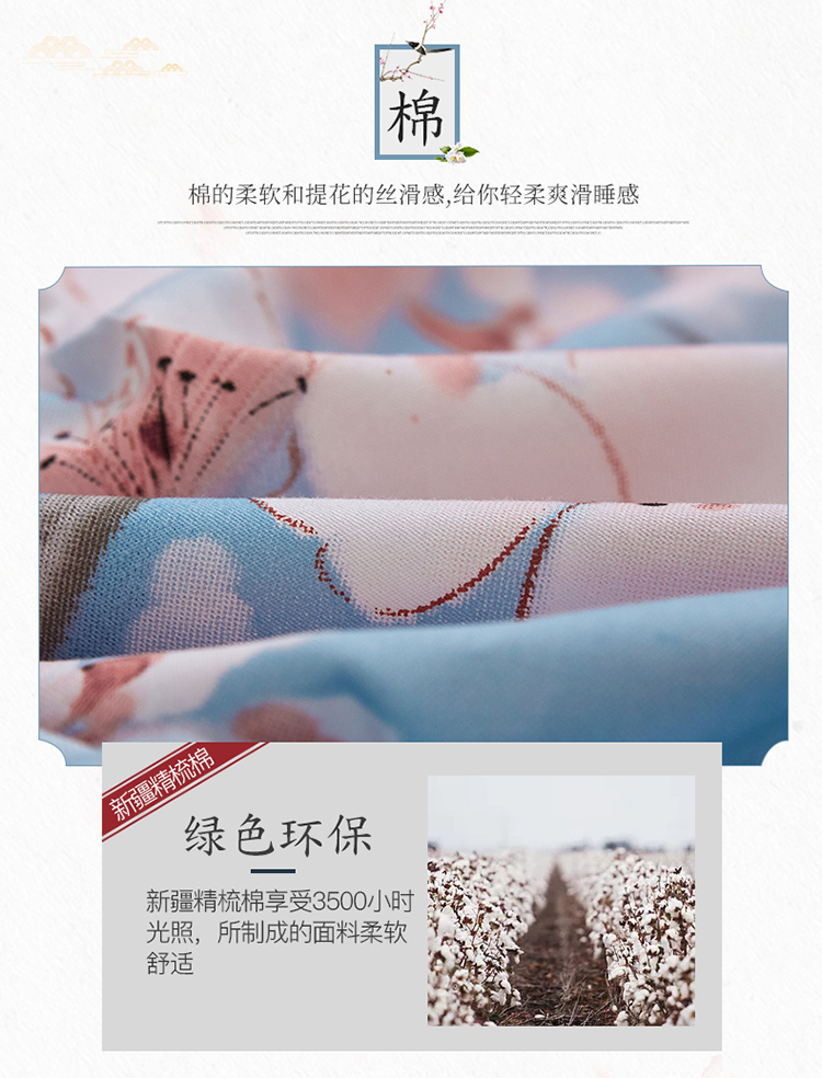 商品名称:雲归梦家纺 2019新款13372全棉活性大版四件套 江南春