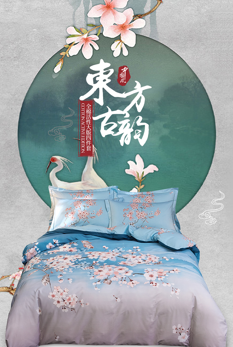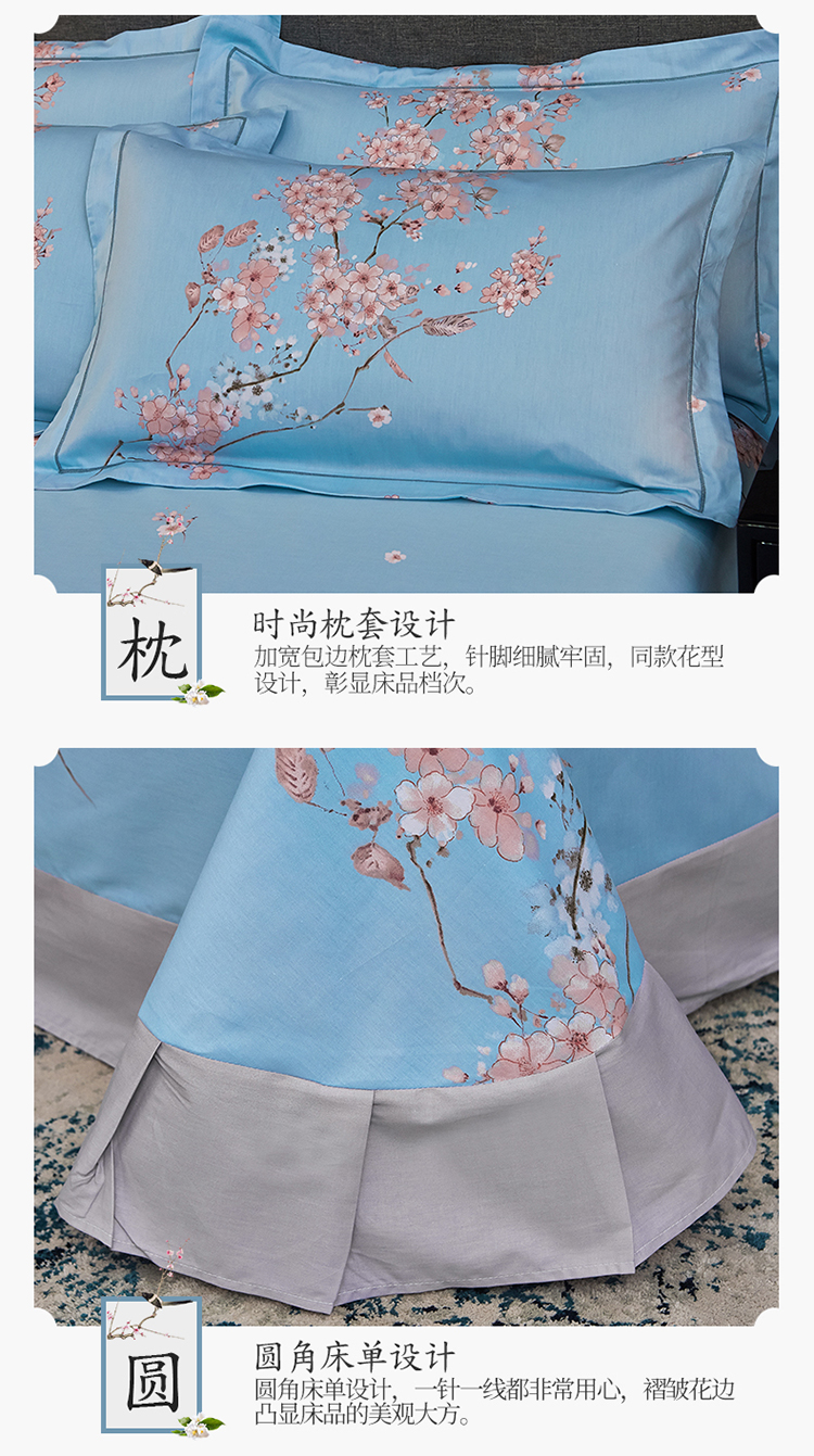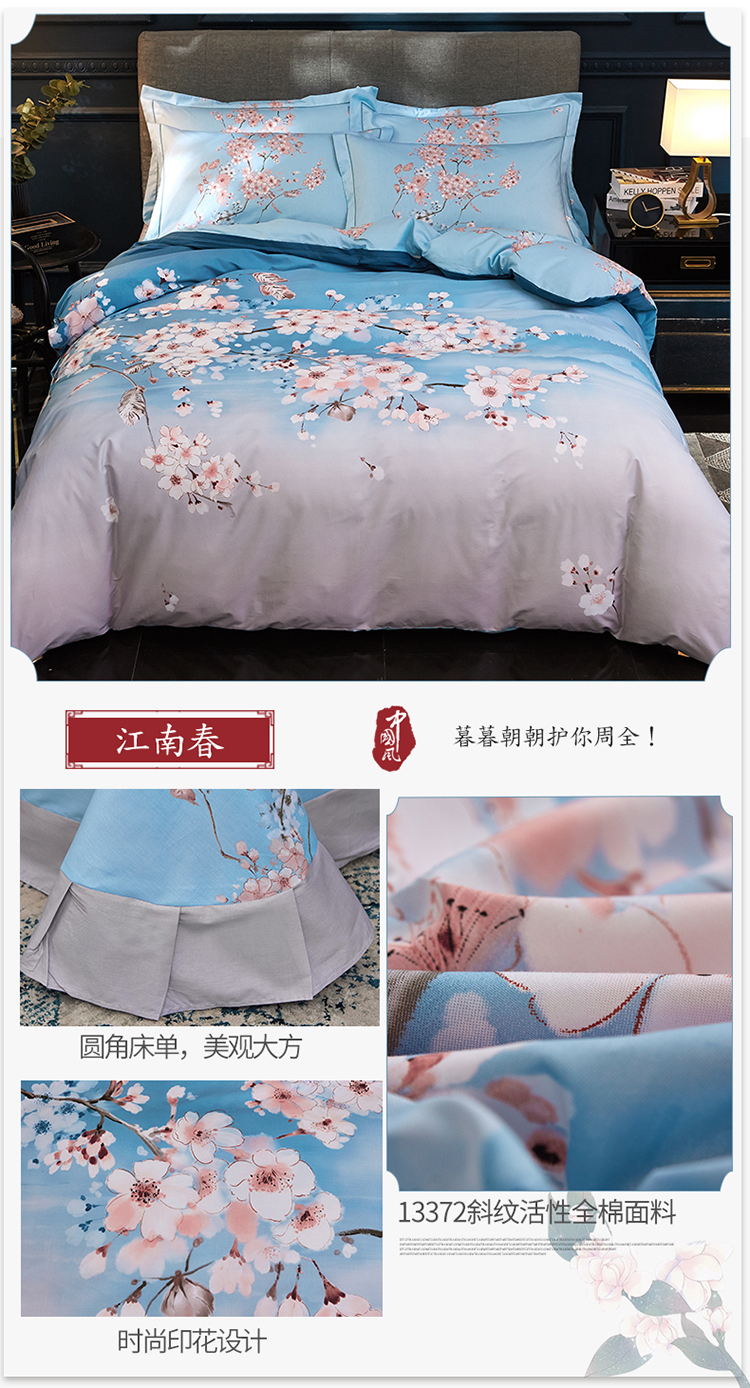 雲归梦家纺 2019新款13372全棉活性大版四件套 江南春