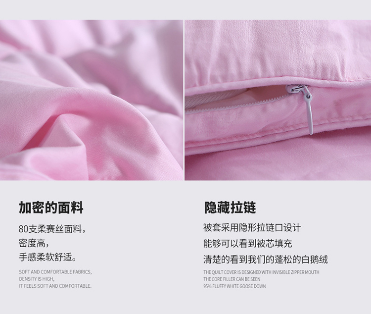 商品名称:绒研羽绒 2025新品皇冠羽绒被全棉贡缎提花 粉色